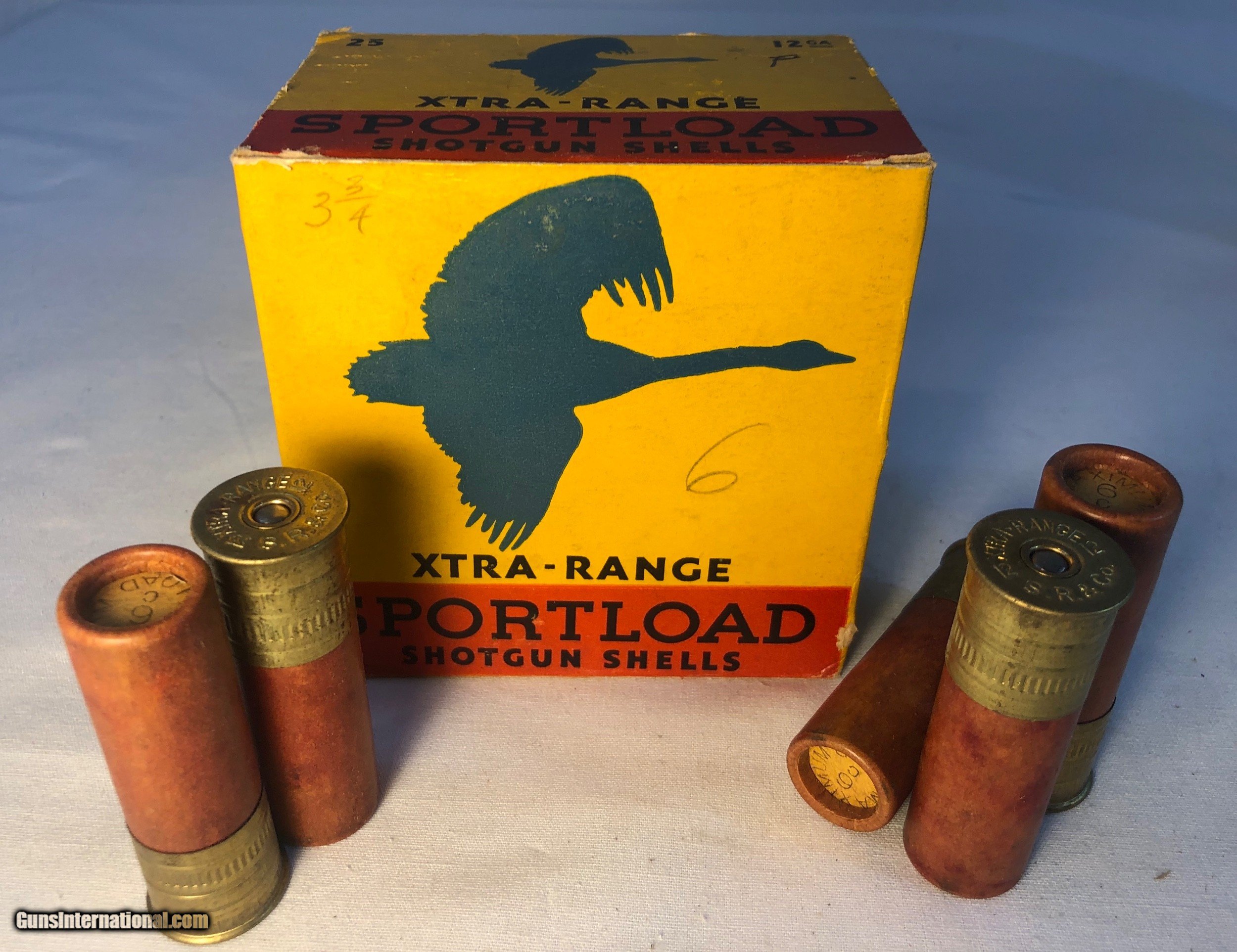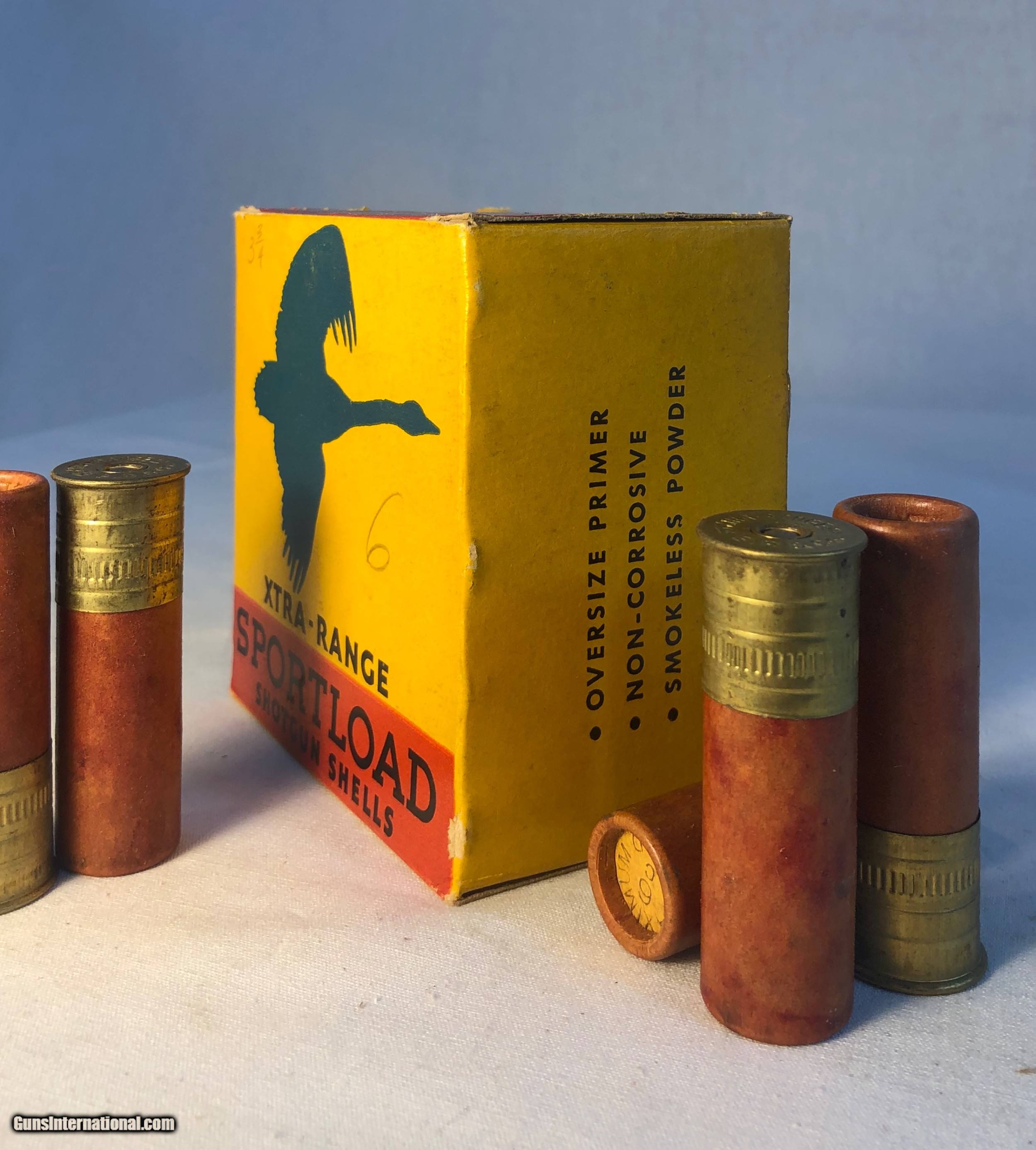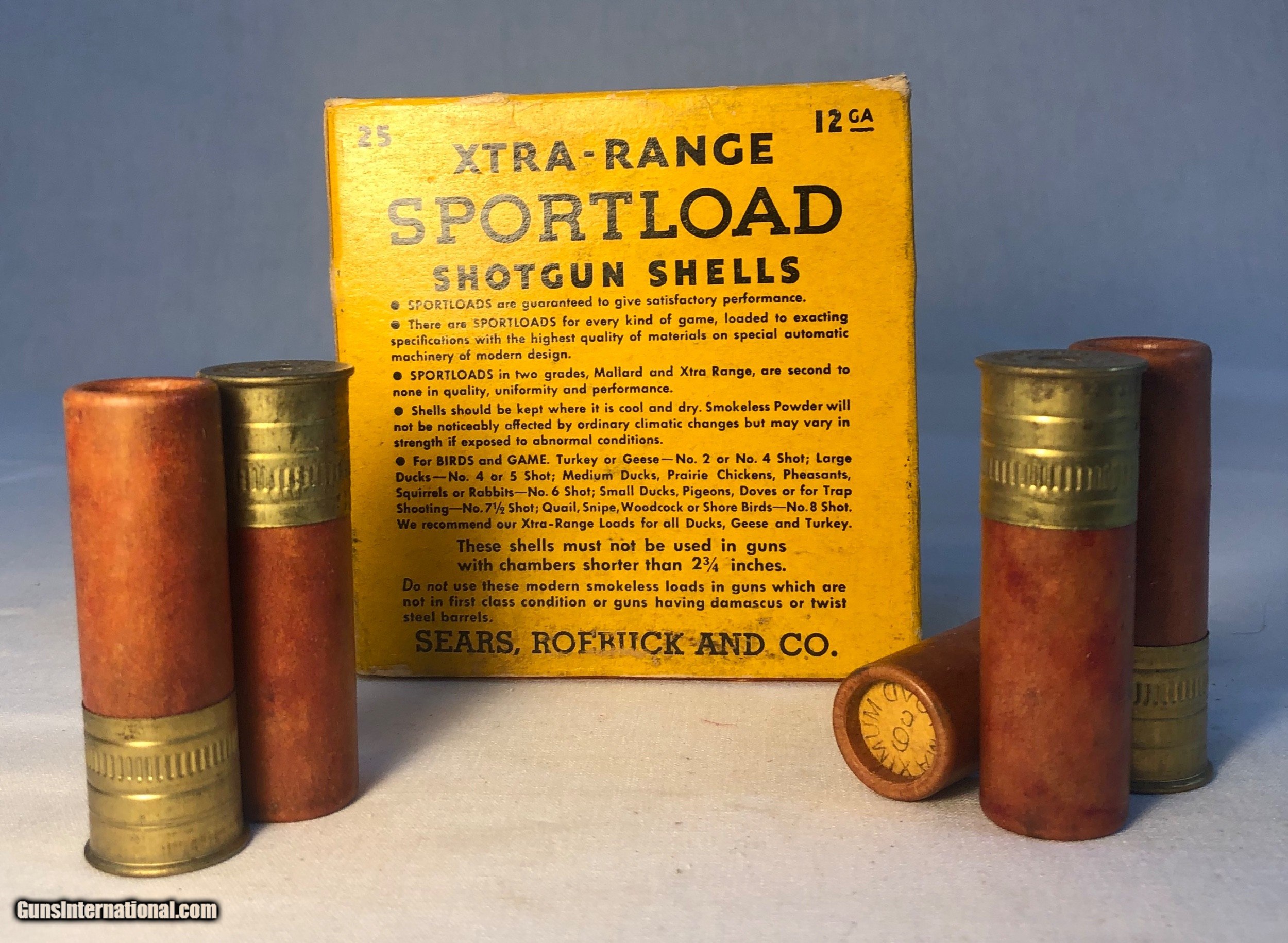 Description: This box of Sears & Roebuck Xtra-Range Sportload 12 Gauge shotgun shells are in excellent condition. They are 3 3/4" 6 shot oversized primers, non-corrosive, smokeless powder shells. The box is in excellent condition with bright color and graphics. (This box is like new) (I have (2) of these available, sold seperately) Ground shipping and handling is included to the lower 48 states. (Except no ship to CA and NJ) This ammunition is sold as a collectors item only and we make no quarantees to its quality or functionality. Please know and abide by your local laws in regards to purchasing ammunition. Signature required upon delivery. We accept Master Card and Visa, personal check, or money order. SOLD |