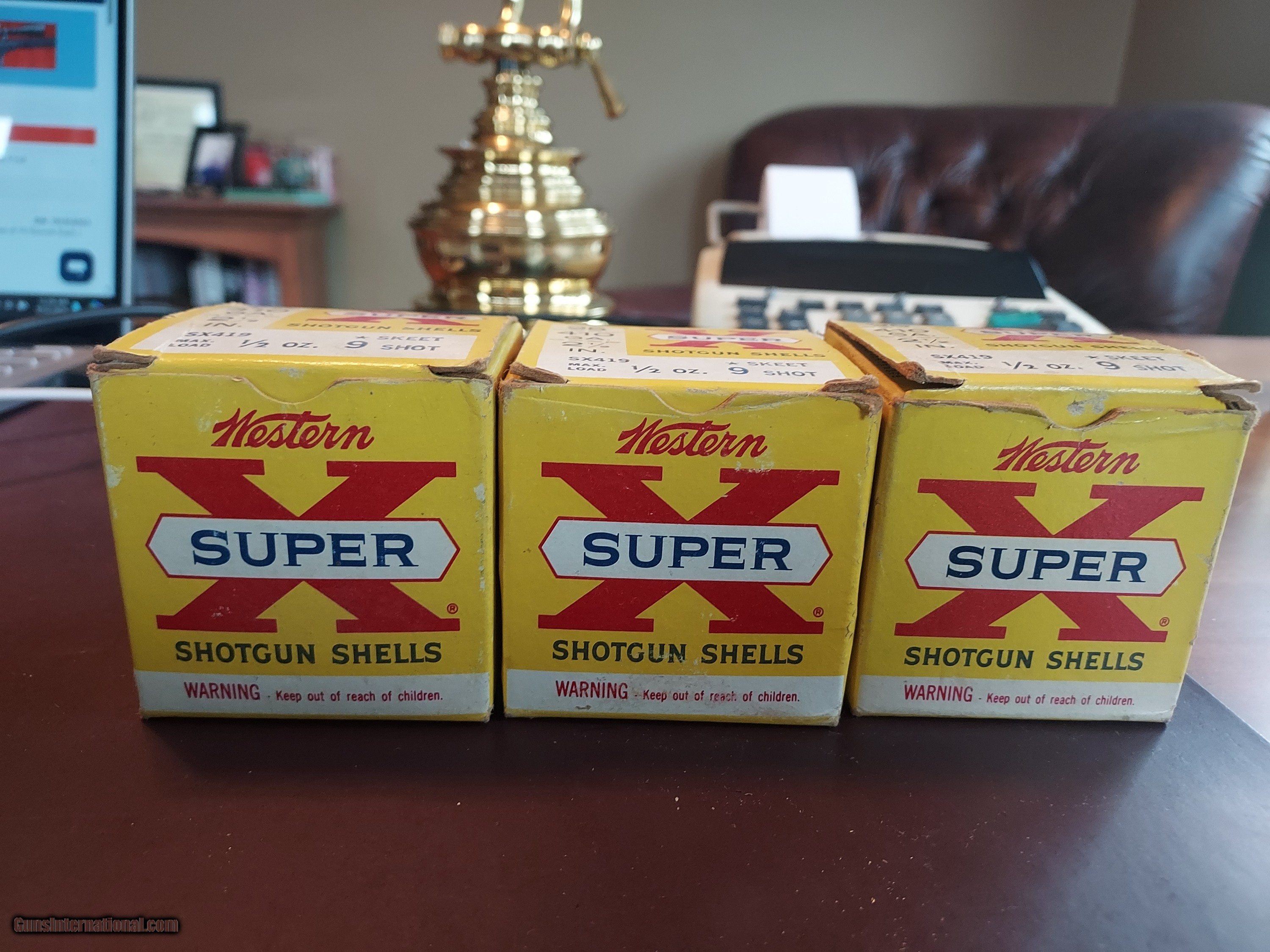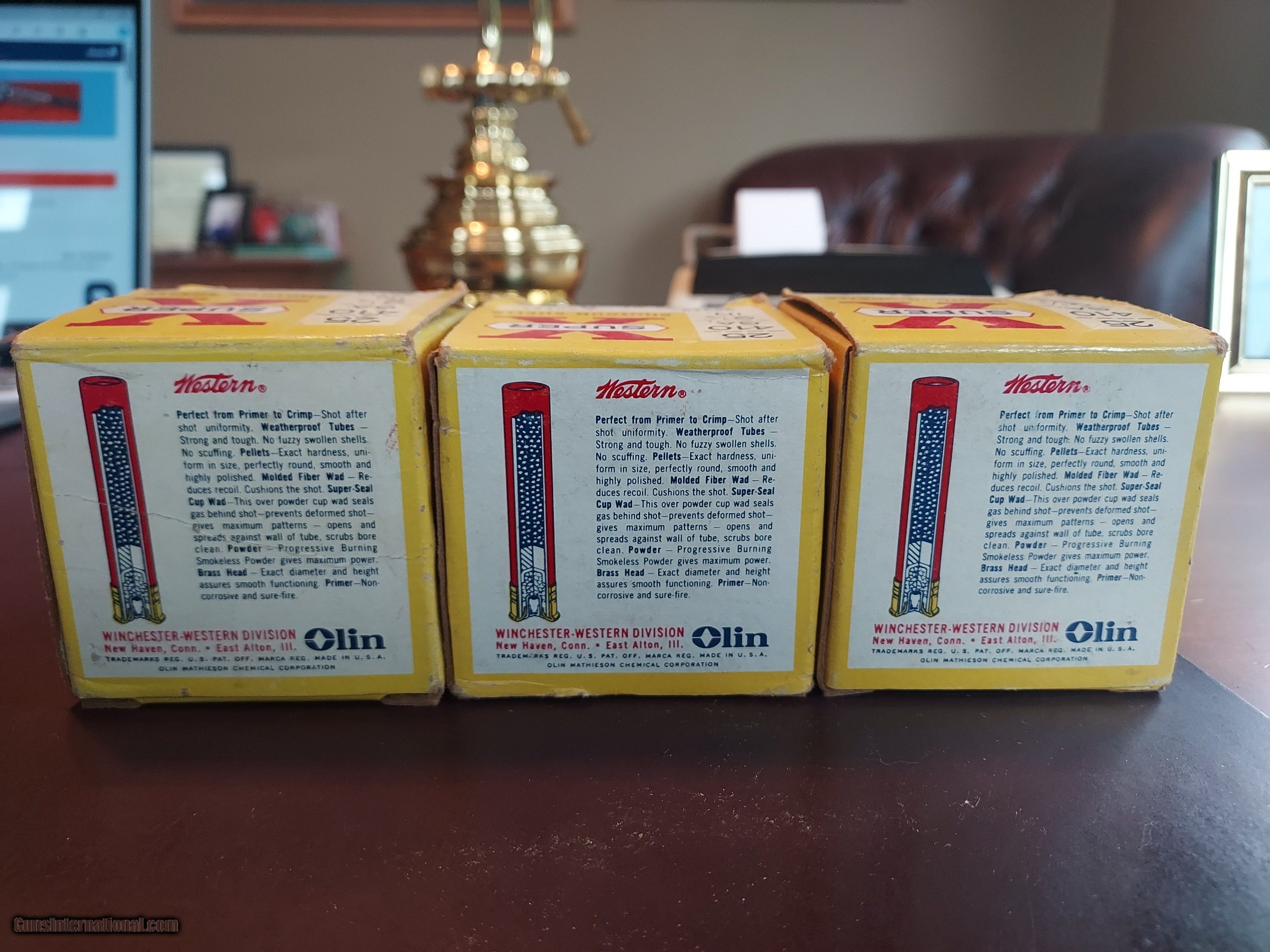 Description: Three boxes of 2 1/2" number 9 paper sckket shells in original boxes. All shells are new with some light brass tarnishing on some shells. The boxes are in excellent condion. Sold at one lot for $110 delivered. SOLD |