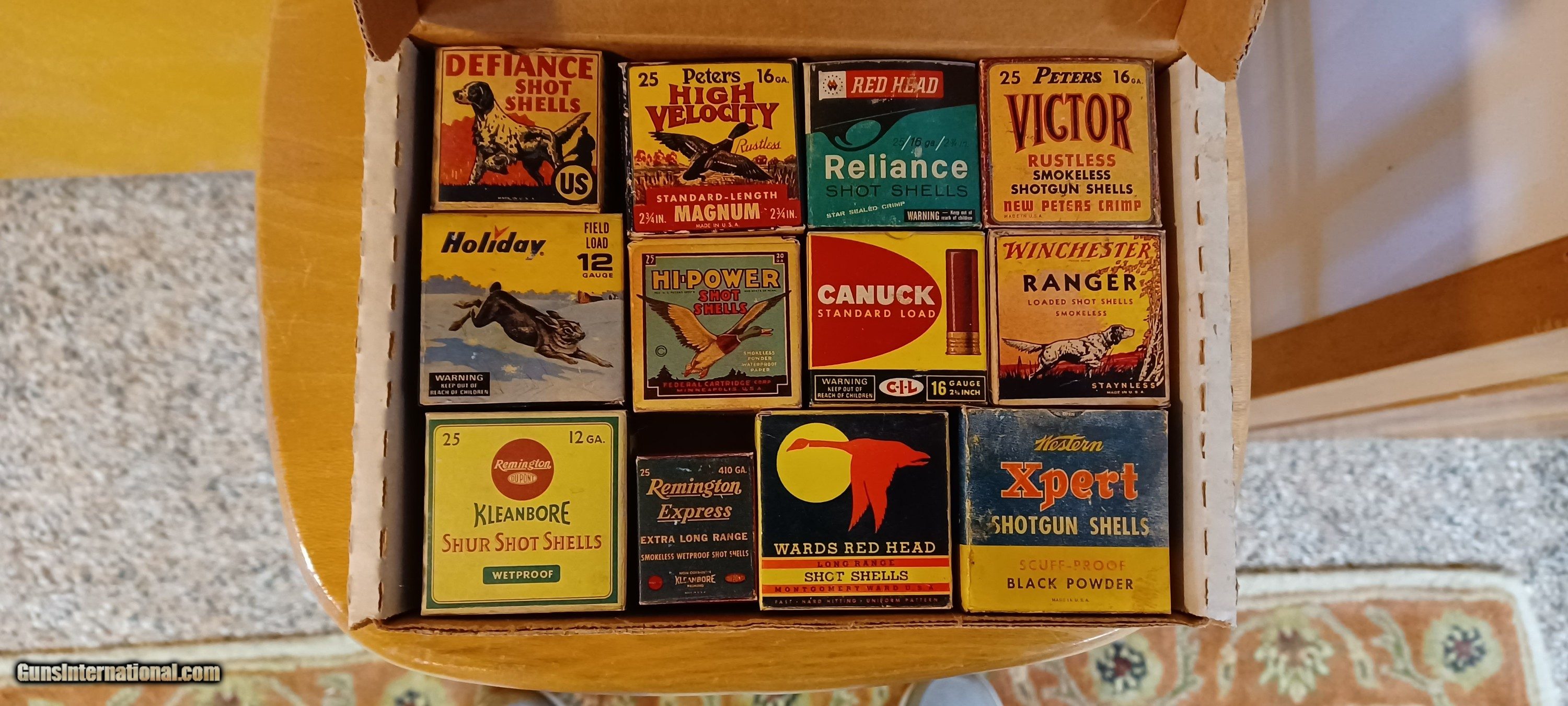 Description: A complete box of Tom Tabor miniture shotgun shell collectable boxes. SOLD |