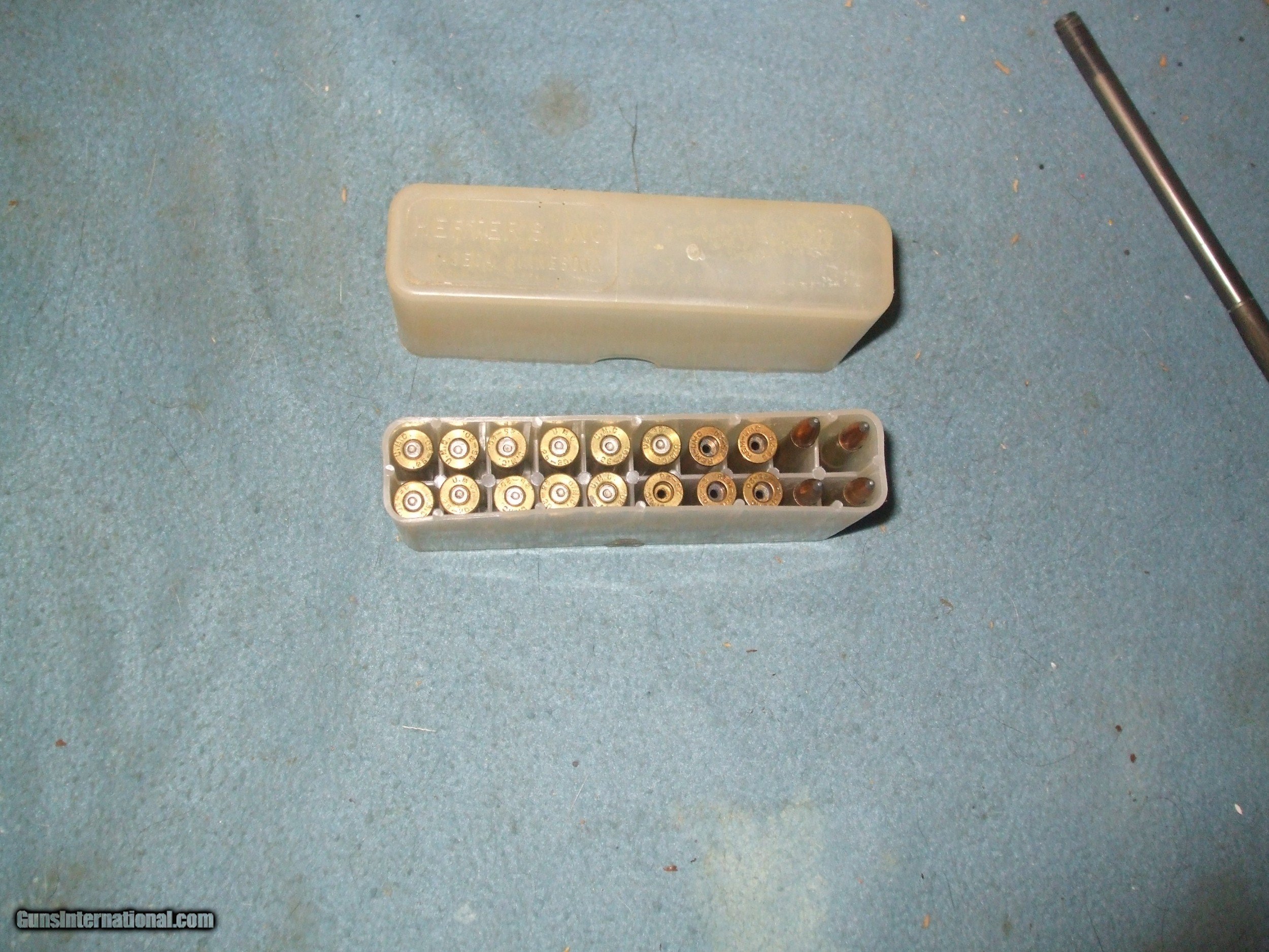 Description: UMC 25-20 Single Shot Stevens. This is not 25-20WCF but a longer case and will not fir in lever guns. Made for loading block single shot rifles. Head stamp merely says 25-20 but case length is correct for 25-20 single shot Stevens. 4 Loaded rounds may be reloads so I would suggest pulling the bullets on those. Remaining 16 rds some are deprimed and some still have the original fired primers. Ammo comes in slip top plastic box. Cannot ship to CA, MA, NJ, IL ora any other restricted areas. SOLD |