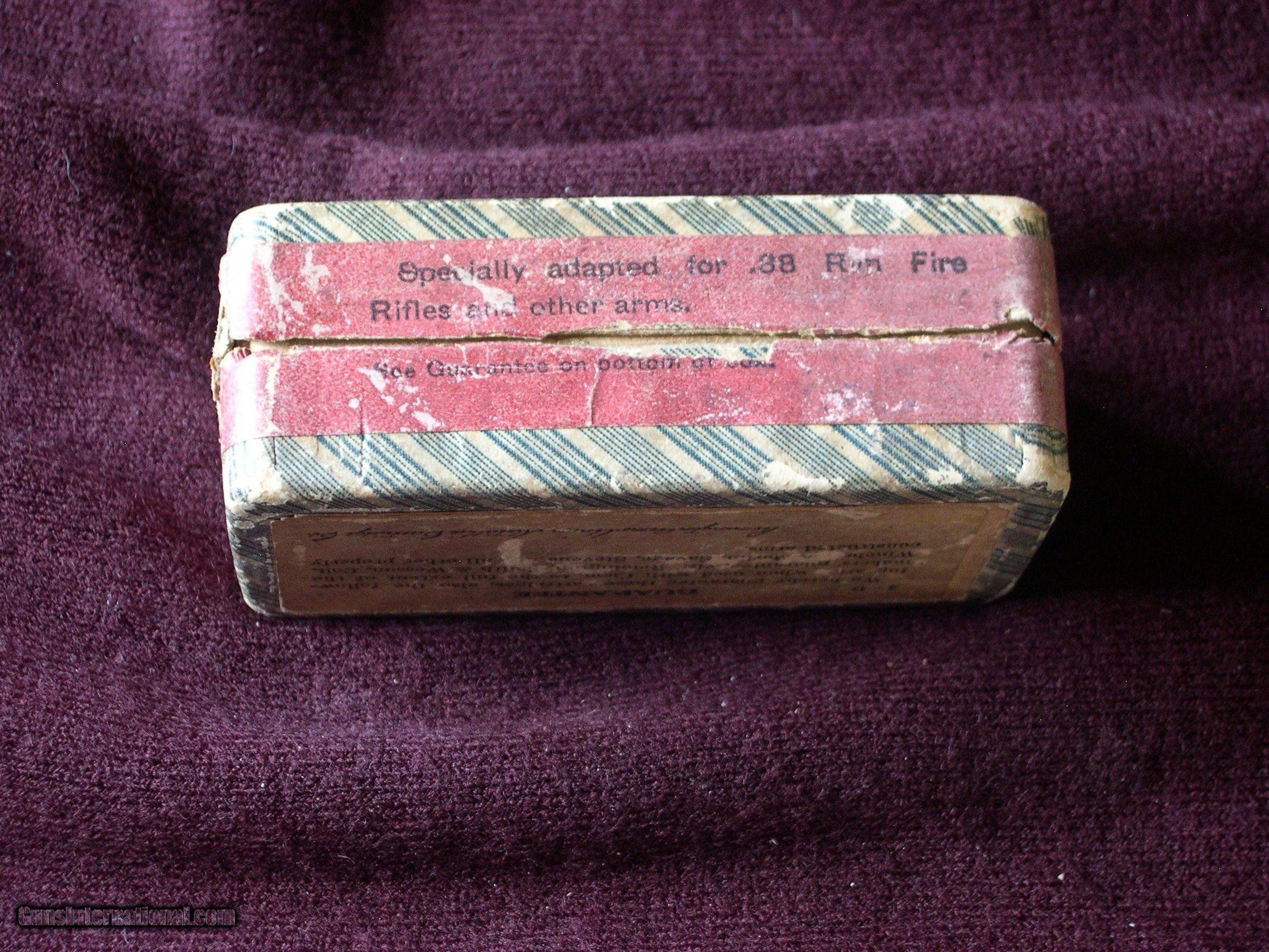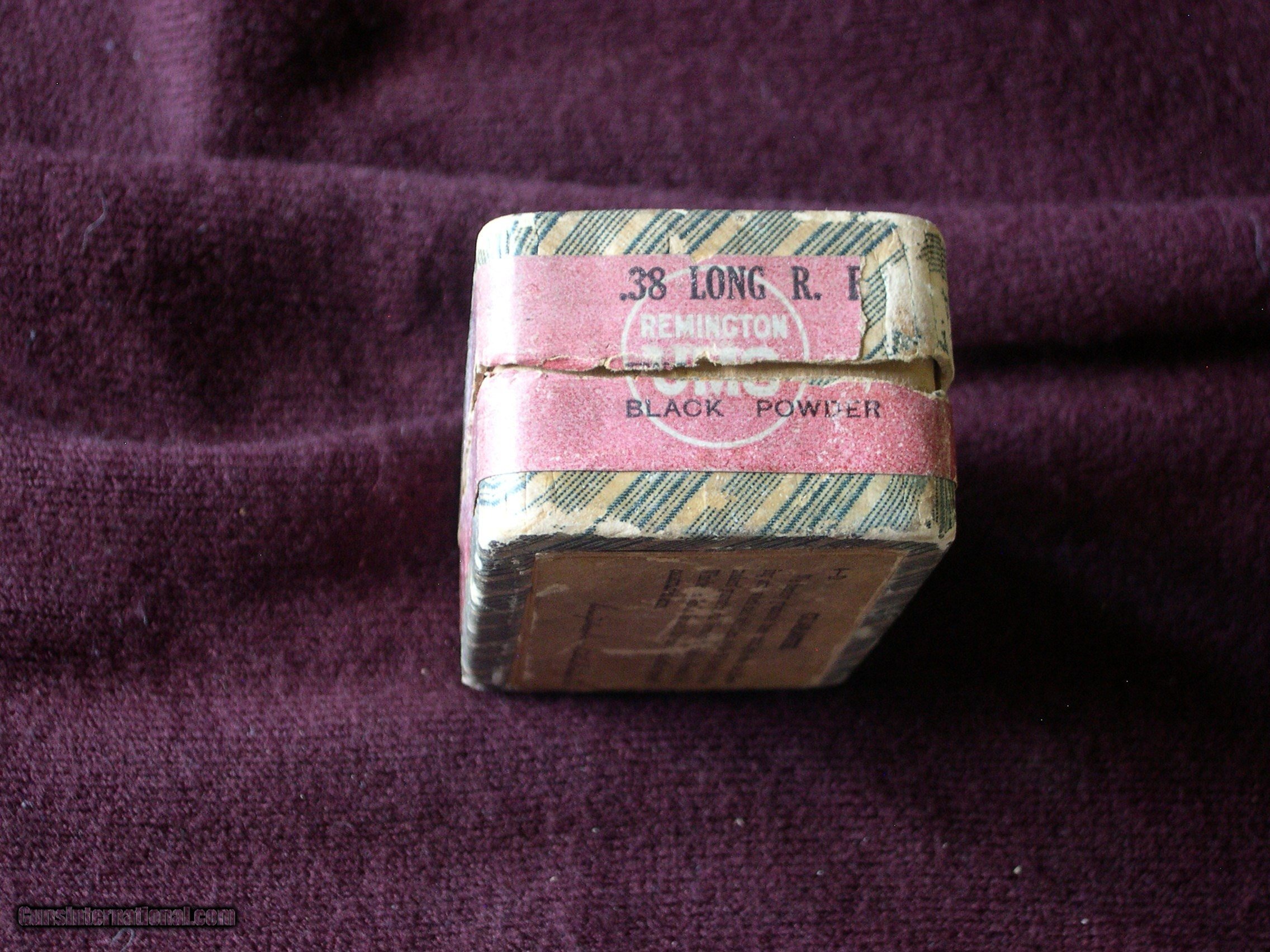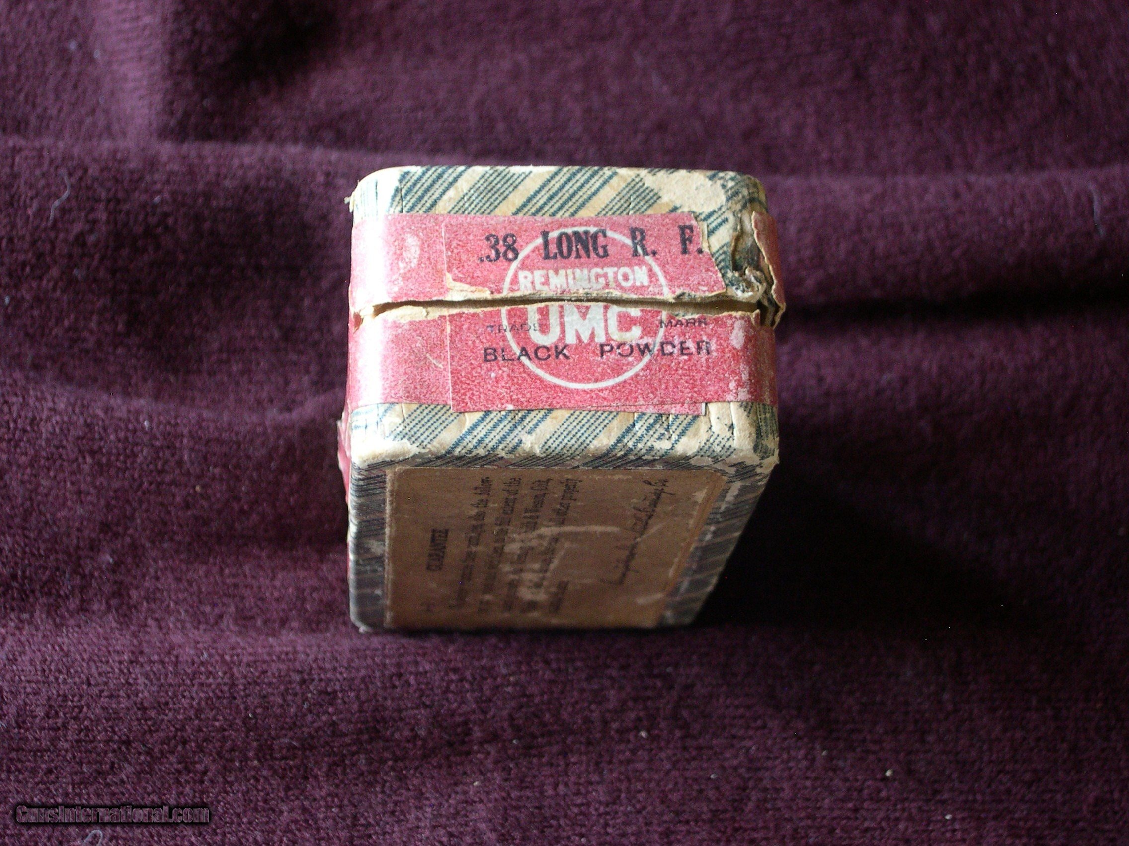 Description: 50 ct Rim Fire longs in nice orig box full. Black Powder UMC made. Hard to find rounds in full box as nice as this !! SOLD |
