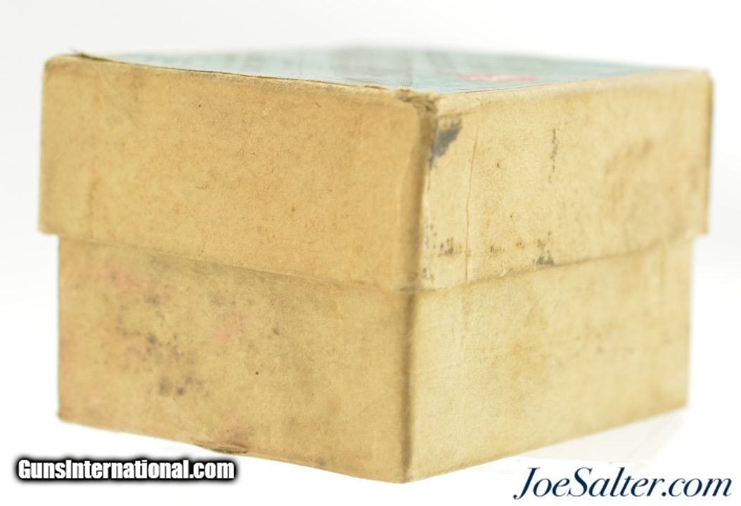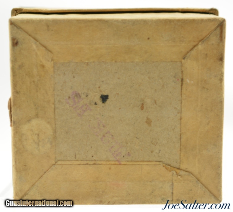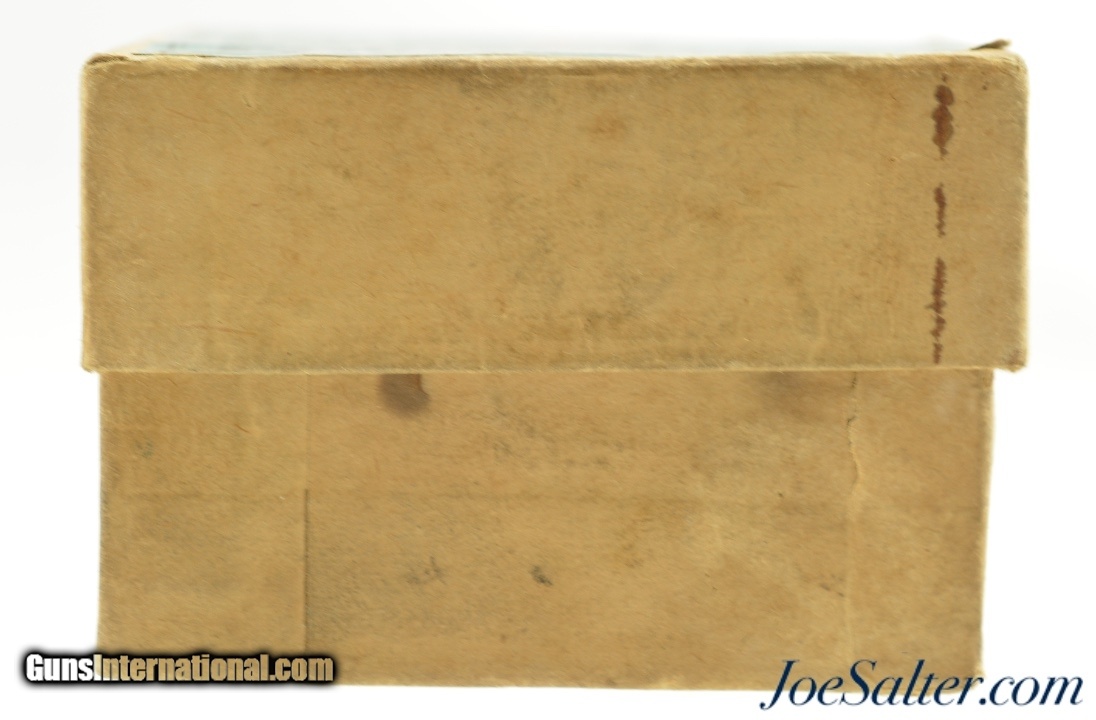 Description: This is an original box of 20 Vintage Union Metallic Cartridge Co. Military cartridges in .43 Spanish IL. The box is in excellent condition with nice un-split corners and edges, one small tare on one bottom edge. The cartridges have some oxidation on some but over-all good+. There are 4 rounds with a different primer but appear the same vintage. Please see photos for fine details. Item Characteristics SOLD |