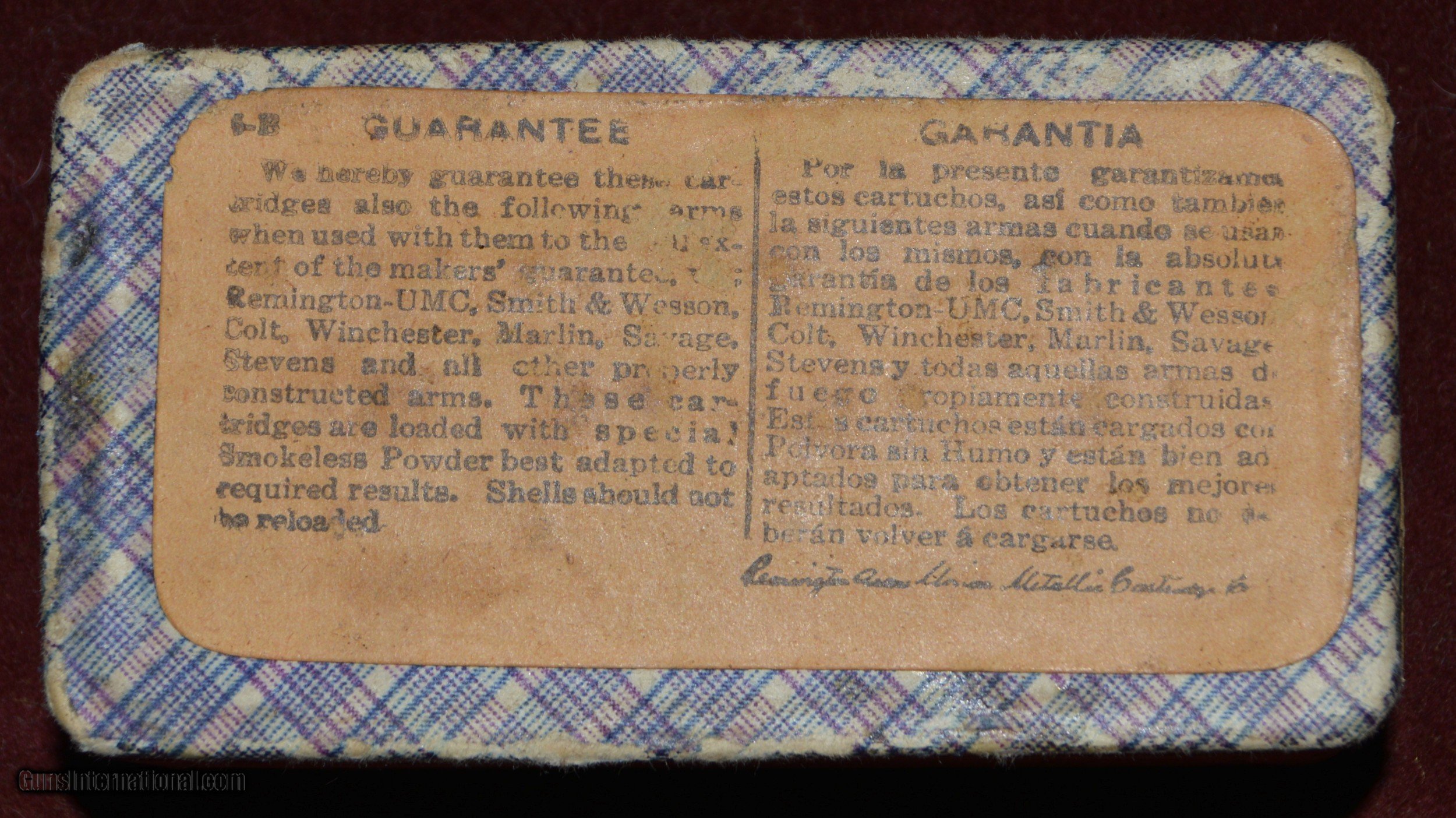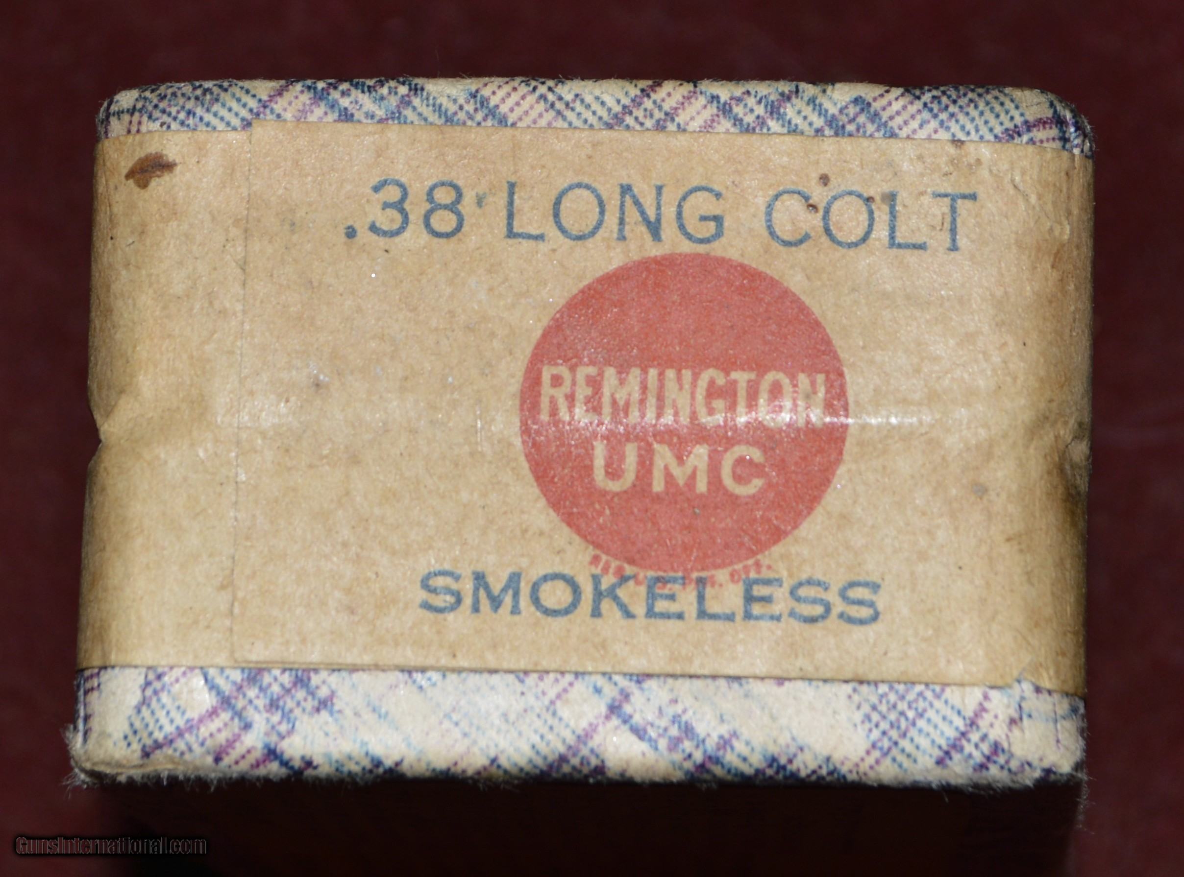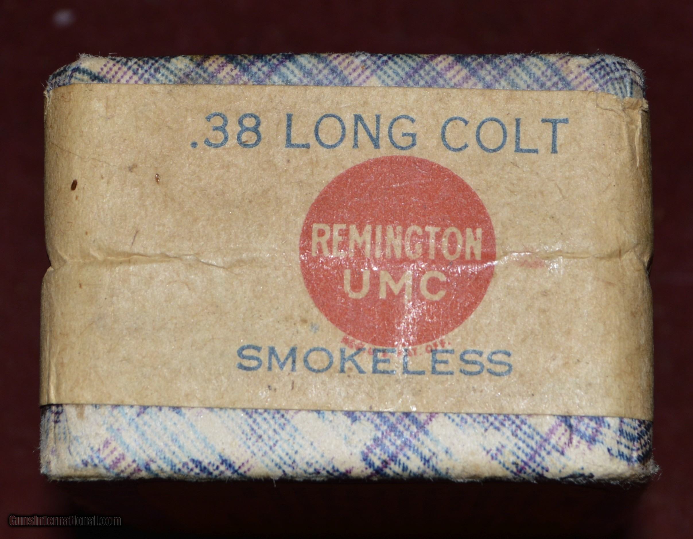 Description: A full unopened box of Remington UMC 38 long Colt 148 grain.The box is in excellent condition with good graphics on all labels.It is completely sealed on all sides.Very hard to find in this condition. SOLD |