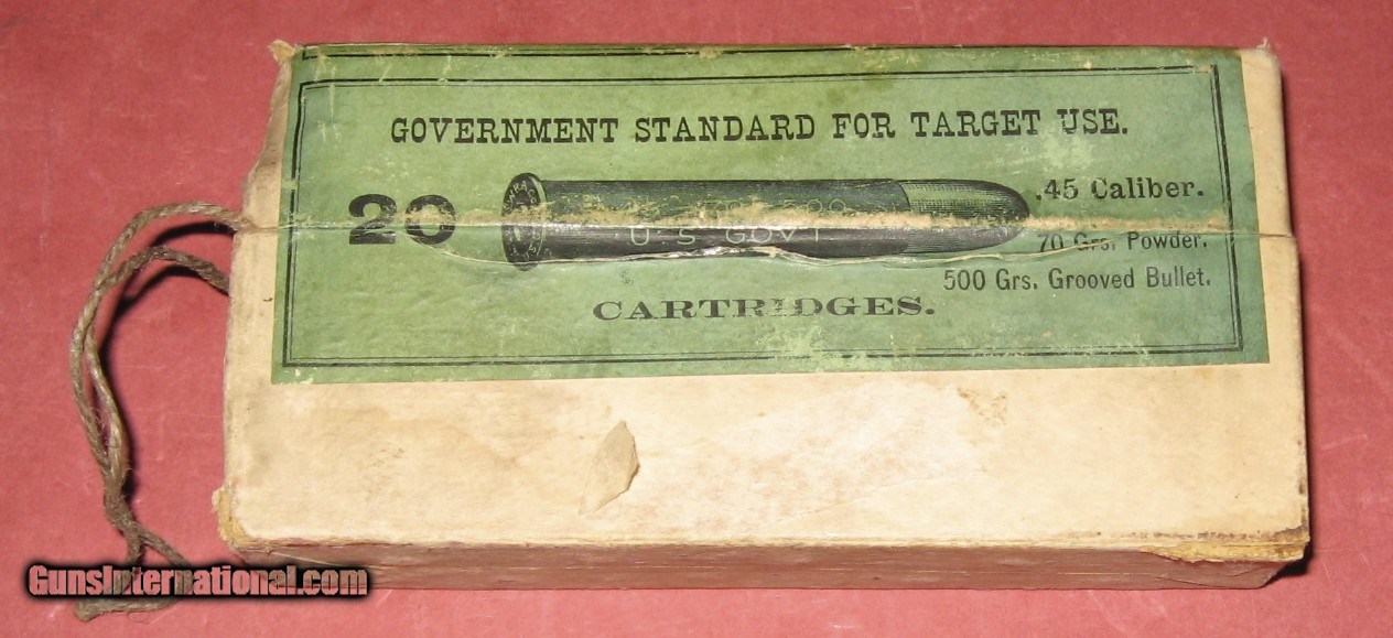 Description: An unopened box of Winchester 500 grain target loads for 45-70.Good graphics on all sides.The opening string is still attached.A hard to find load and box in this condition. SOLD |