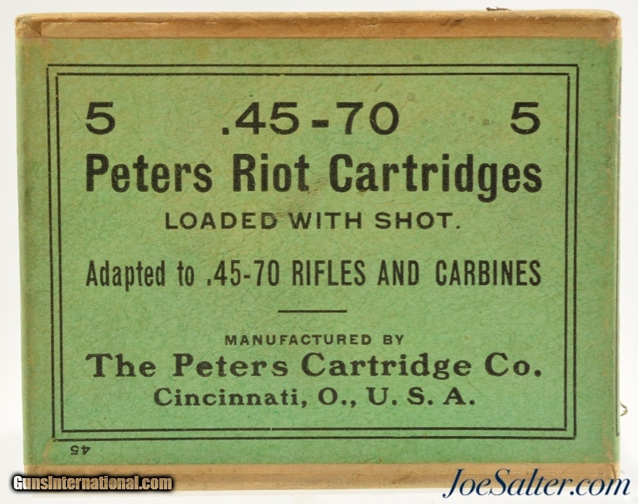 Very Rare Peters Riot 45-70 Cartridges Loaded With Shot 5 Round Box