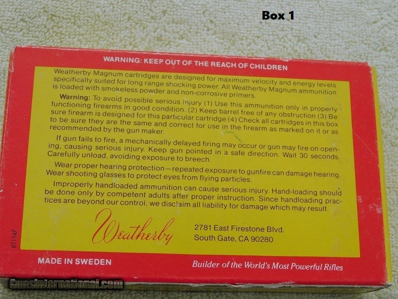 Description: 2 boxes of Weatherby .270 Magnum, 1 box full other box 3 rds light. 20 rds per box of 130 grain soft point ultra high velocity Boxes are excellent and cartridges are like they left the factory EX+++++. Think these are 1950s era. $15 UPS ship fee. no sales to Calif. You are responsible to make sure this ammo is allowed by laws in your location. No ship to Cafif. AK HI iL CT or Wash. DC without proper paper work as reqd. by State law.. SOLD |