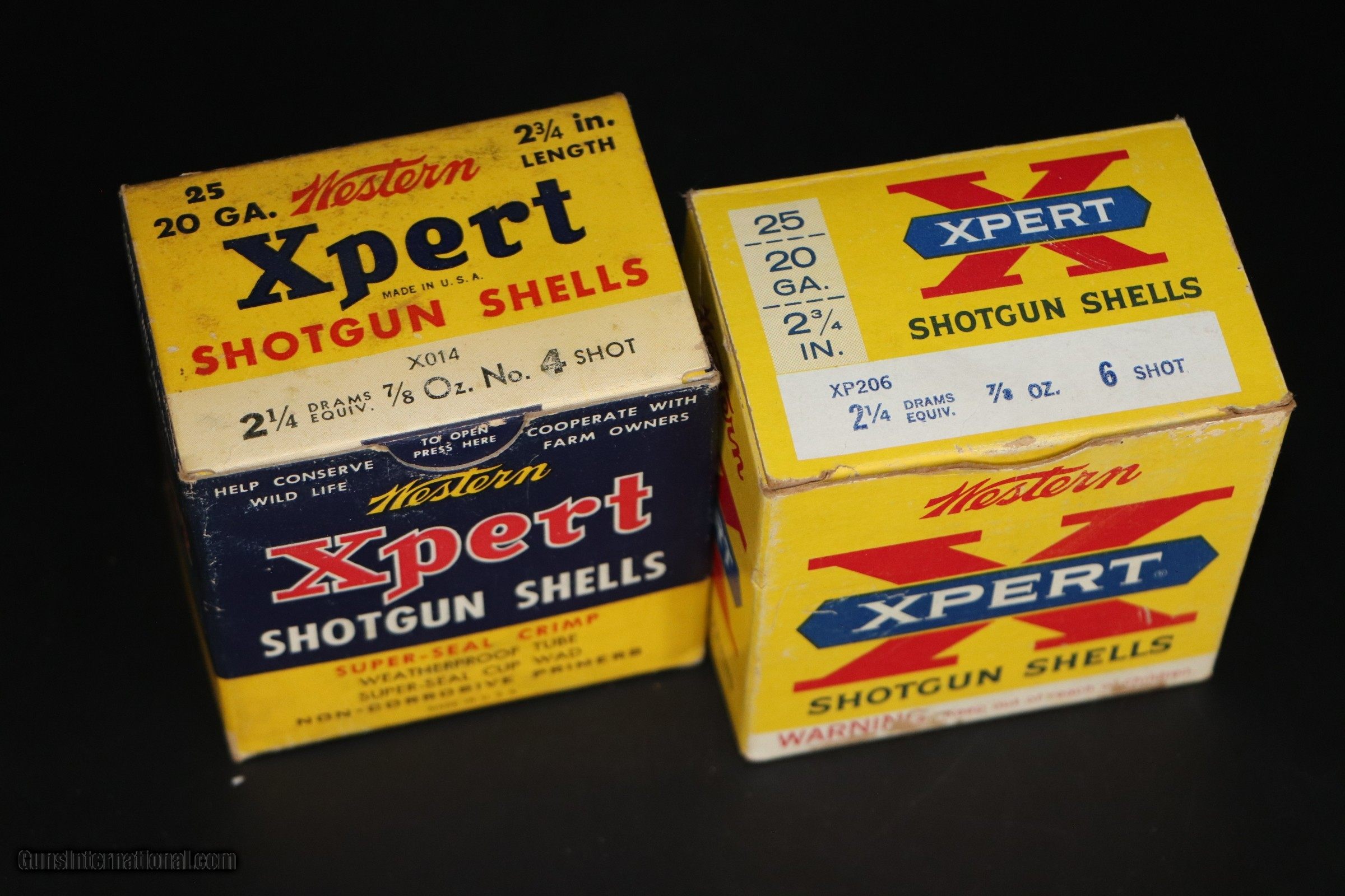 Description: Full Box 25 Rds of Xpert Super Seal Crimp #4 Shot 7/8 oz Paper Shot Shells. 19 Rounds of Xpert #6 Shot 7/8 oz paper shells. Boxes VG-Exc. Ammo is excellent. Add 14.50 S+H SOLD Shotgun Gauge: 20 Gauge |