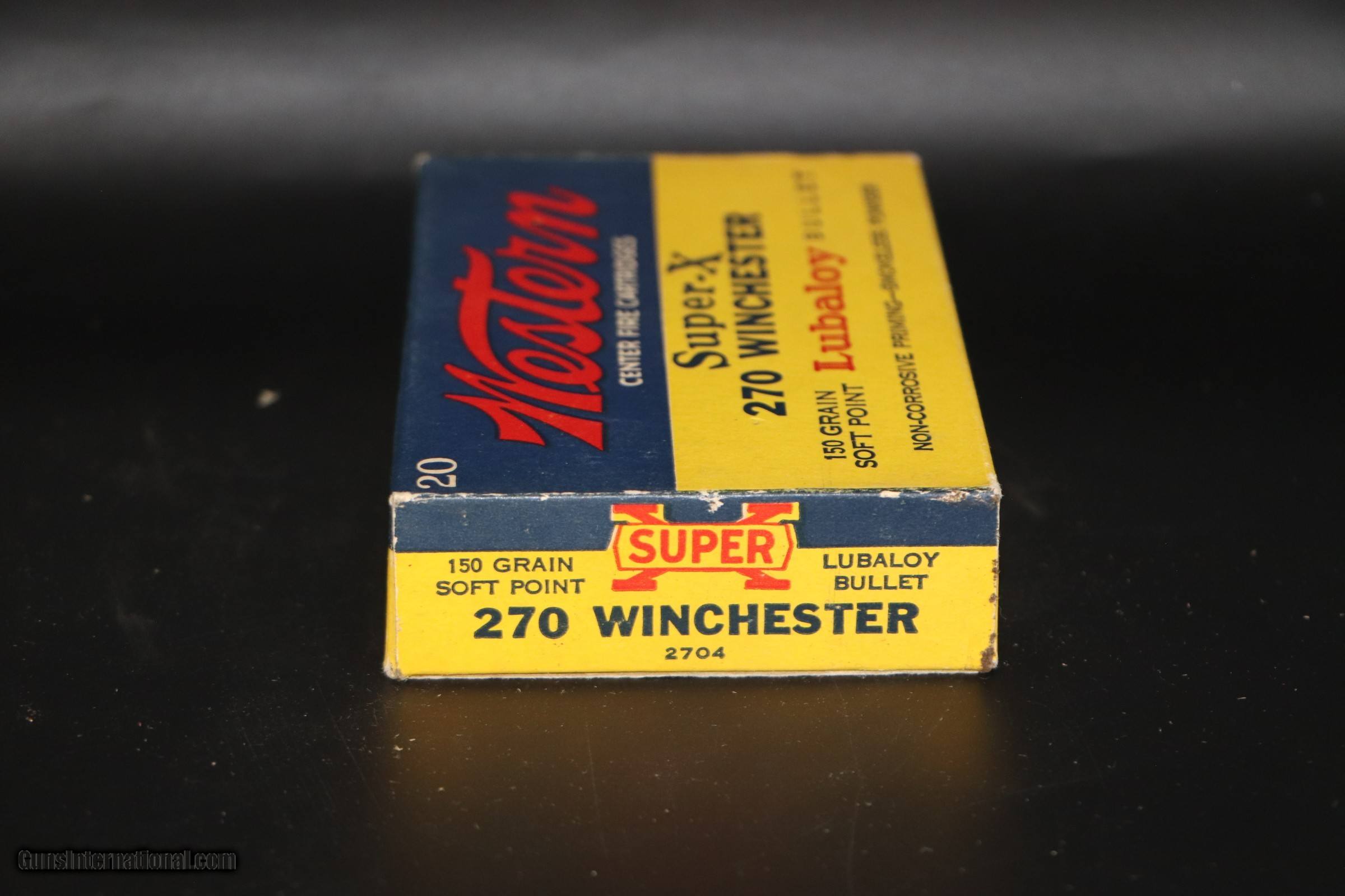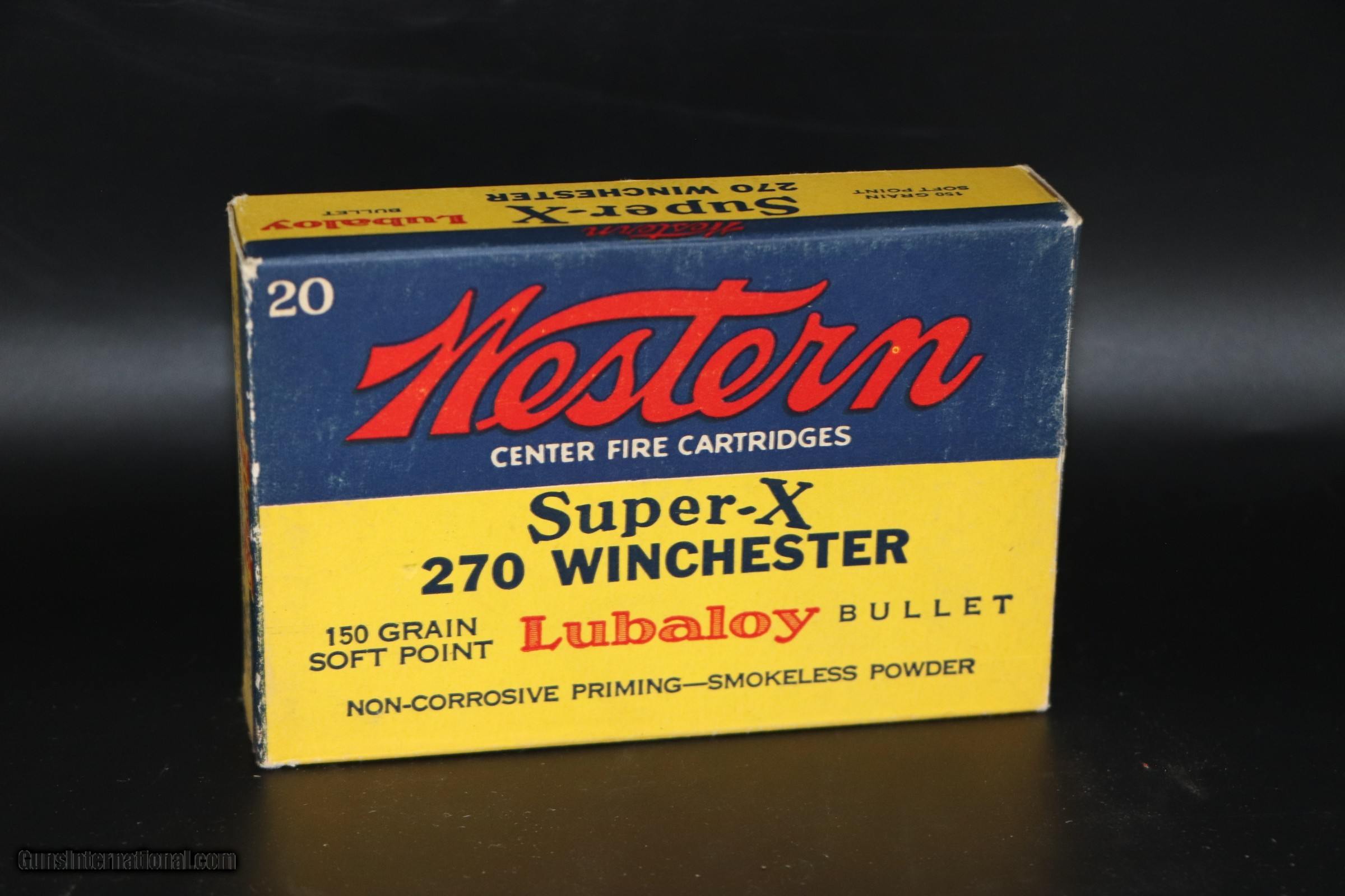 Description: Vintage Western S-X 270 Win 150 Gr. SP Lubaloy non-corrosive priming. Box is Excellent - Ammo is mint. Add $13.50 S+H SOLD Rifle Caliber: .270 Winchester |