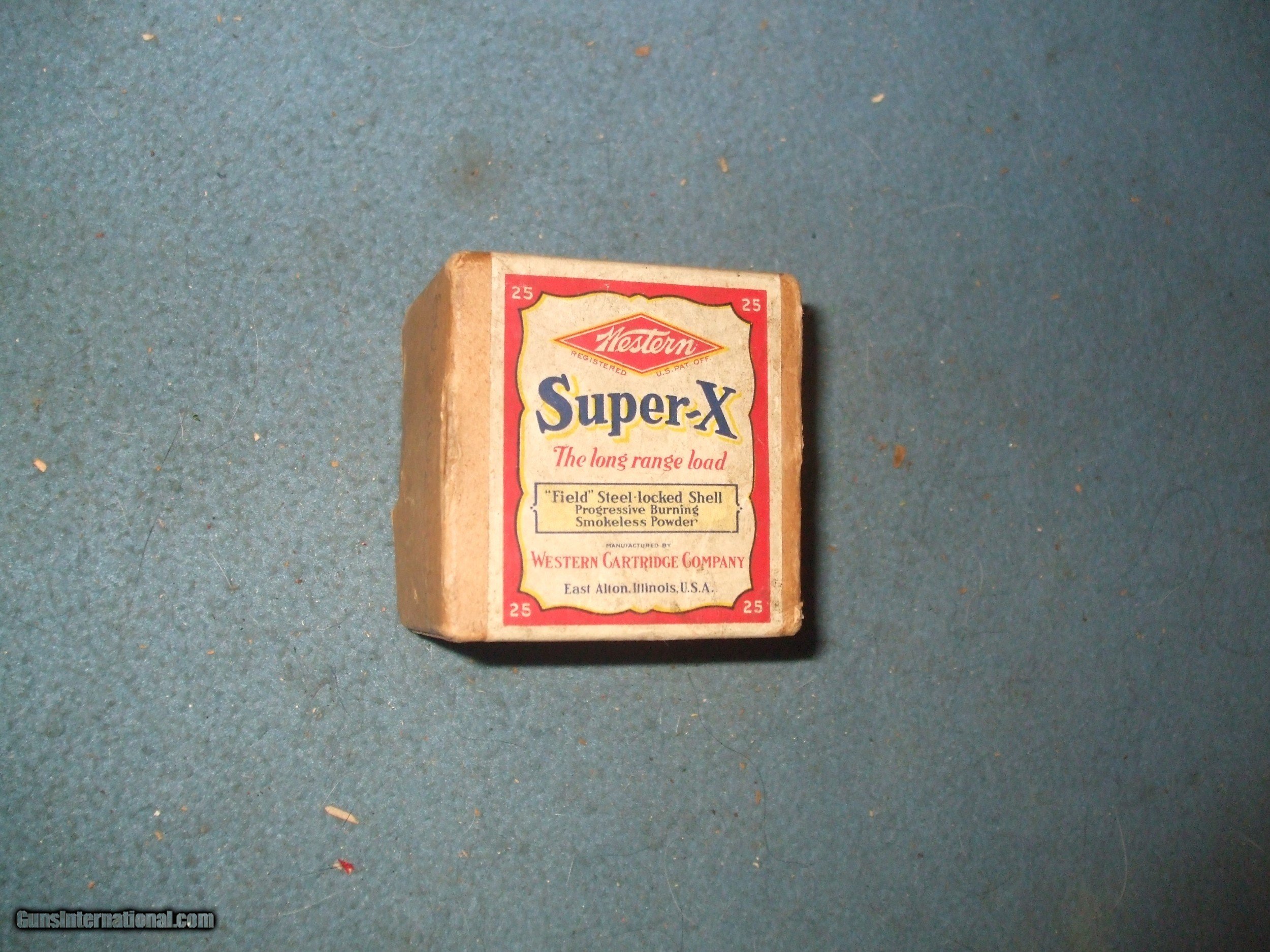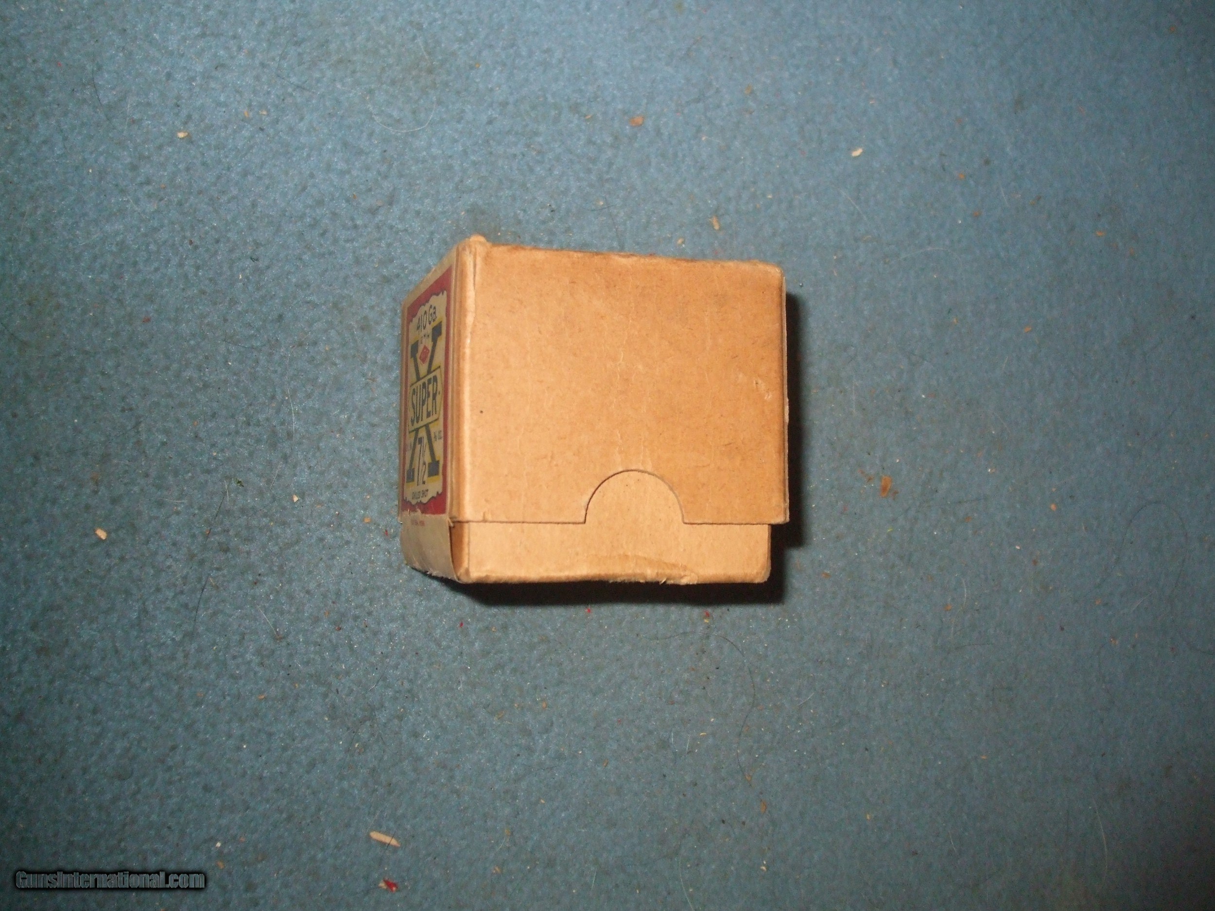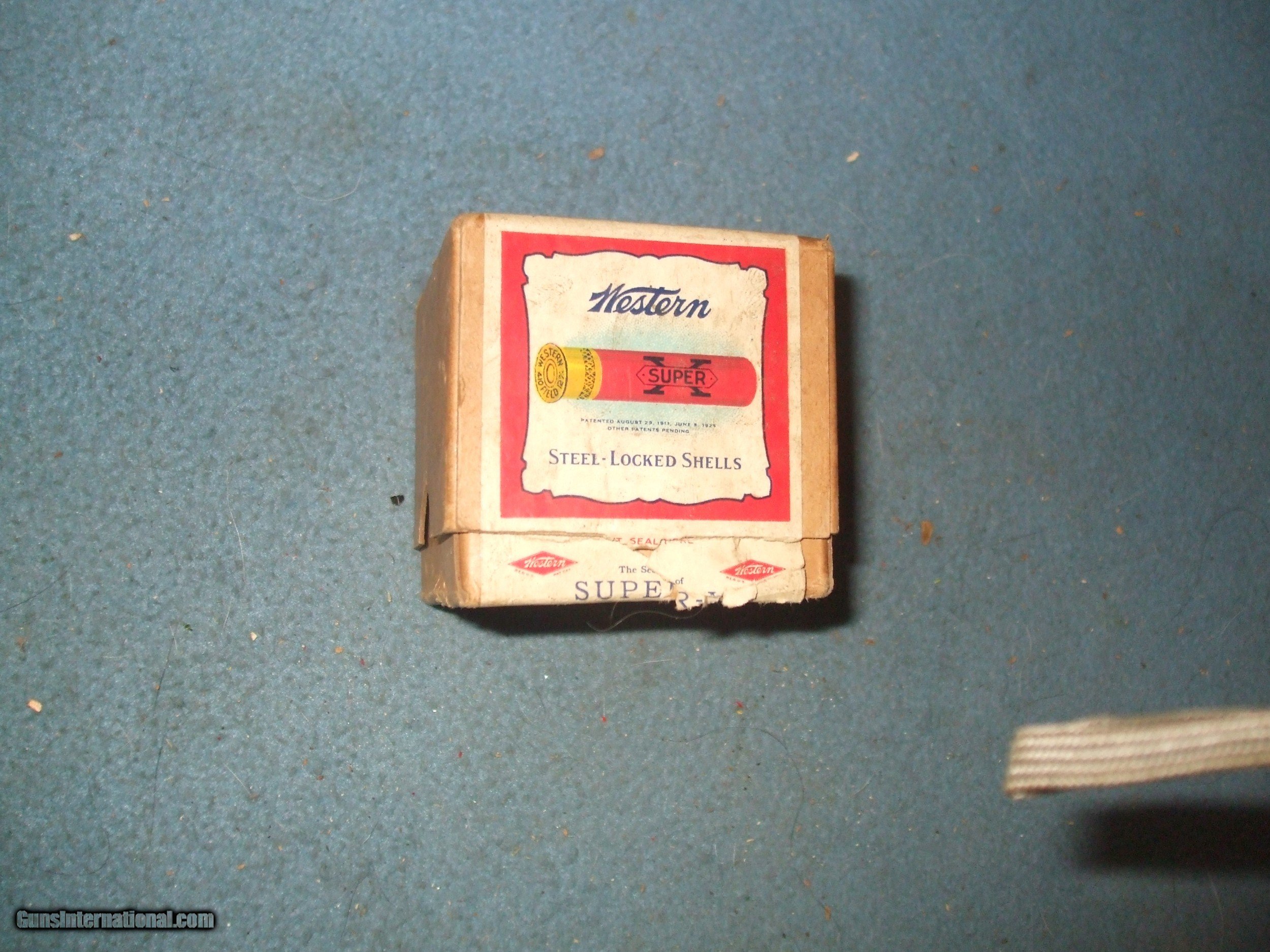 Description: Western 410 Super X 21/2" #71/2 shot. Paper shell roll crimp. Early Western slip top box with good graphics. Not a full box 6rds only. Shells very good. Please note cannot ship to CA, MA, NJ,IL or any other restricted areas. I am located in Delaware and can deliver locally. SOLD Shotgun Gauge: .410 Gauge |