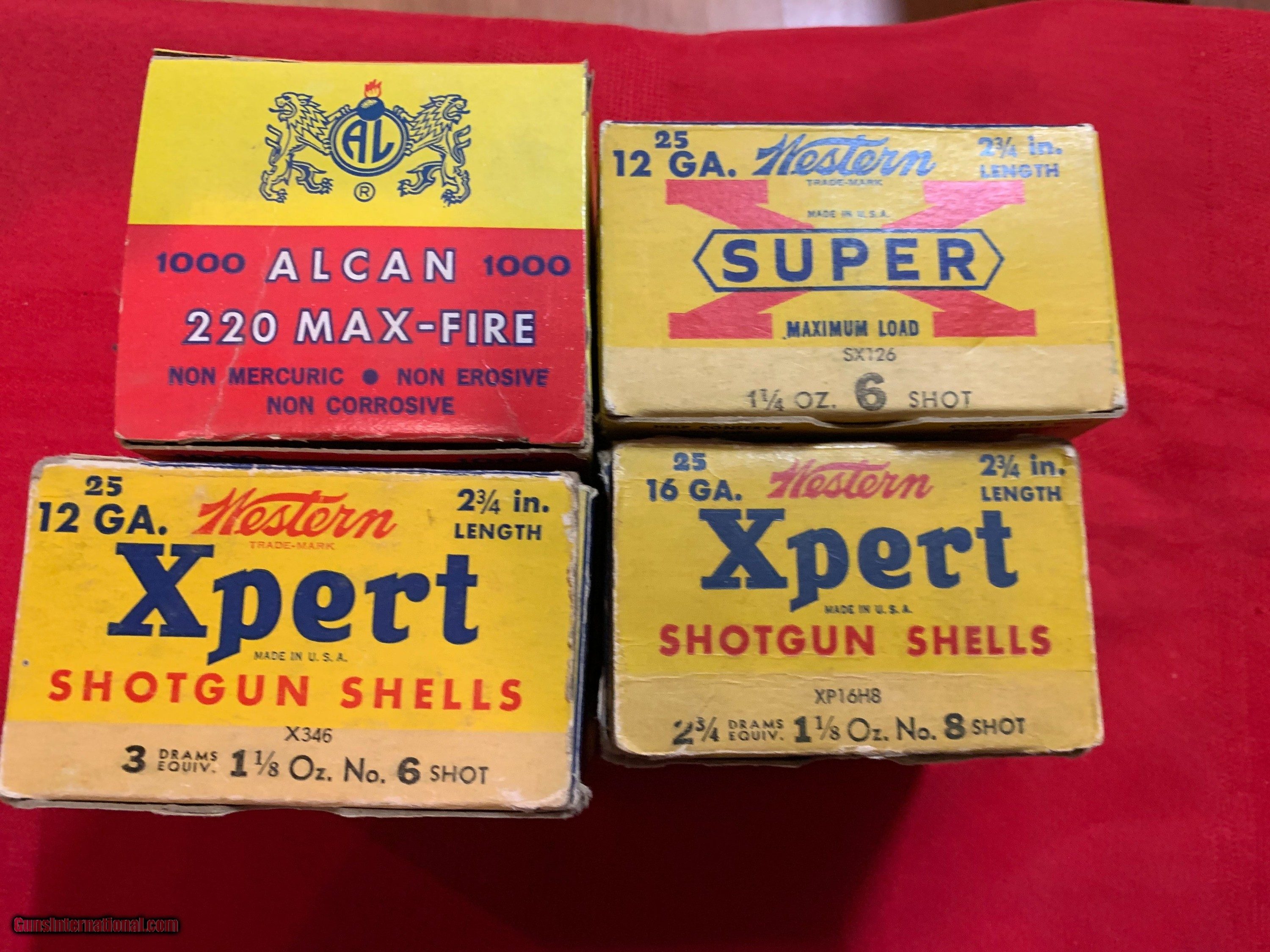 Description: 3 Boxes of Western paper shot shells. 2 boxes 12 gauge #6. One box 1 1/8 oz., one 1 1/4 oz. One box 16 gauge #8 (15 rounds) Plus 500 Alcan primers SOLD Shotgun Gauge: 12 Gauge, 16 Gauge |