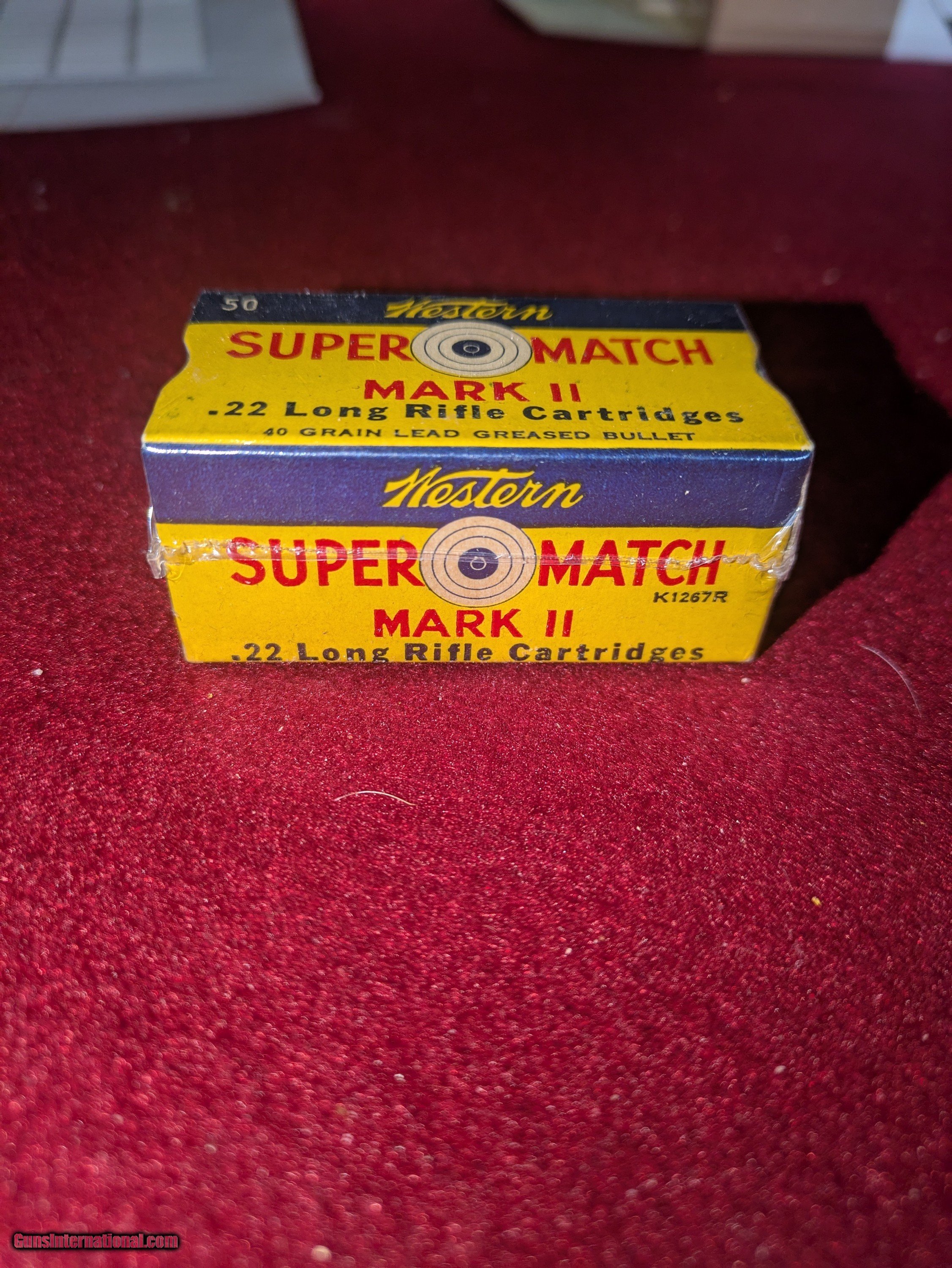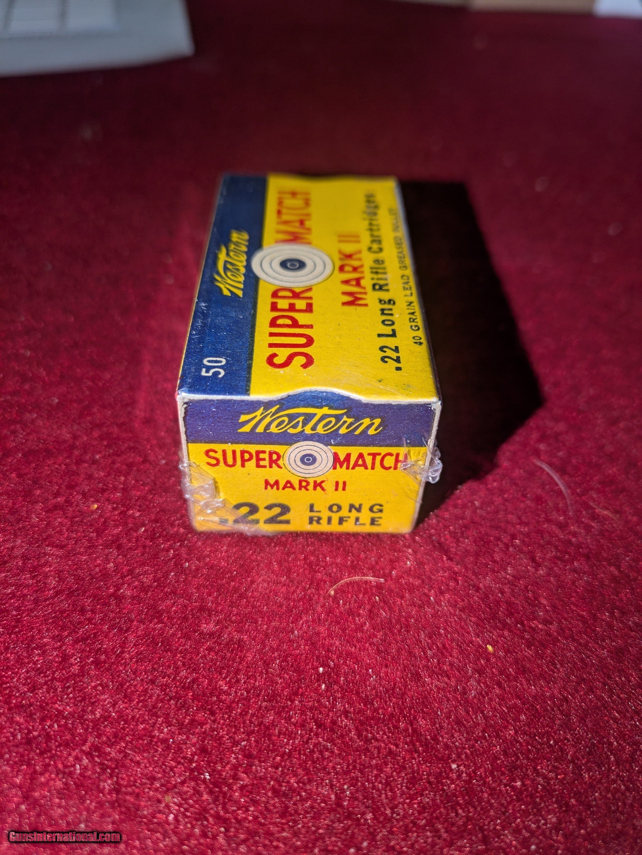 Description: Factory full Western super match 2 bullseye box. Super nice condition great color original 22lr ammo inside. Box is already wrapped for display I combine shipping and also accept visa and MasterCard for payment but it adds 4 percent to total 20.00 plus shipping SOLD Rifle Caliber: .22 Long Rifle |