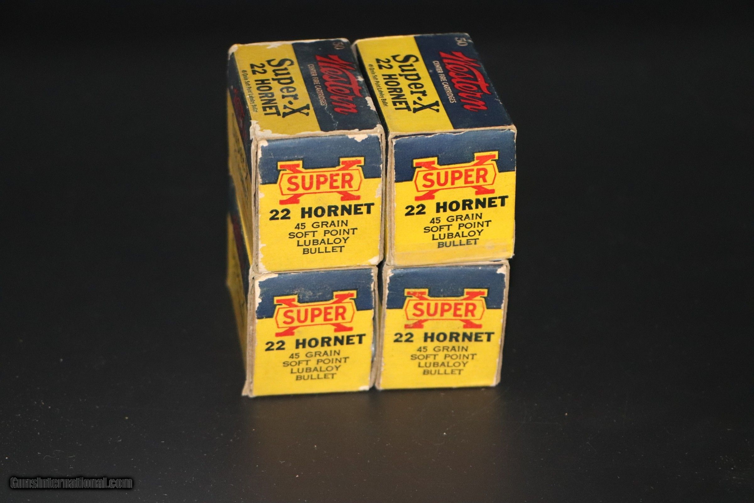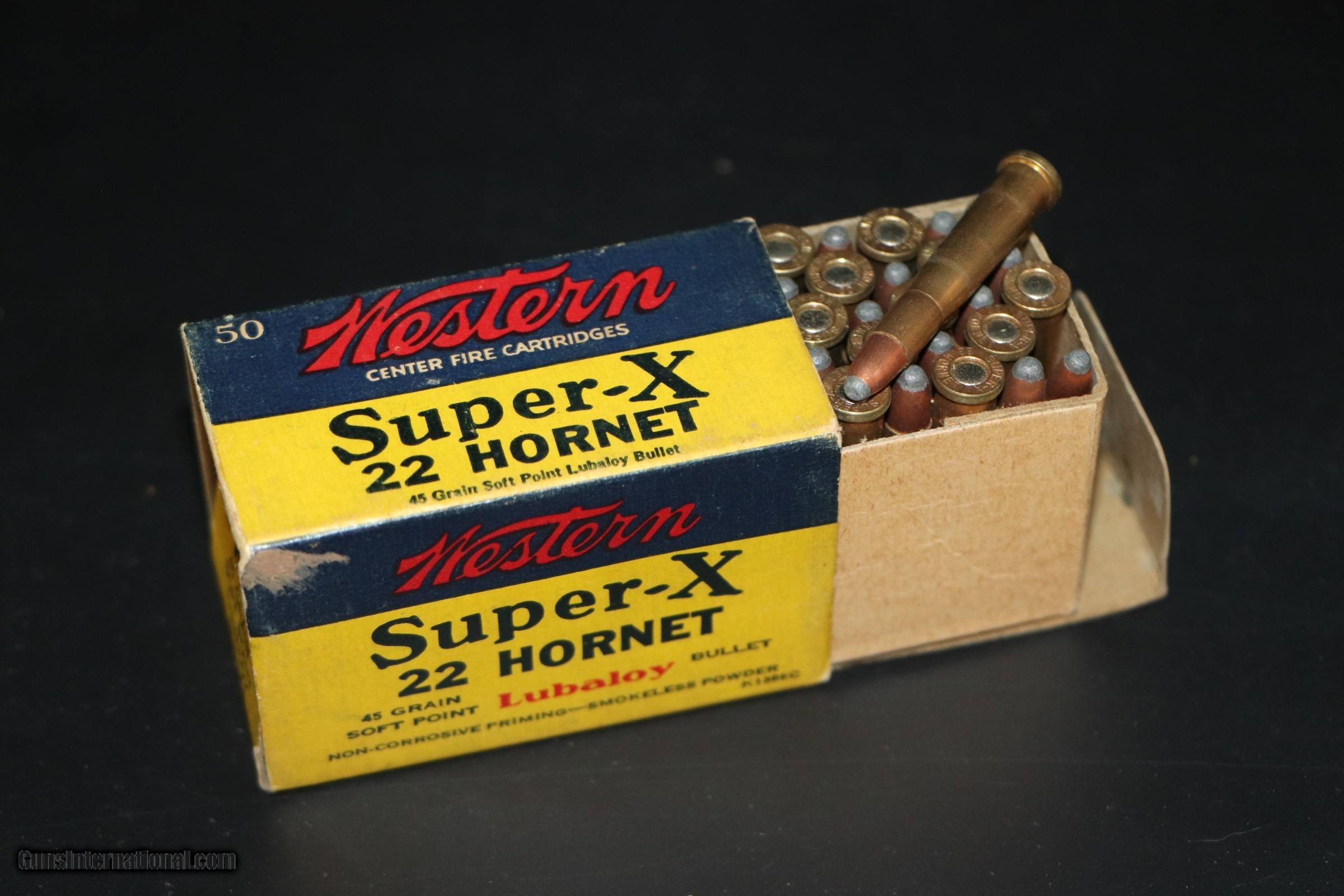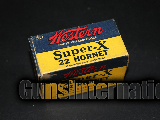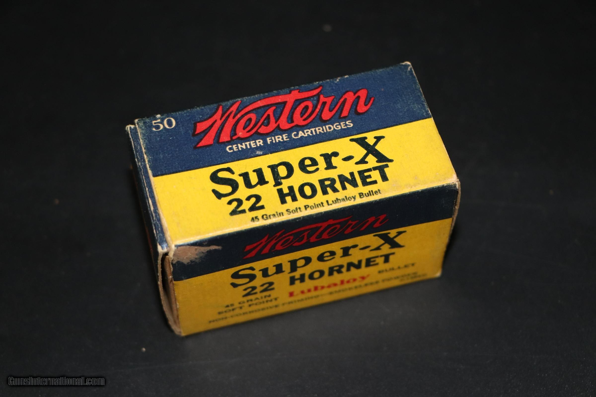 Description: Western Super-X 22 Hornet. Box is VG. Ammo is excellent. 2 Available. 12.50 S+H. Add $2 shipping for each addtional box SOLD Rifle Caliber: .22 Hornet |