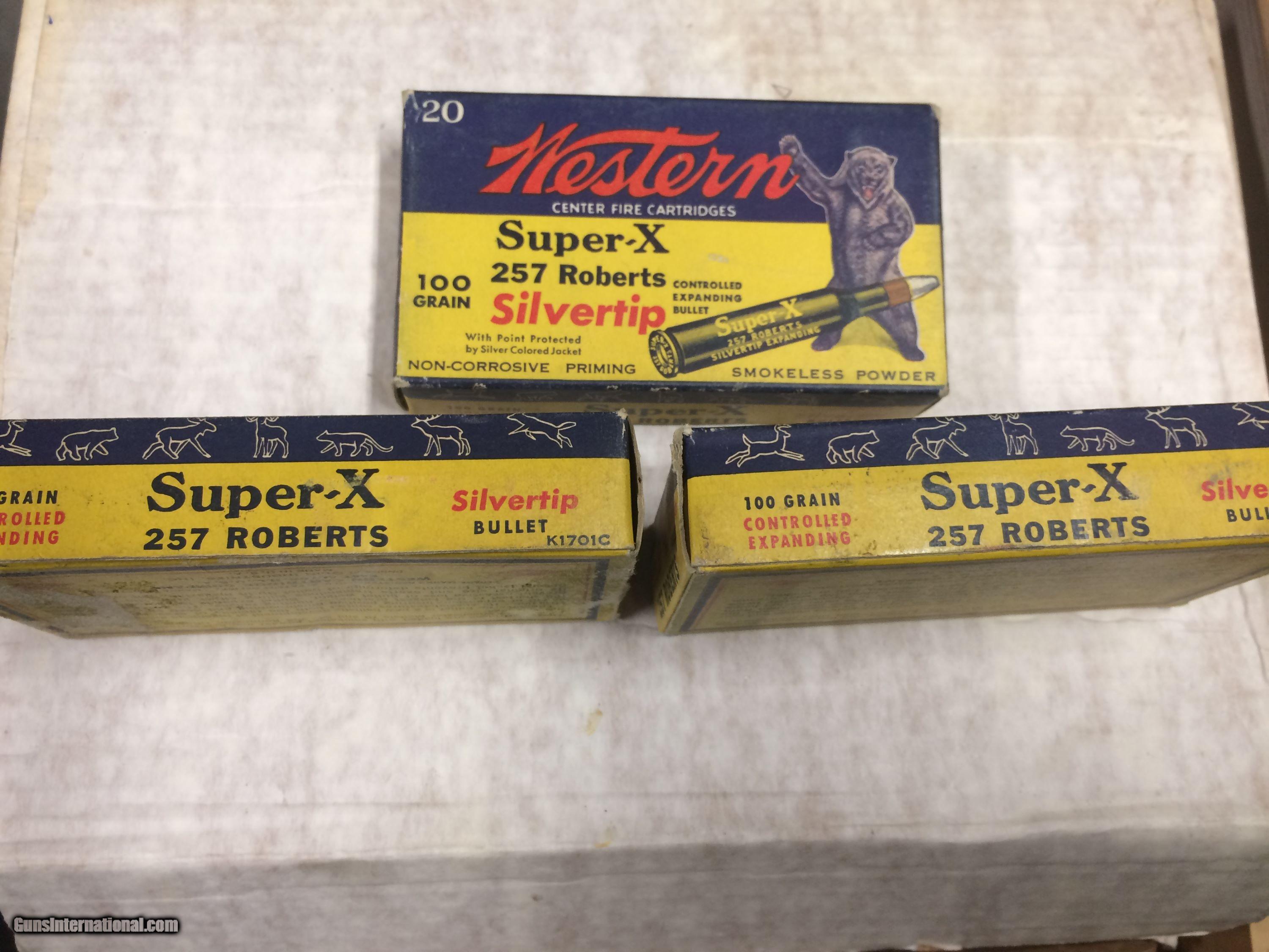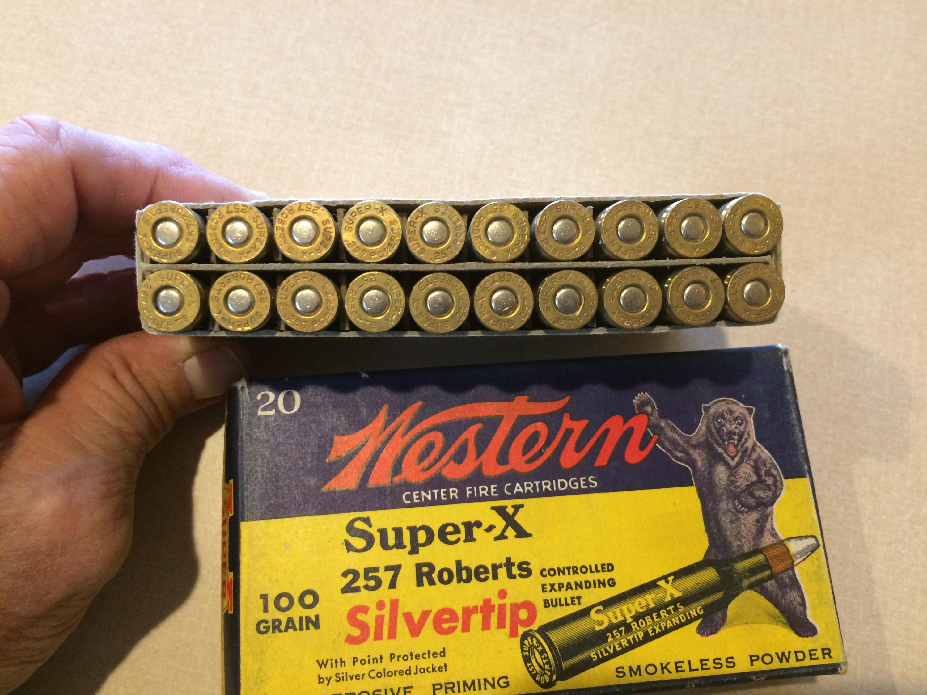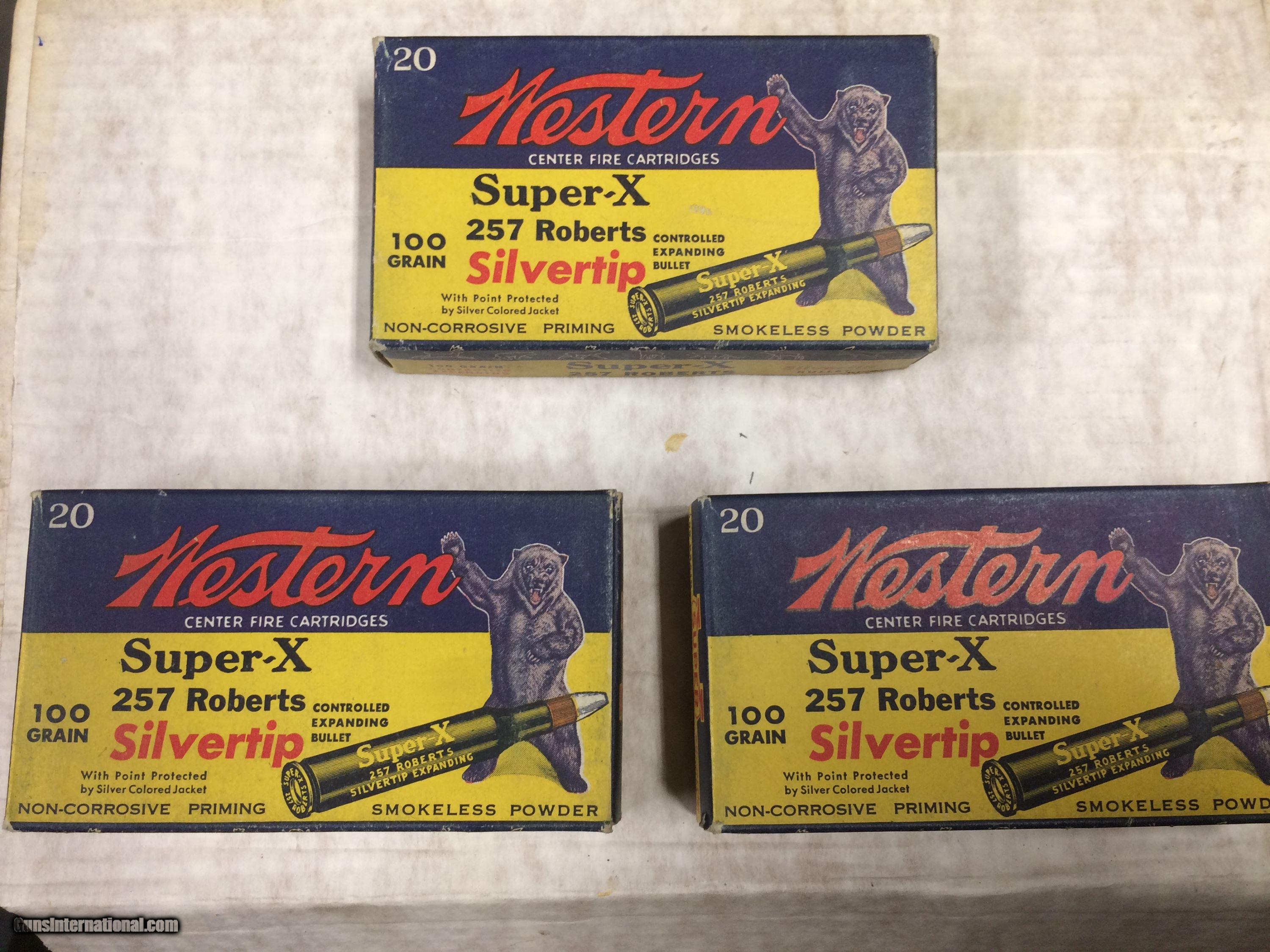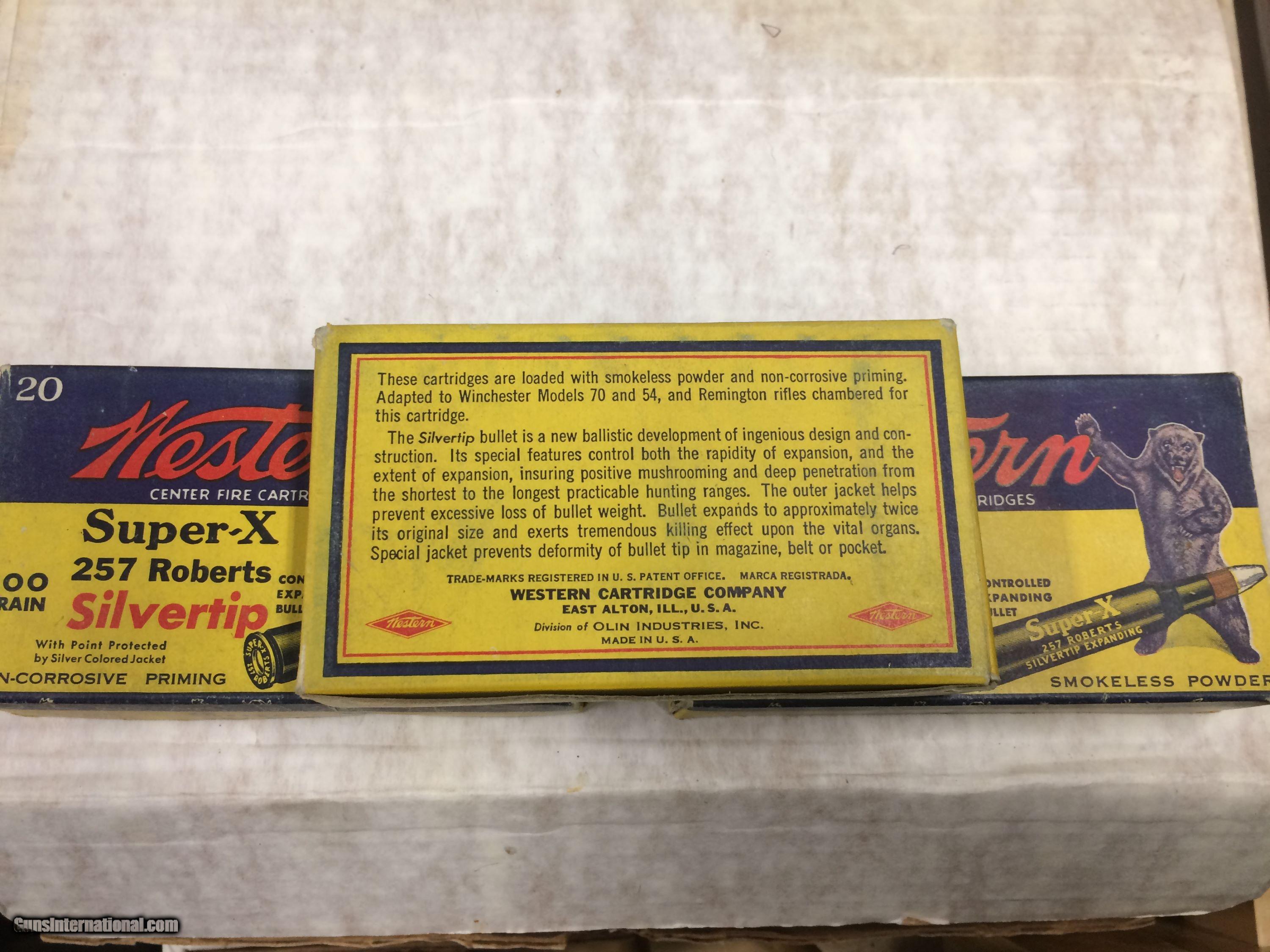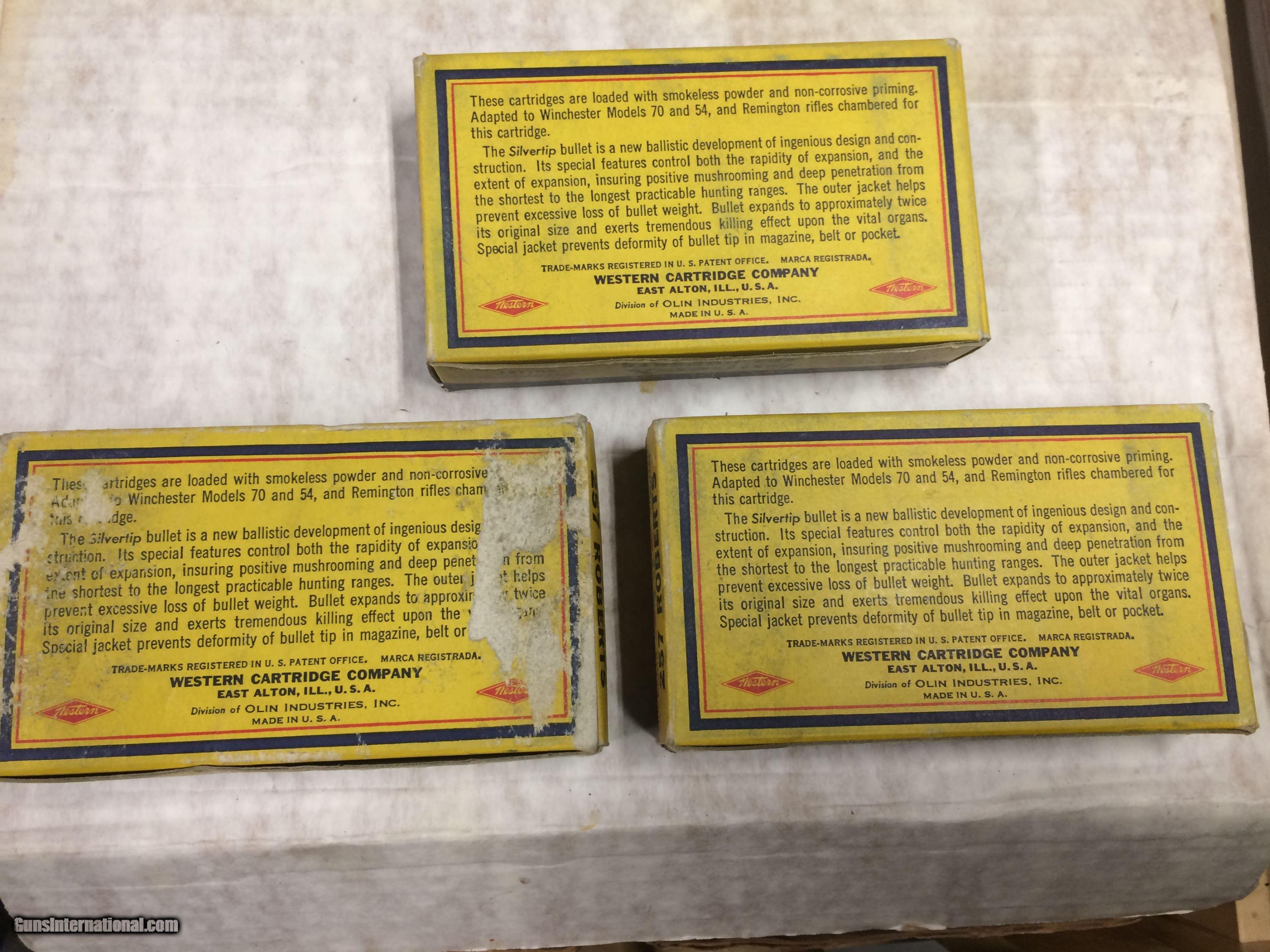 Description: The three boxes are in excellent overall condition, retain good color. Flaps are good and all but one have good seams. One box has a gentle seam separation and some peeling on the back. Grizzly boxes are some of the most collectible of all the ammo box series. Good caliber. Ammunition is in excellent condition with no corrosion or bullet deformation . $300 Shipped free by insured FEDEX. SOLD |