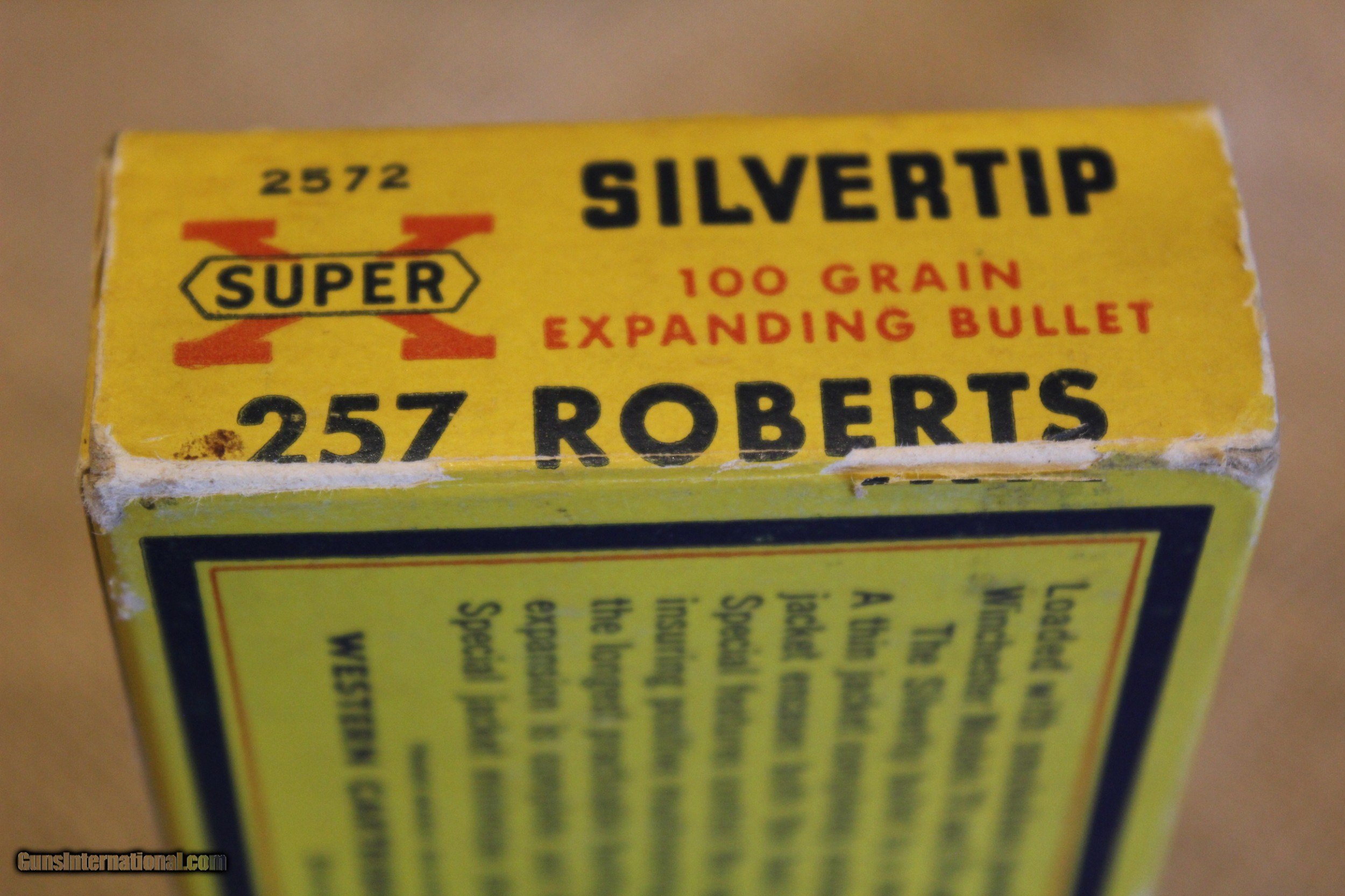 Description: One box of Western Super X .257 Roberts Silvertip. See photos for condition. Call Bill at RW Outdoors with any questions at 406-842-5271. Shipping included, no California sales. SOLD Rifle Caliber: .257 Roberts |