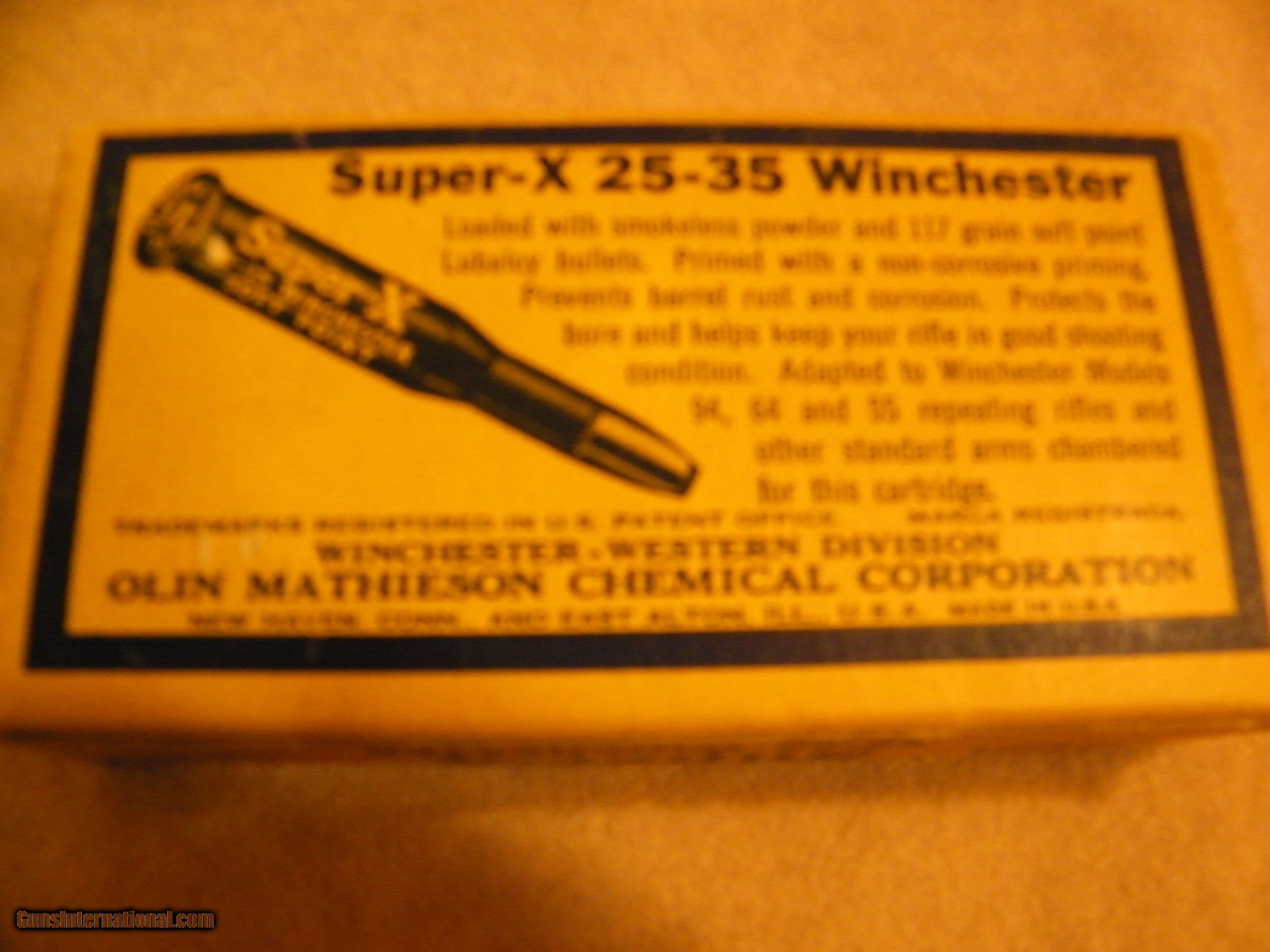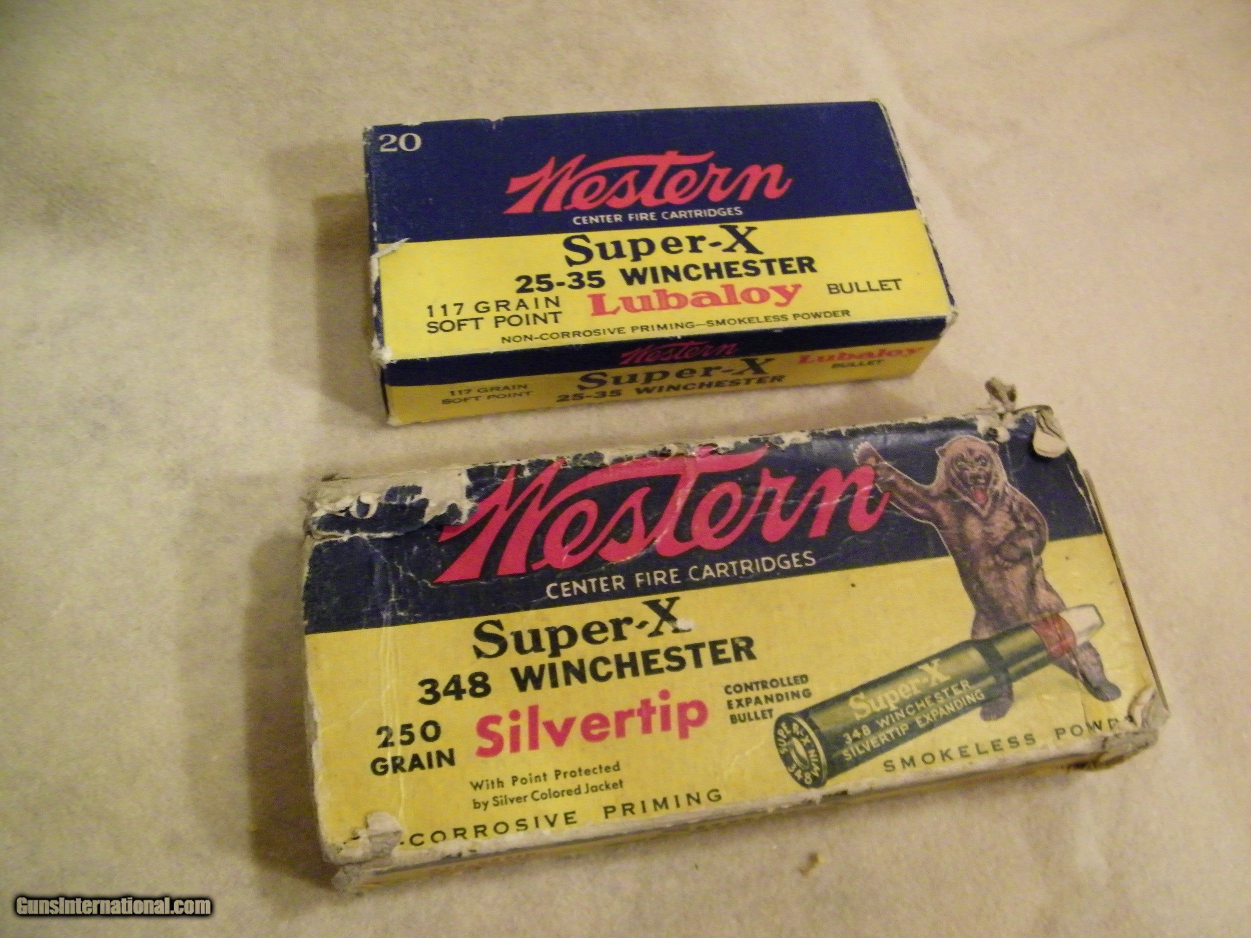 Description: Western Super X ORG. Box/ 25-/35 Cal. Mint box//Full box 117gr.==$150. each/& box 348 cal.--250gr.-- box not so good ,but is full $125 also. Call if needed--651 459 1177 any time.OR Best Offer ? SOLD |