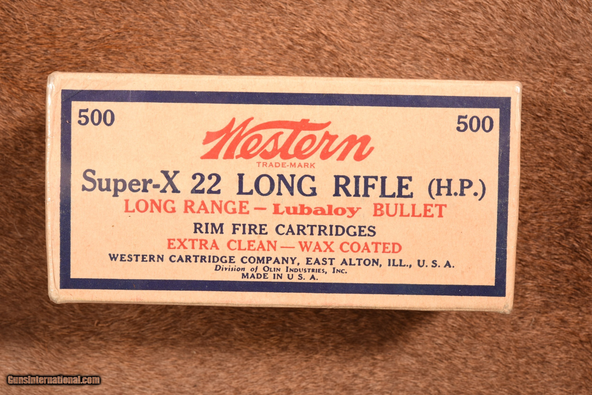 Description: Here is a full and correct brick of Western Super-X Long Rifle Hollow Point. Brick slrrve is almost perfect and the 10 boxes inside are mint. SOLD |