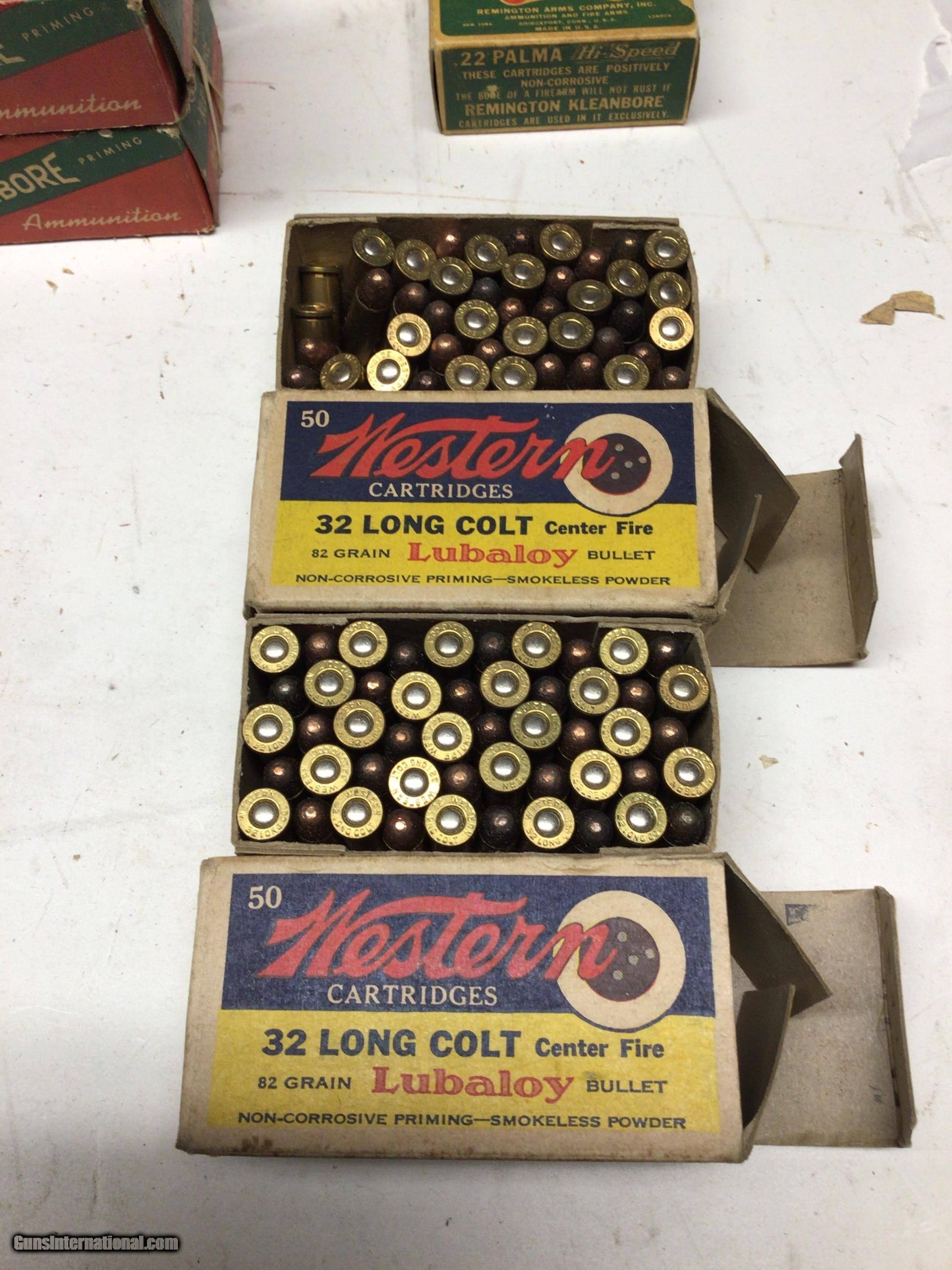 Description: Western 32 long colt,a few bullets missing,fair boxes ,good bullets.price is for both boxes. SOLD |