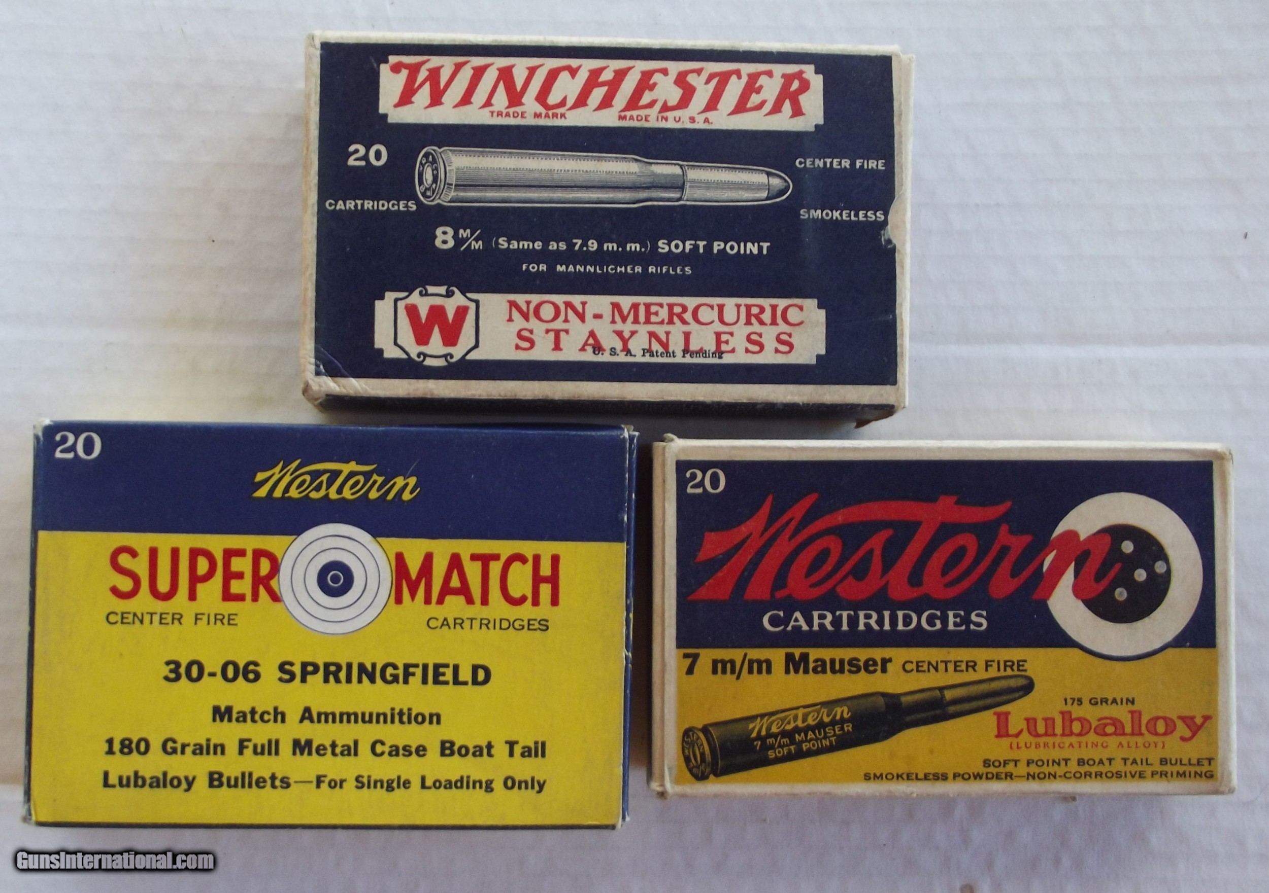 Win "1928" Blue & White 8 mm Box, Western Bullseye 7 mm & Western 30-06 Super Match