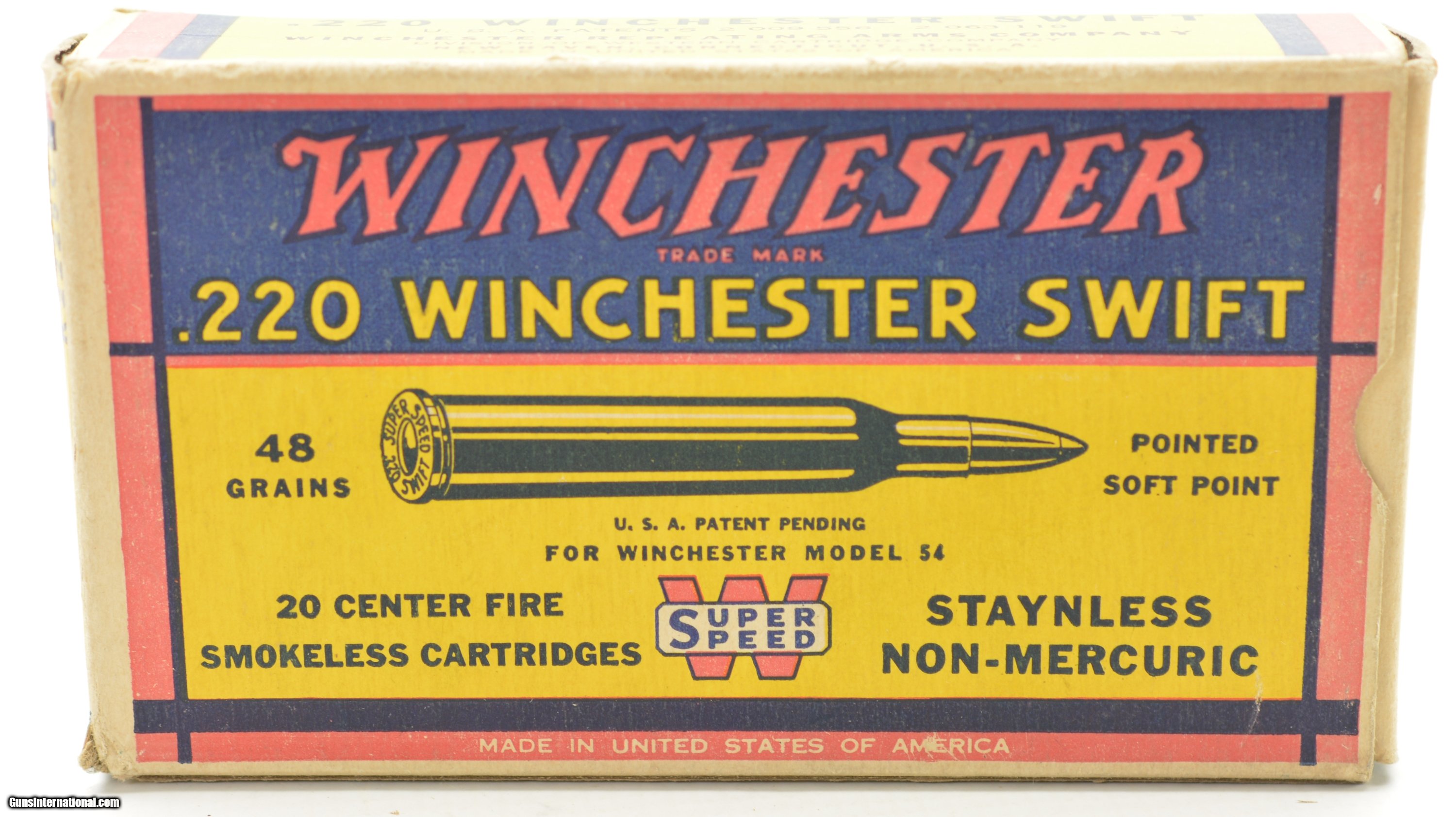 Winchester “1939" box of 220 Swift Full Box Ammunition