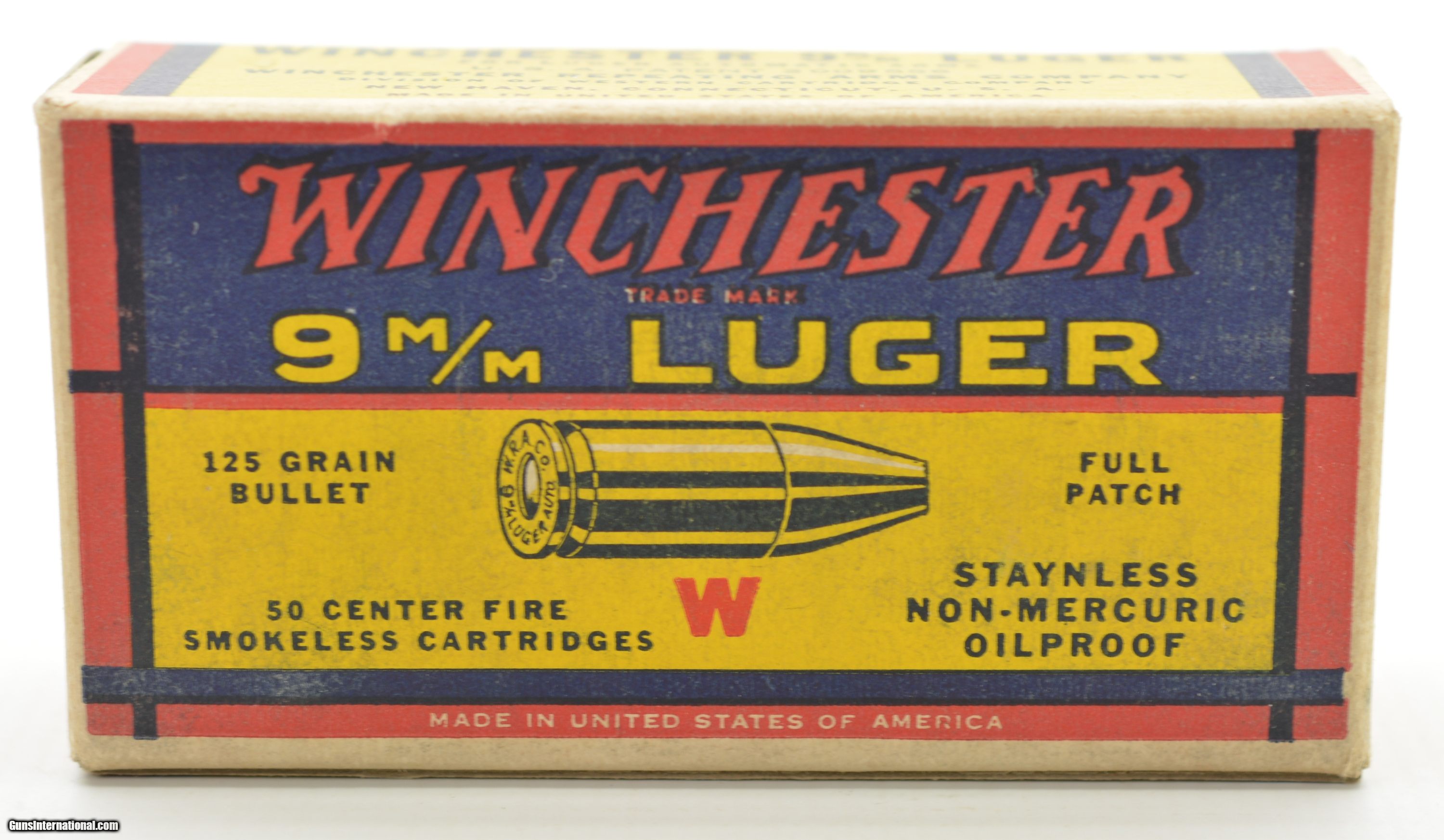 Winchester “1939" Style Transition “K" Code 9mm Box Ammo 115 Gr.