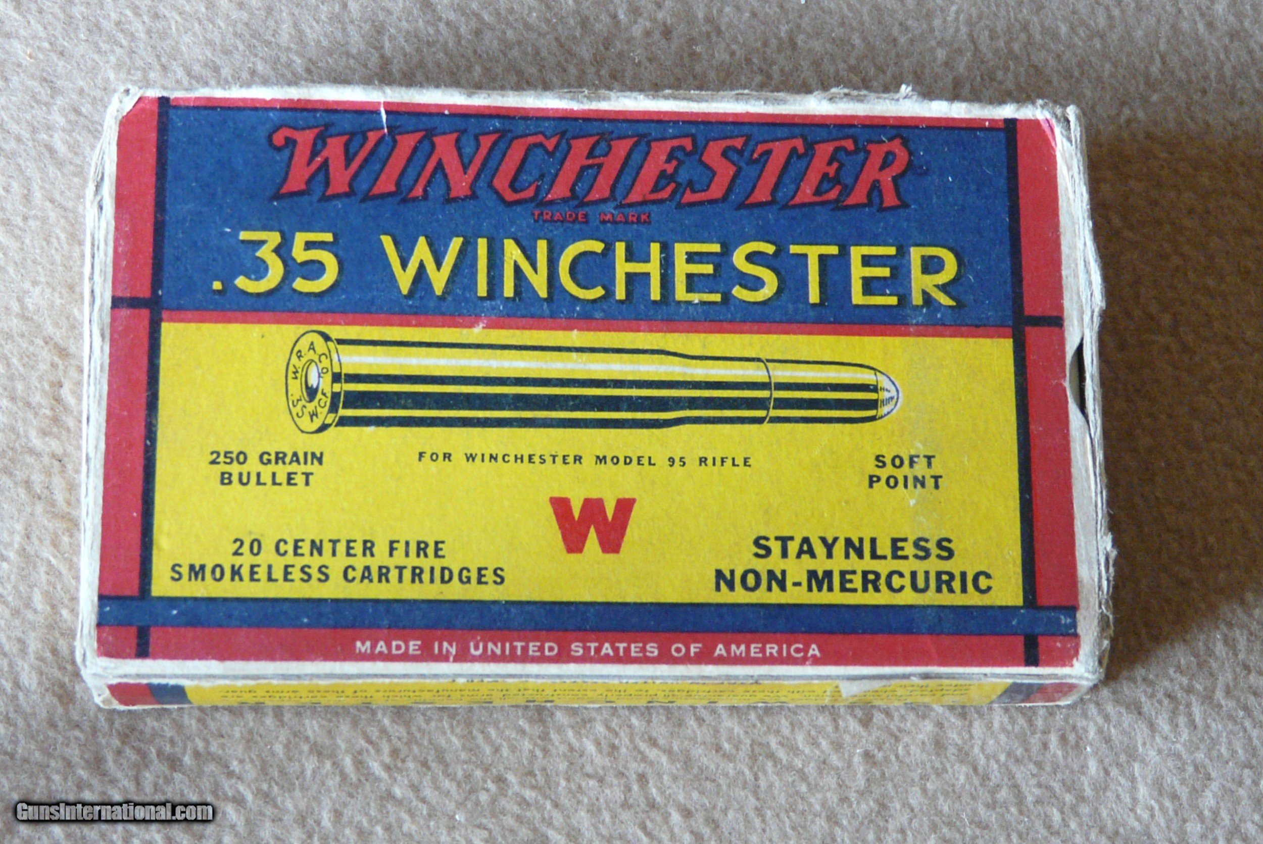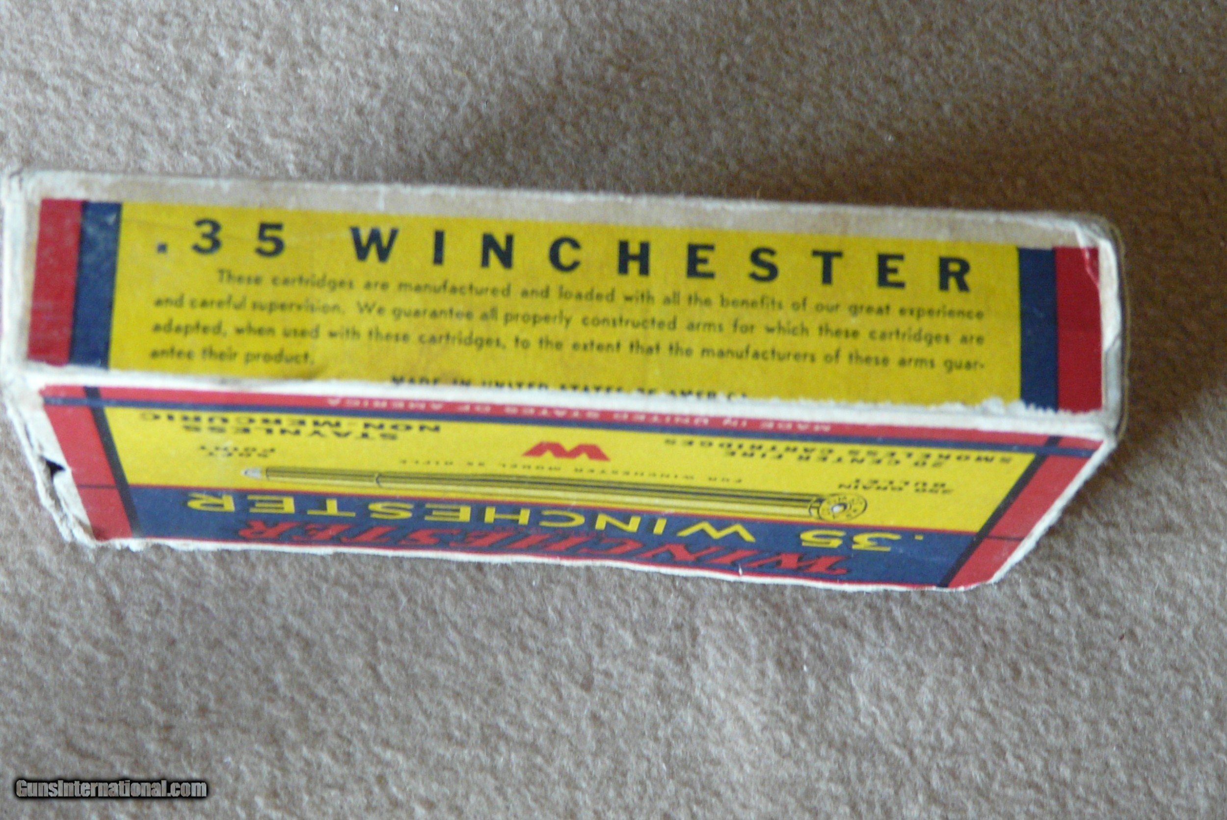 Description: This 20 ct box of 260 Gr ammo is ready to shoot or display, box is intact and full, and shoots in Marlin And Winchester rifles !! Bullets are soft point, and ready to use!! I have another box of 20ct , 35 Wins also, all ready to shoot, in red blue & yellow box, All these are original factory loadings 40 rounds in total ! SOLD |