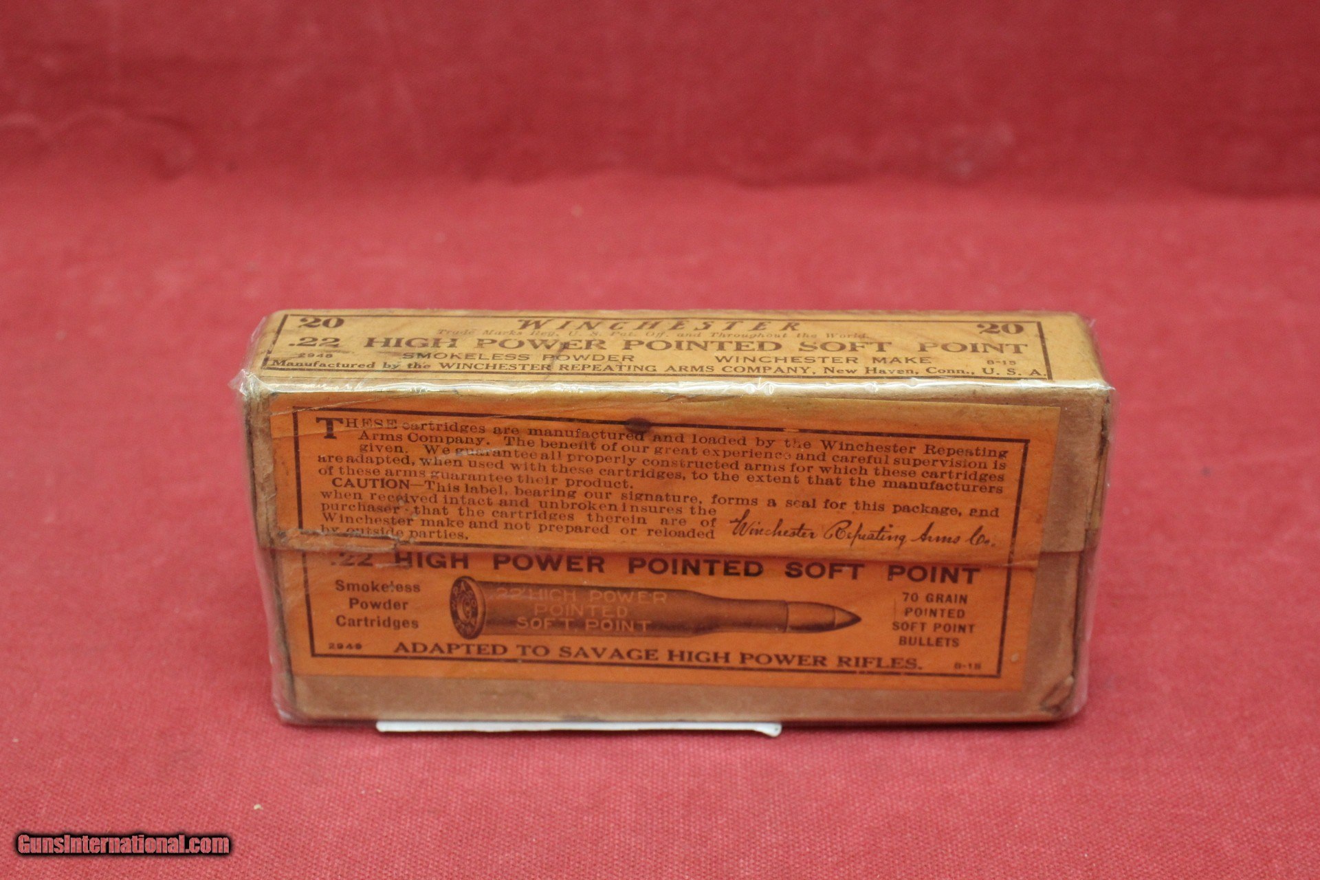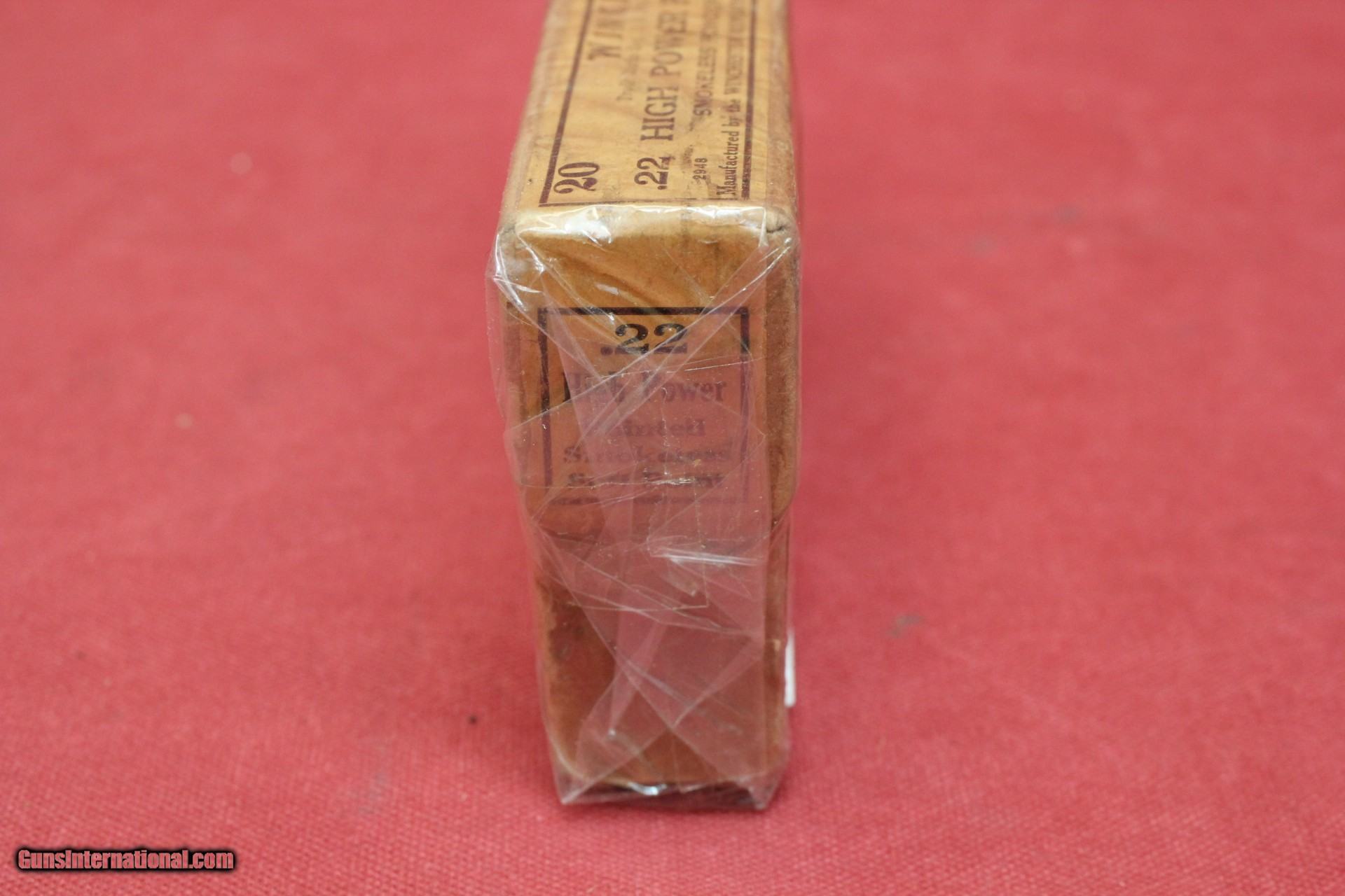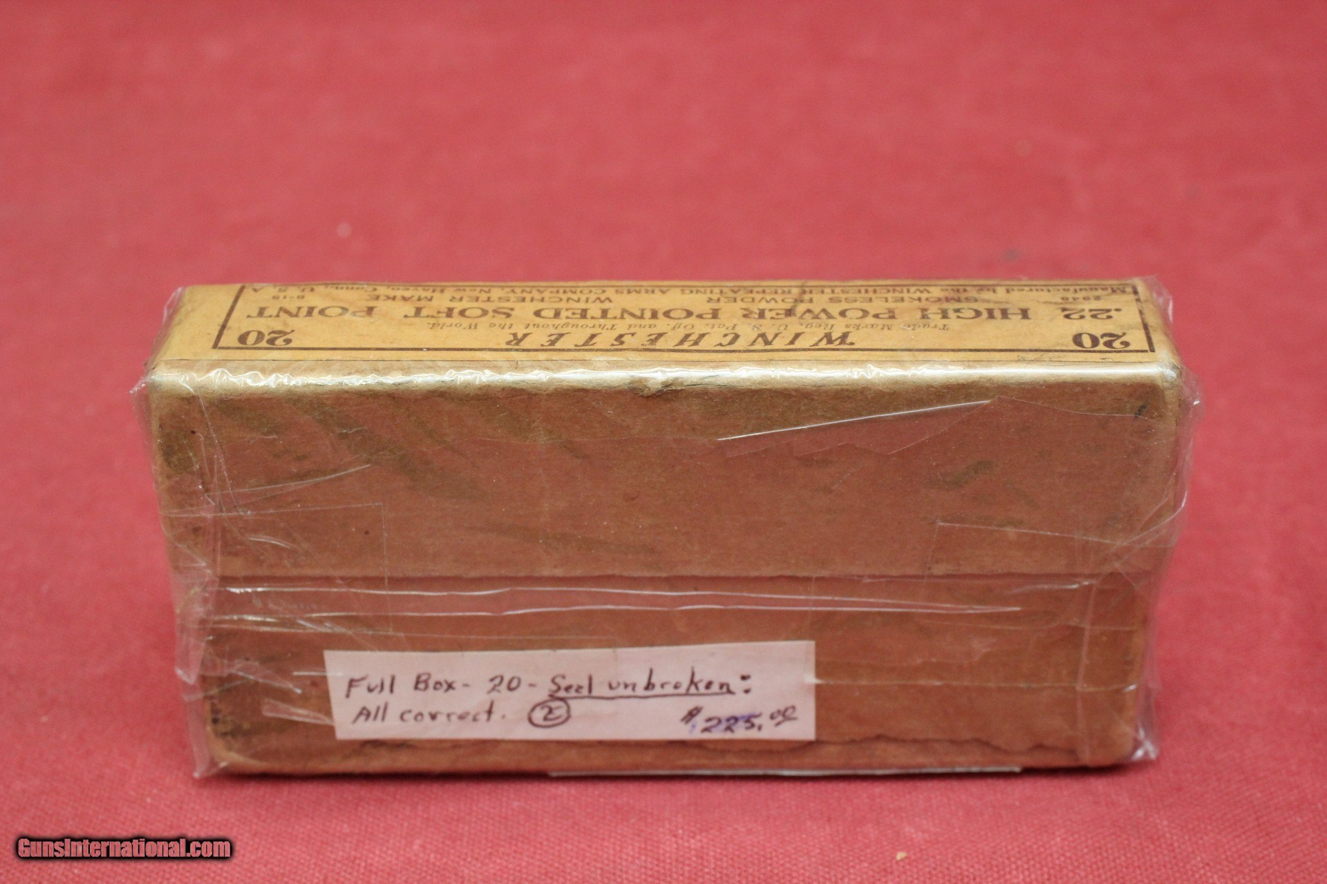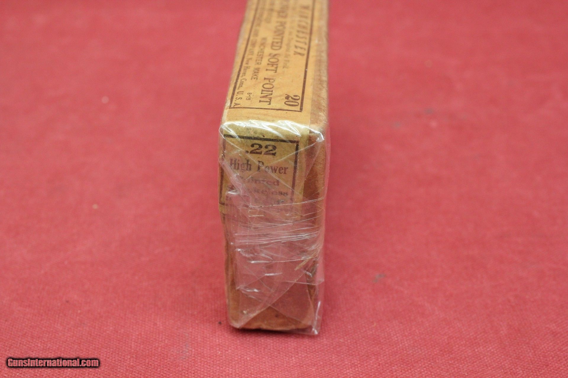 Description: Original box of Winchester .22 High Power 70gr Pointed Soft Point ammo. We received this sealed in plastic and have not opened it. Therefore, we cannot verify or guarantee the contents of the box. Box appears to be in poor to fair condition and feels hefty and evenly full. It is indicated that the original seal is not broken, but we cannot verify this. Sold as is - no returns or refunds. Please add $30 for shipping and insurance. SOLD |