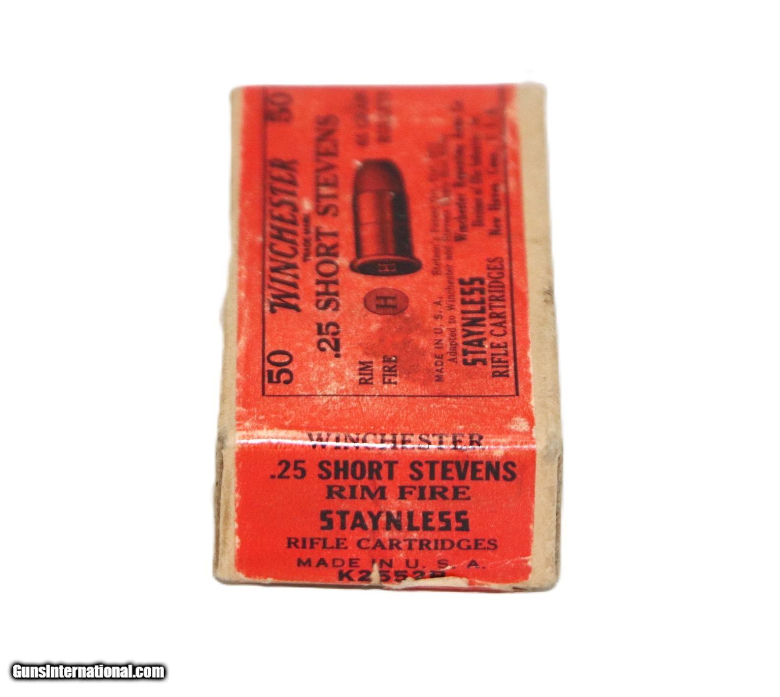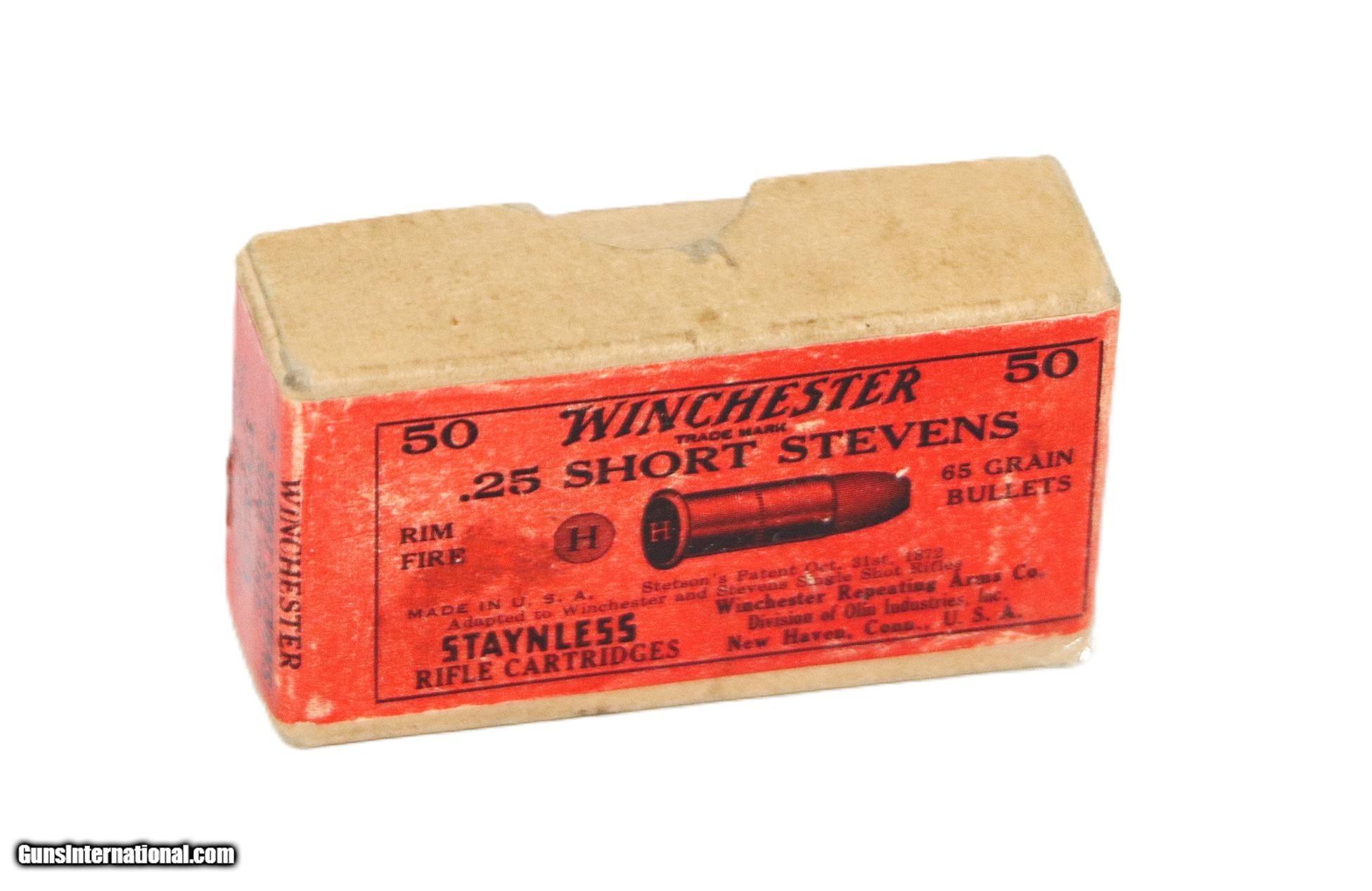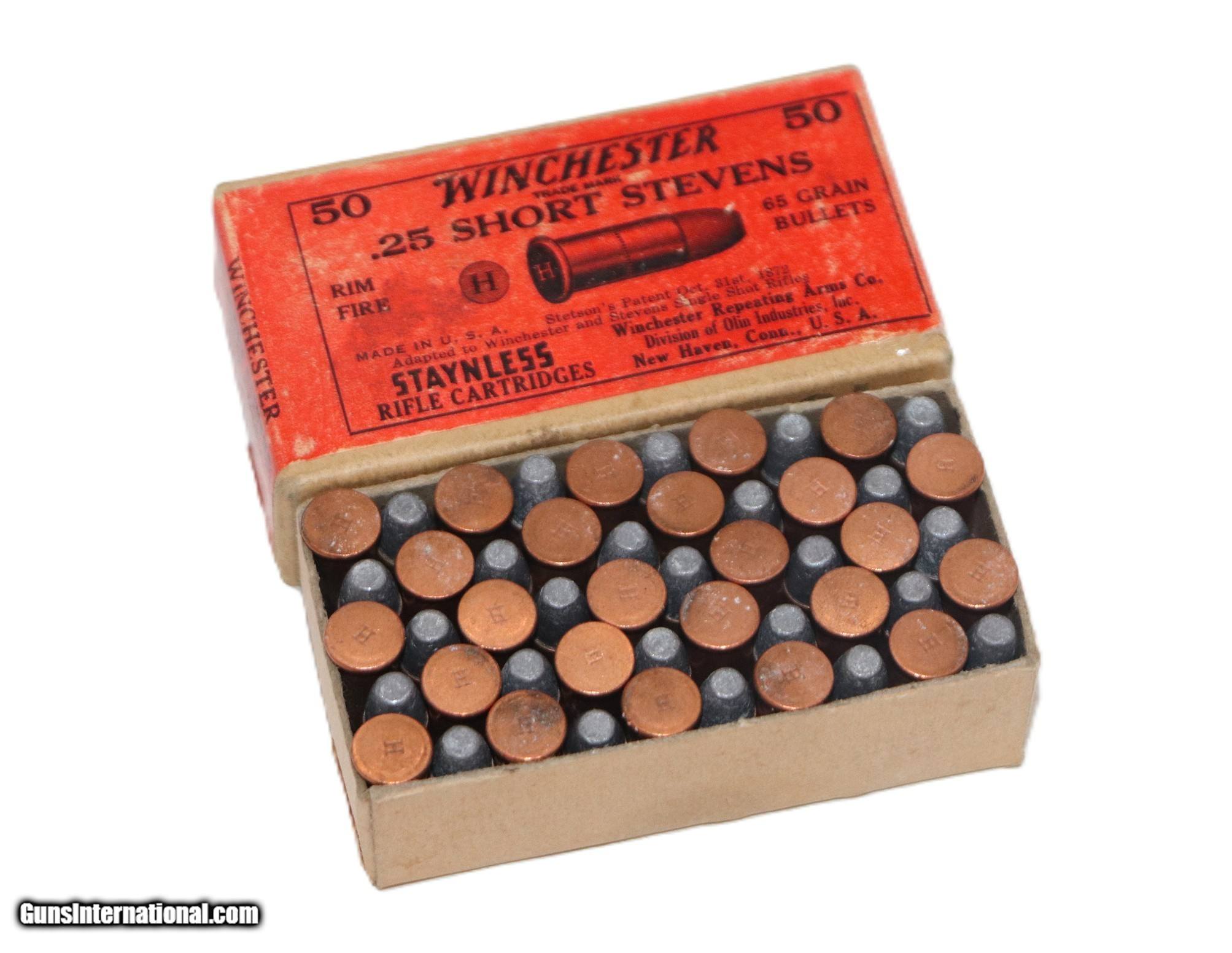 Description: Winchester, 25 Stevens, Short, Rimfire, Staynless, 65 Gr., 50 Exc Rounds SOLD Rifle Caliber: .25 Stevens |