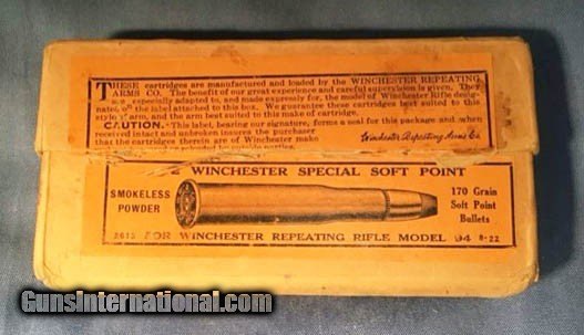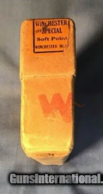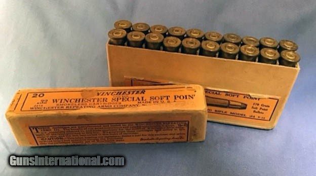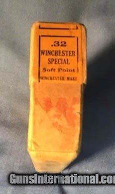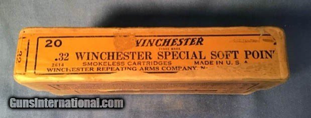 Description: PRICE REDUCED: This is a vintage box of Winchester .32 WS Soft Point ammo. The box has been opened but no cartridges have been removed. No splits to seams or corners. Excellent condition. Dated 8-1922. Feel free to ask any questions. Payment is by Postal Money Order (preferred) or bank cashier's check. SOLD Rifle Caliber: .32 Winchester Special |