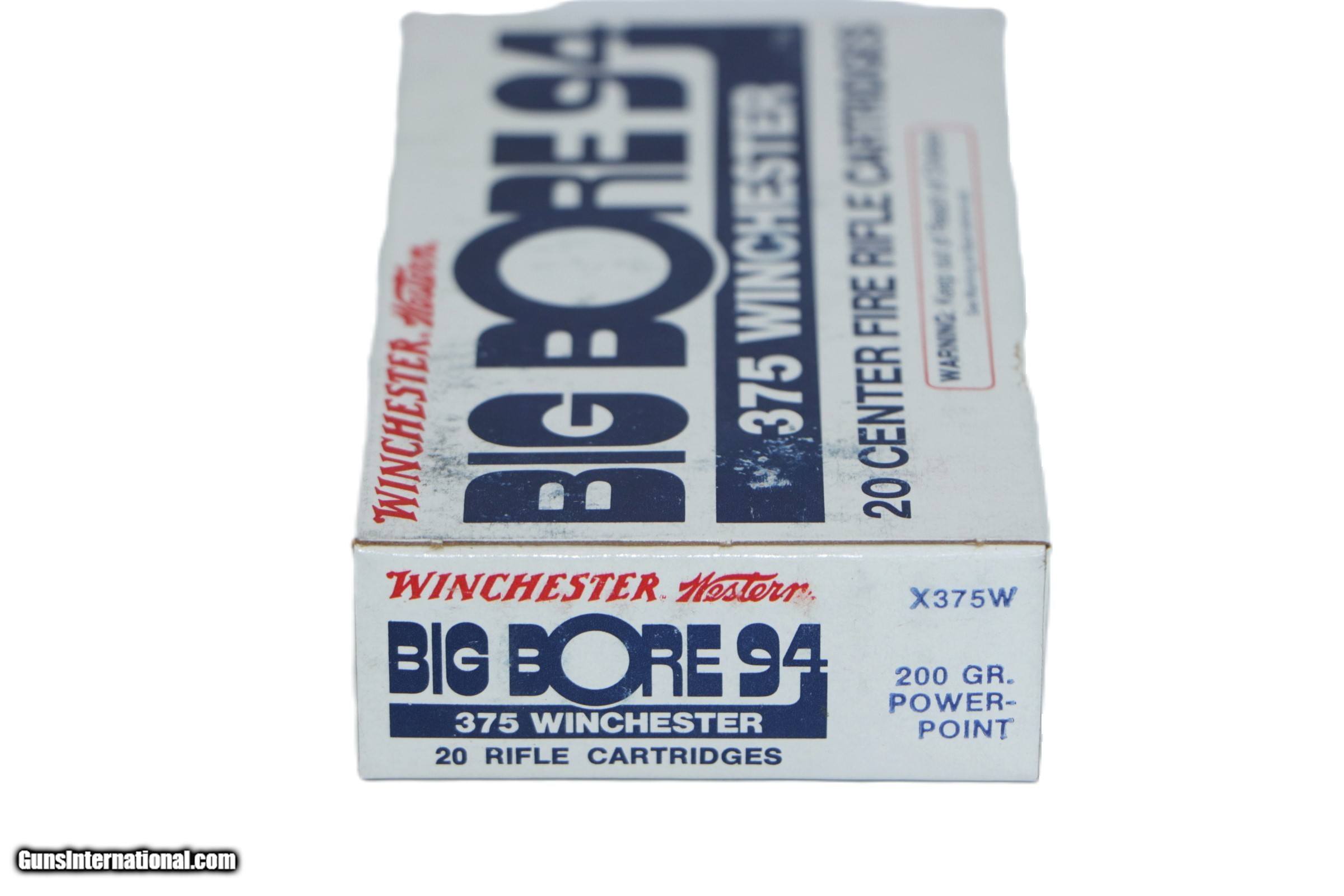 Description: Winchester, Big Bore 94, .375 Winchester, 200 Grain Power Point, X375W. Full Box with 20 mint factory Rounds. Box is Exc with a few scuffs and shelf wear. $16.50 S+H. 2 Available. Same shipping 1 or 2 boxes. SOLD Rifle Caliber: .375 Winchester |