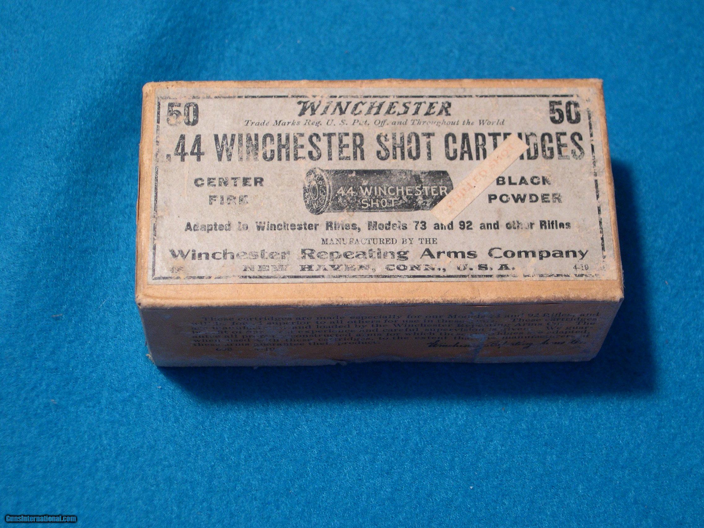 Description: Real nice box of chilled shot cartridges, no 7 1/2 shot, black powder, label stamped for models 73 & 92 and other rifles. never opened, real nice condition, as you can see. SOLD |