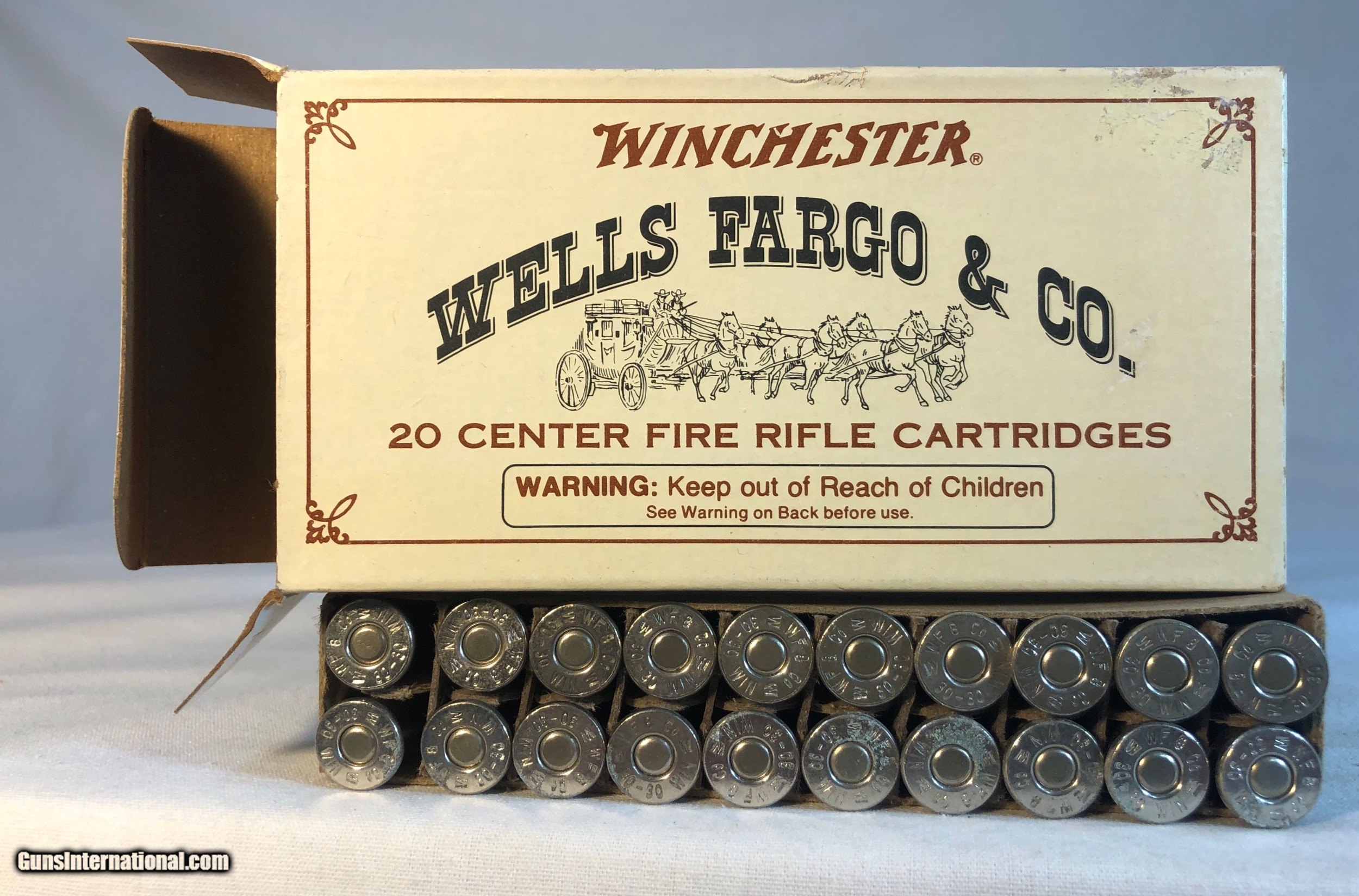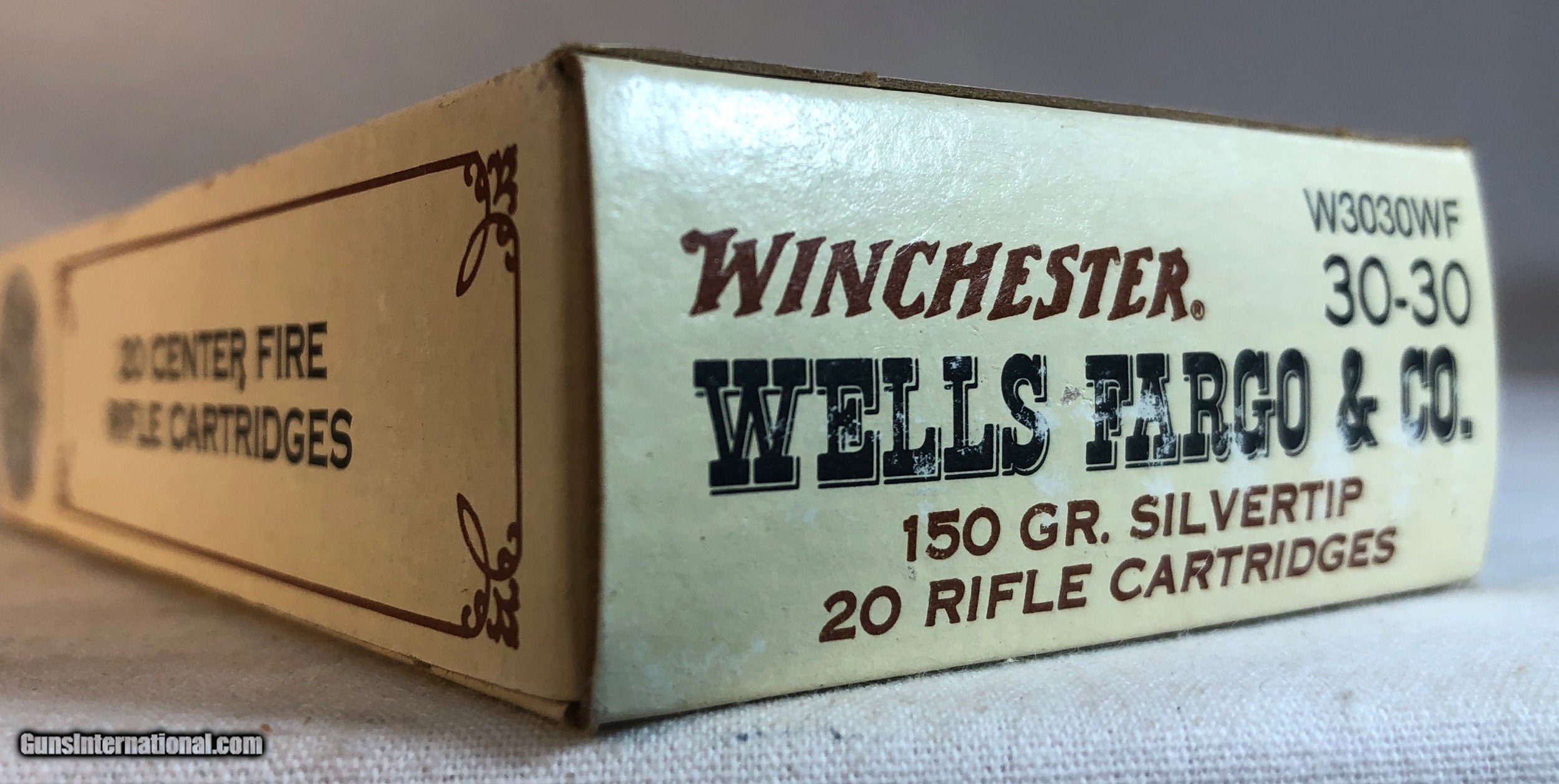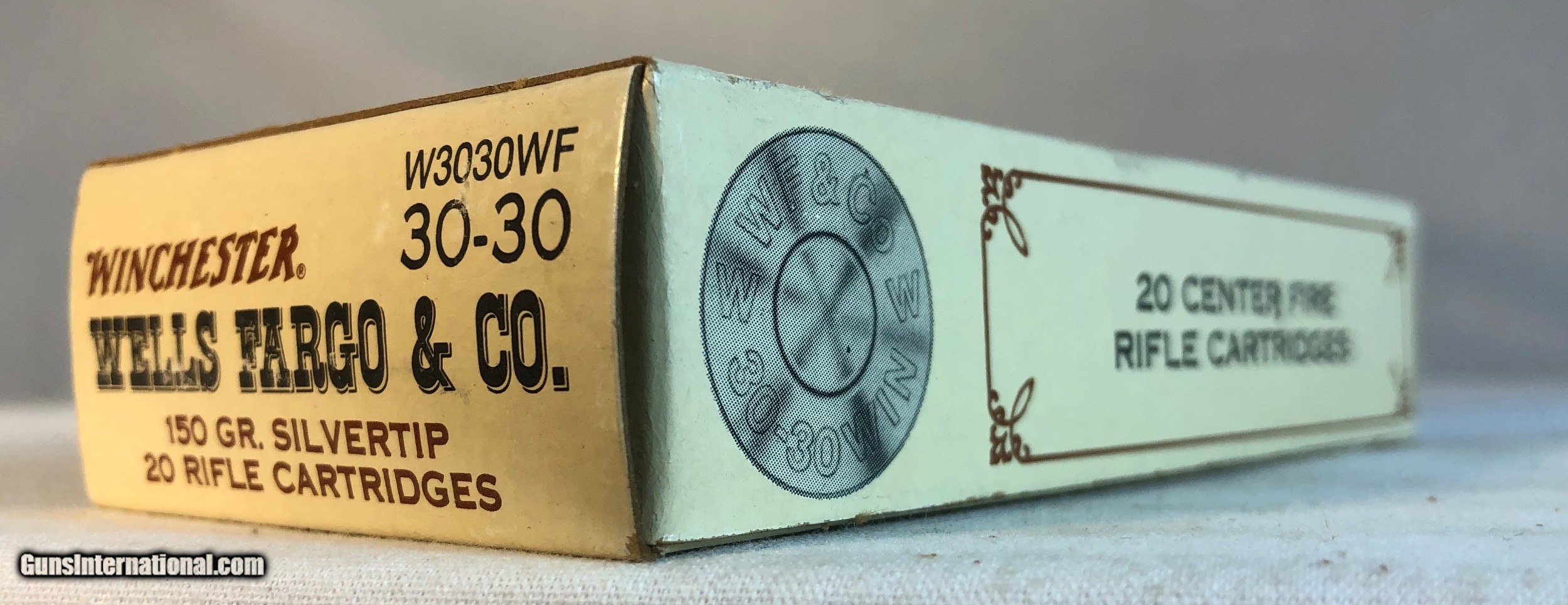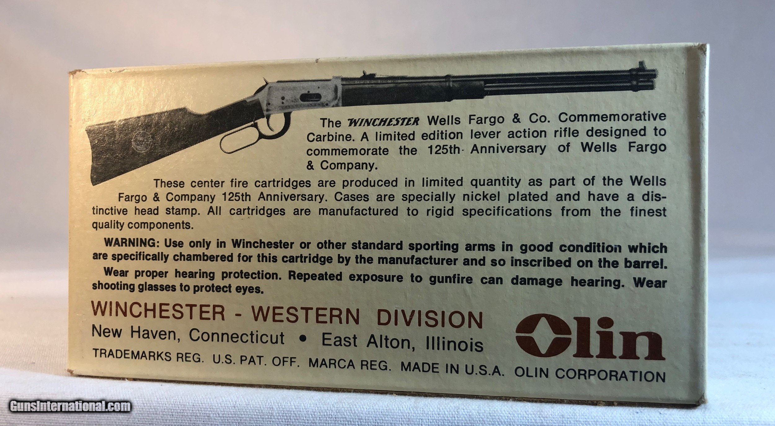 Description: Full box of Winchester Wells Fargo 30-30 commemorative ammunition. Box is in good condition with some wear. (See photos) Ground shipping and handling is extra to the lower 48 states. (Except no ship to CA and NJ) This ammunition is sold as a collectors item only and we make no quarantees to its quality or functionality. It is not recommended to fire as they came previously filled. Please know and abide by your local laws in regards to purchasing ammunition. Signature required upon delivery. We accept Master Card and Visa, personal check, or money order. SOLD |