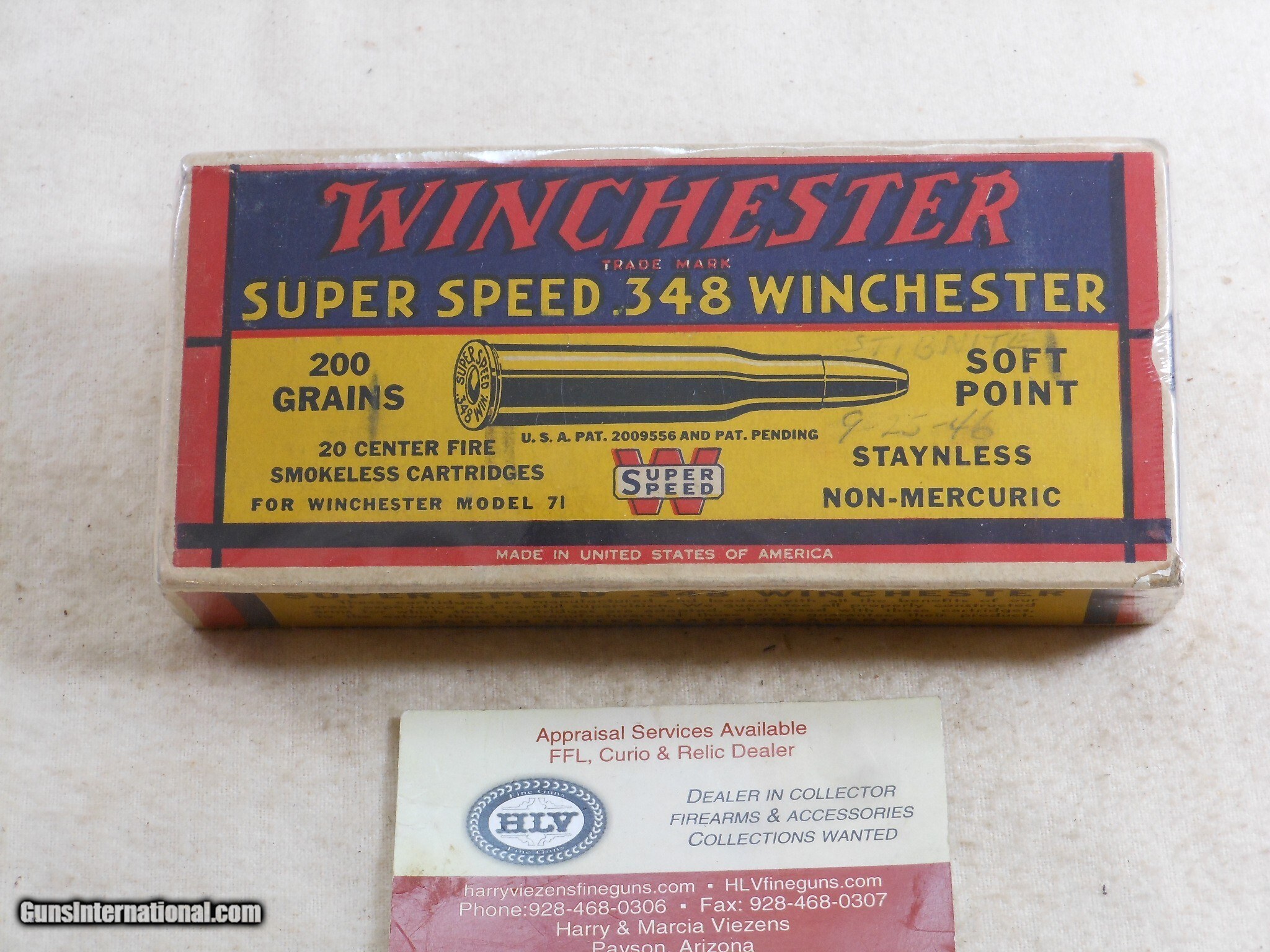 Winchester Early Box Of 348 W.C.F. Ammunition For The Winchester Model 71 Rifles