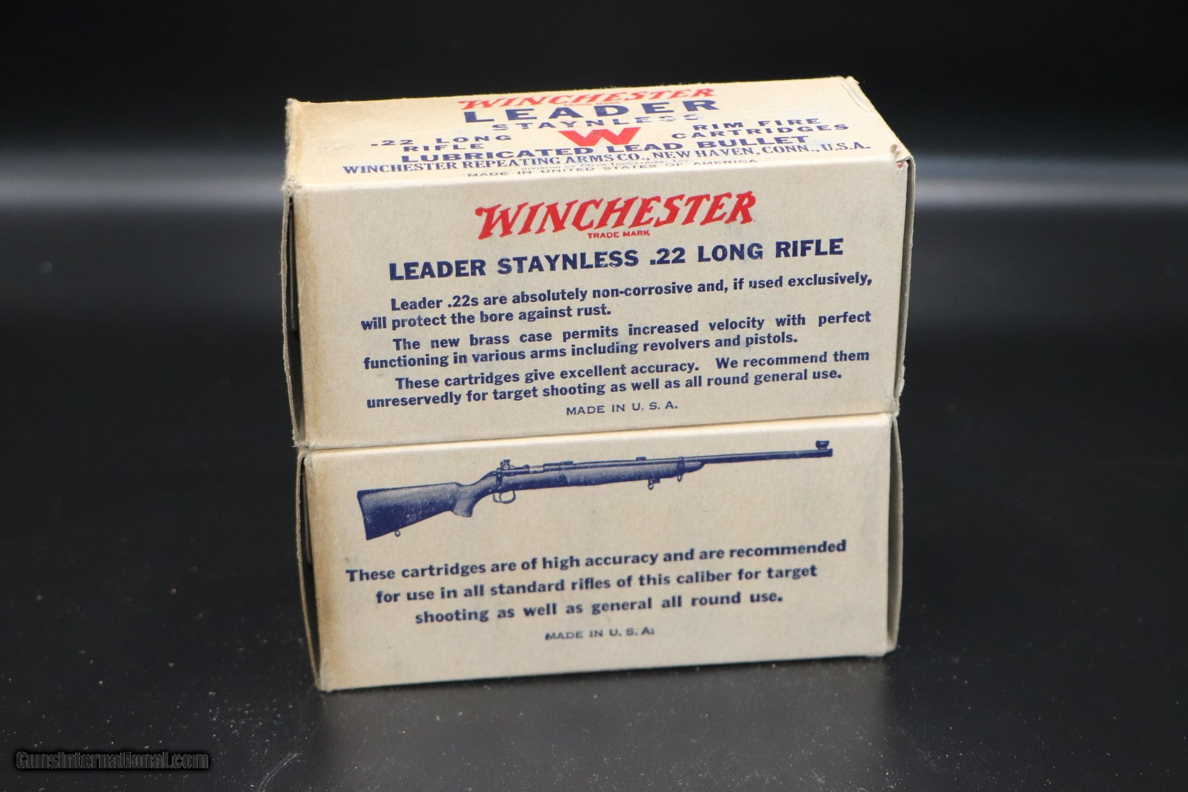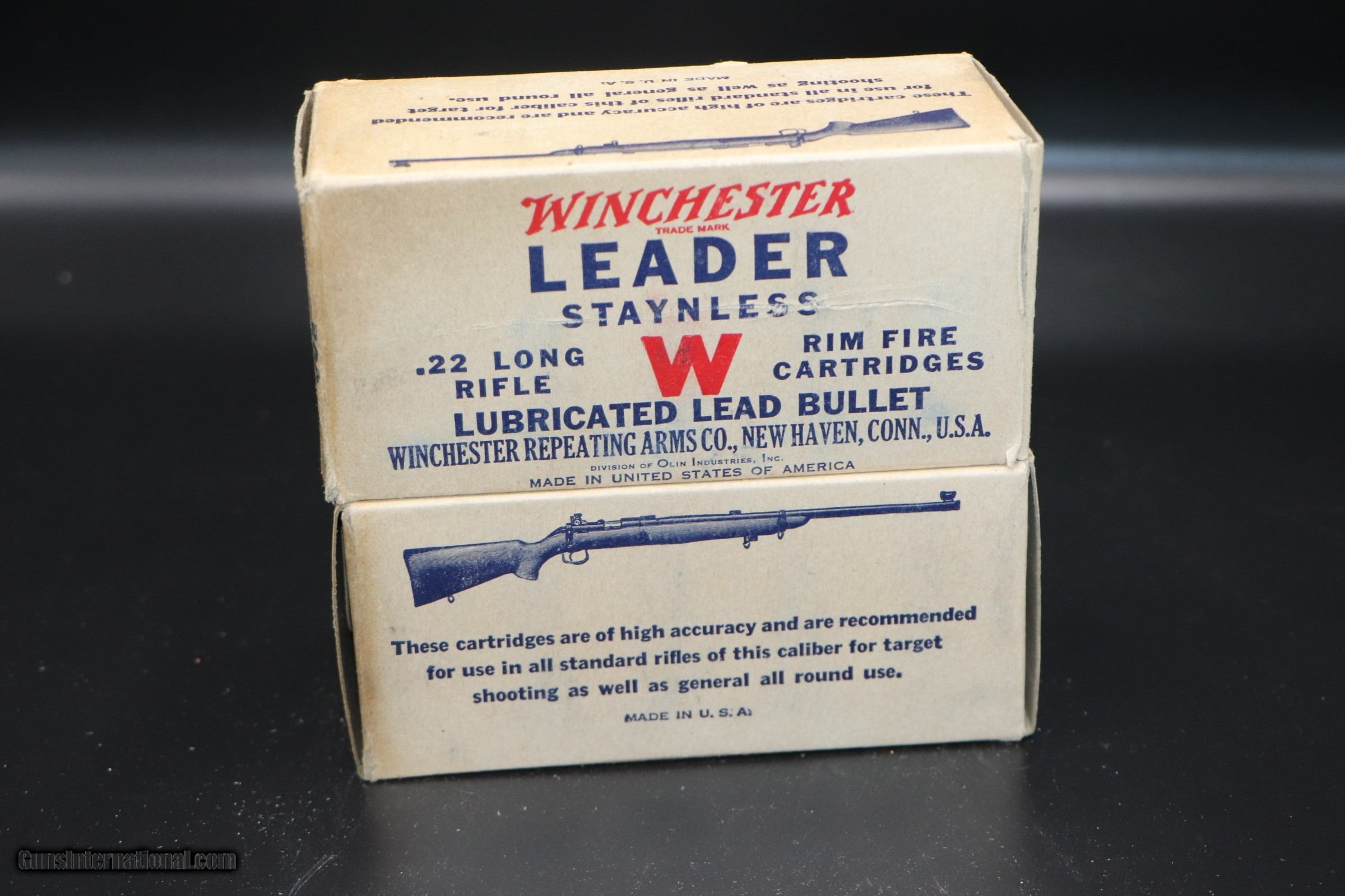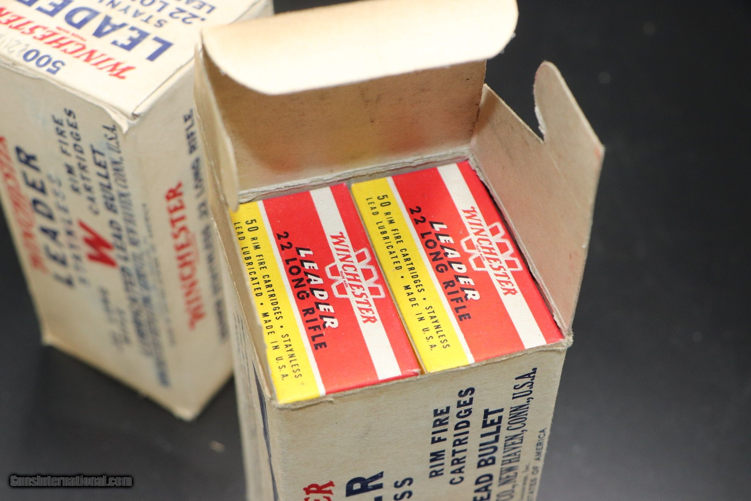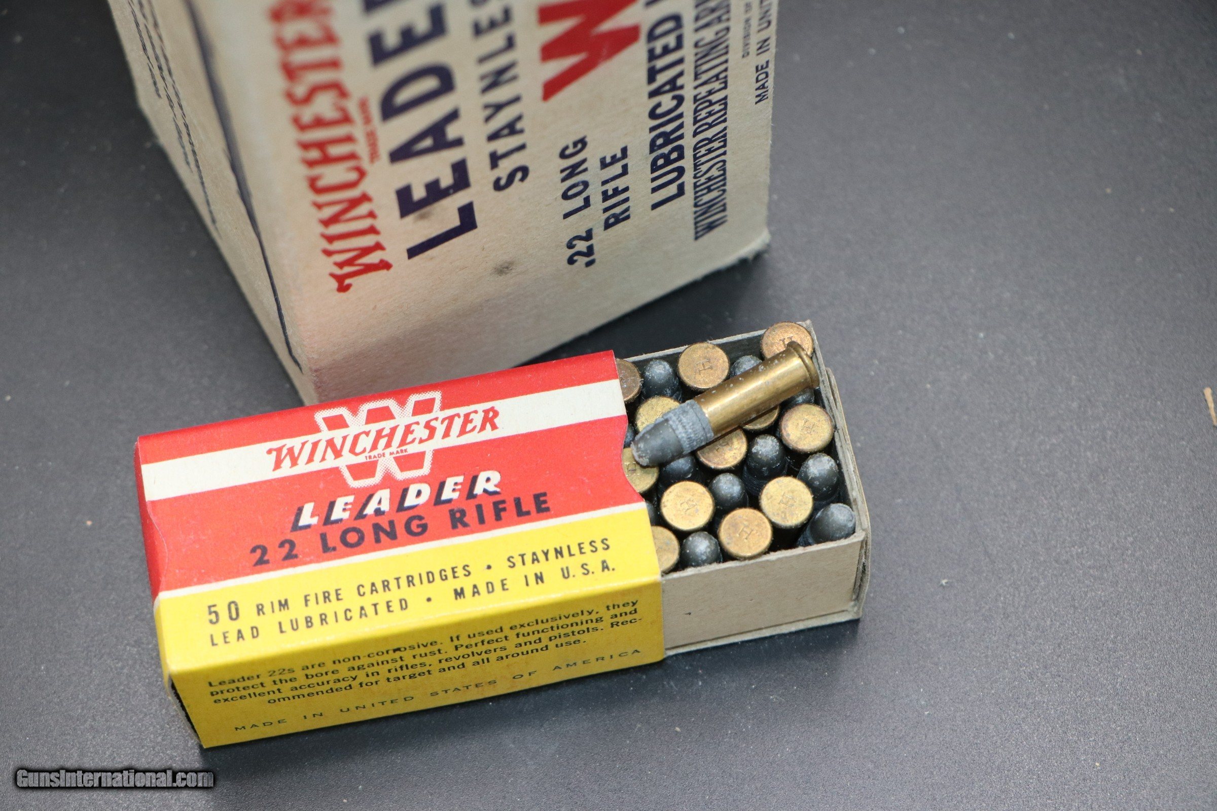 Description: 1946 Issue Winchester Leader Brick with 10 Red/Ylw boxes in Exc+ condition. Ammo VG-Exc. Brick Box is VG with Staining on LH outside flap. 16.50 S+H SOLD Rifle Caliber: .22 Long Rifle |