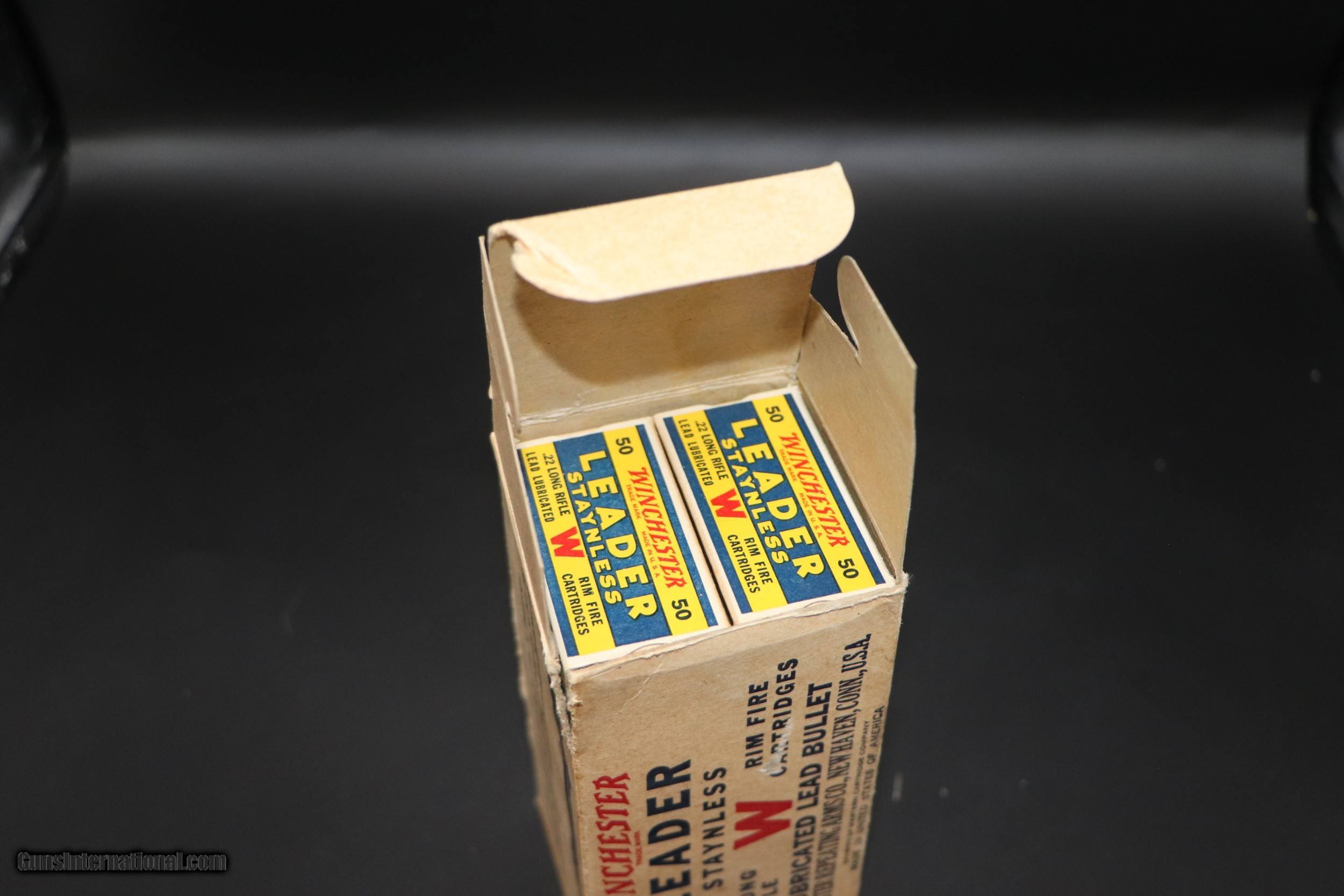 Description: Full Brick 500 Rounds. Brick box is solid in VG condition. Has 3/4" split on seam near top (see main photo) and some minor staining. 10 boxes of ammo and ammo are near mint. SOLD Rifle Caliber: .22 Long Rifle |