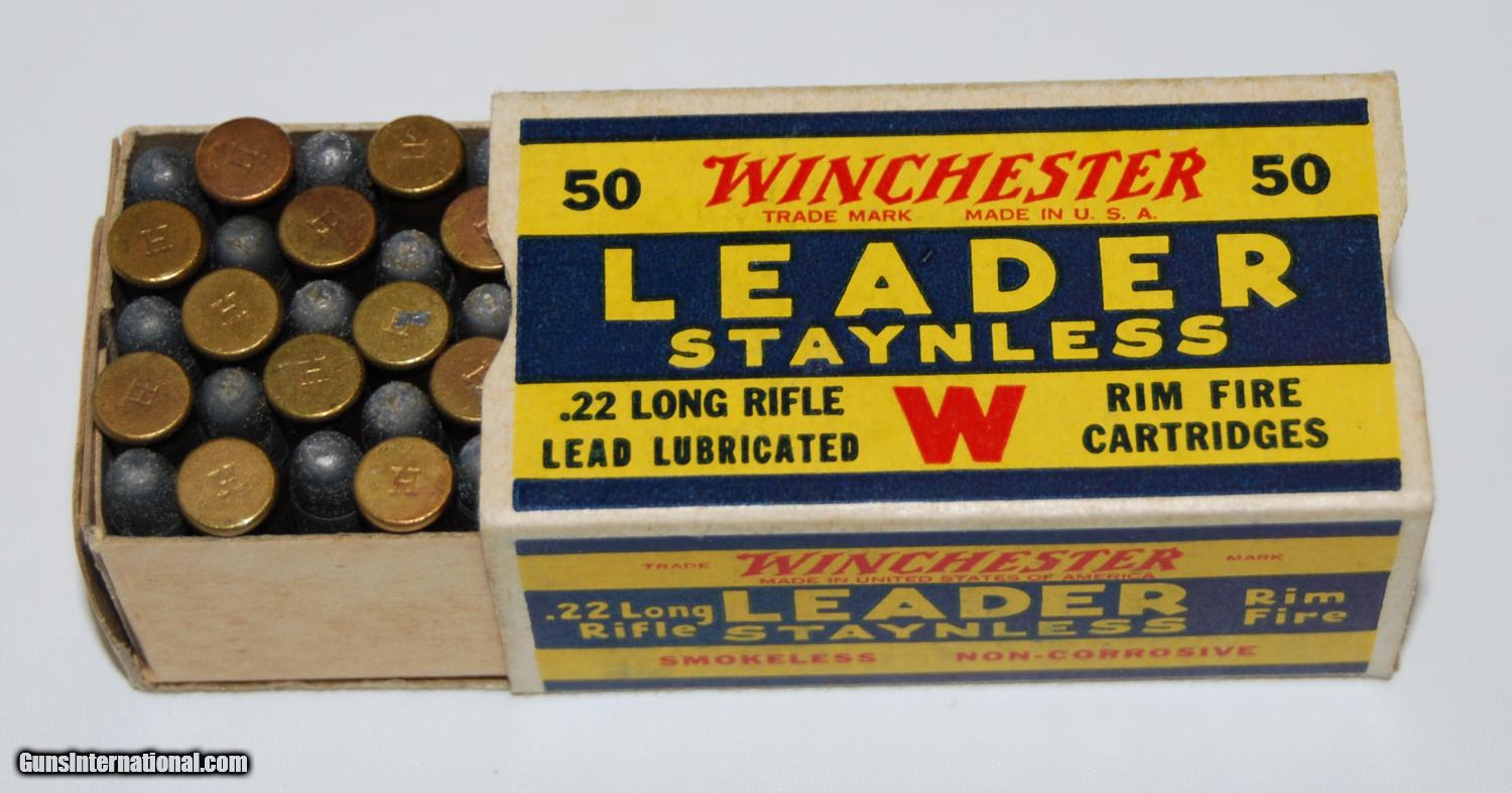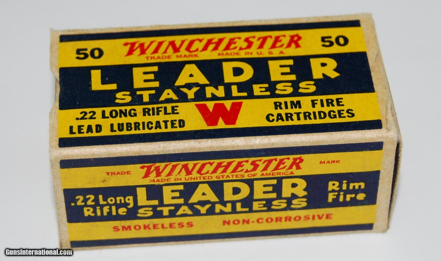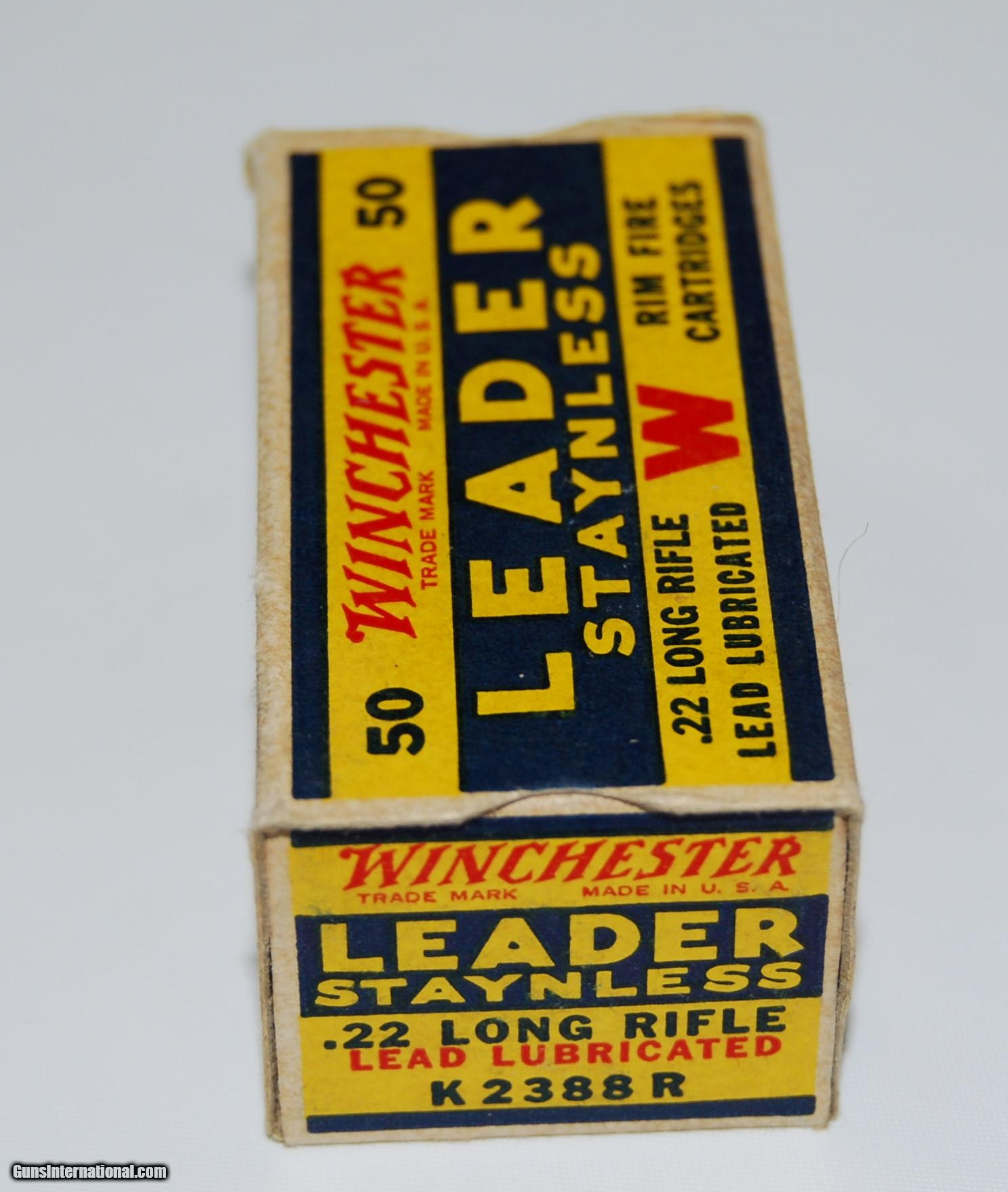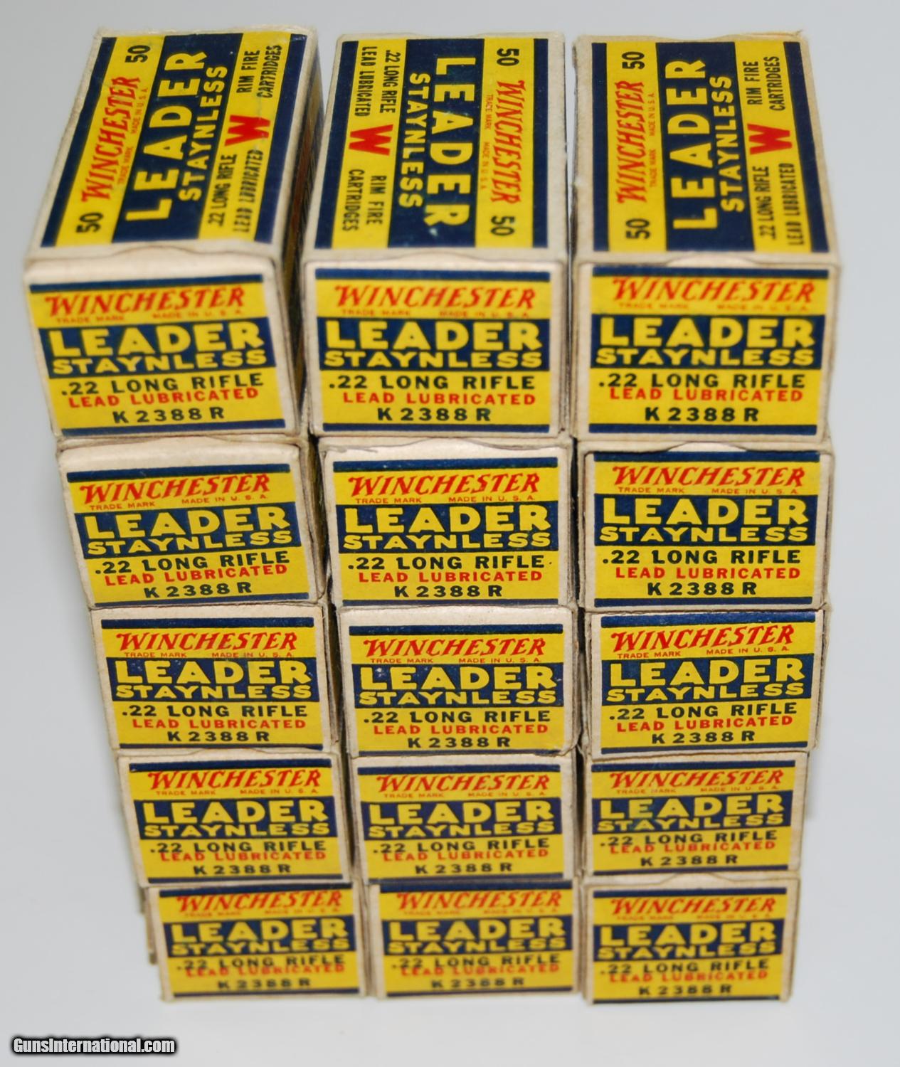 Description: Winchester Leader Staynless 22LR. 15 Boxes of 50. Boxes are in very nice shape. Ammo is also in nice shape. Number on box is K2388R. Yellow and blue box WITHOUT Child Warning. Shipping 10.00 SOLD |