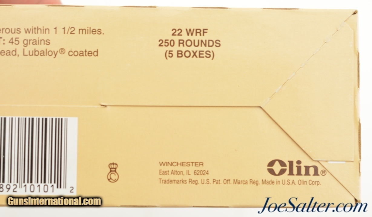 Description: This is a NOS box of Winchester Limited Edition 22 WRF Rimfire Ammunition, 45gr. lead, Lubaloy coated. The large box holds 5 boxes with 50 rounds in each.; SOLD |
