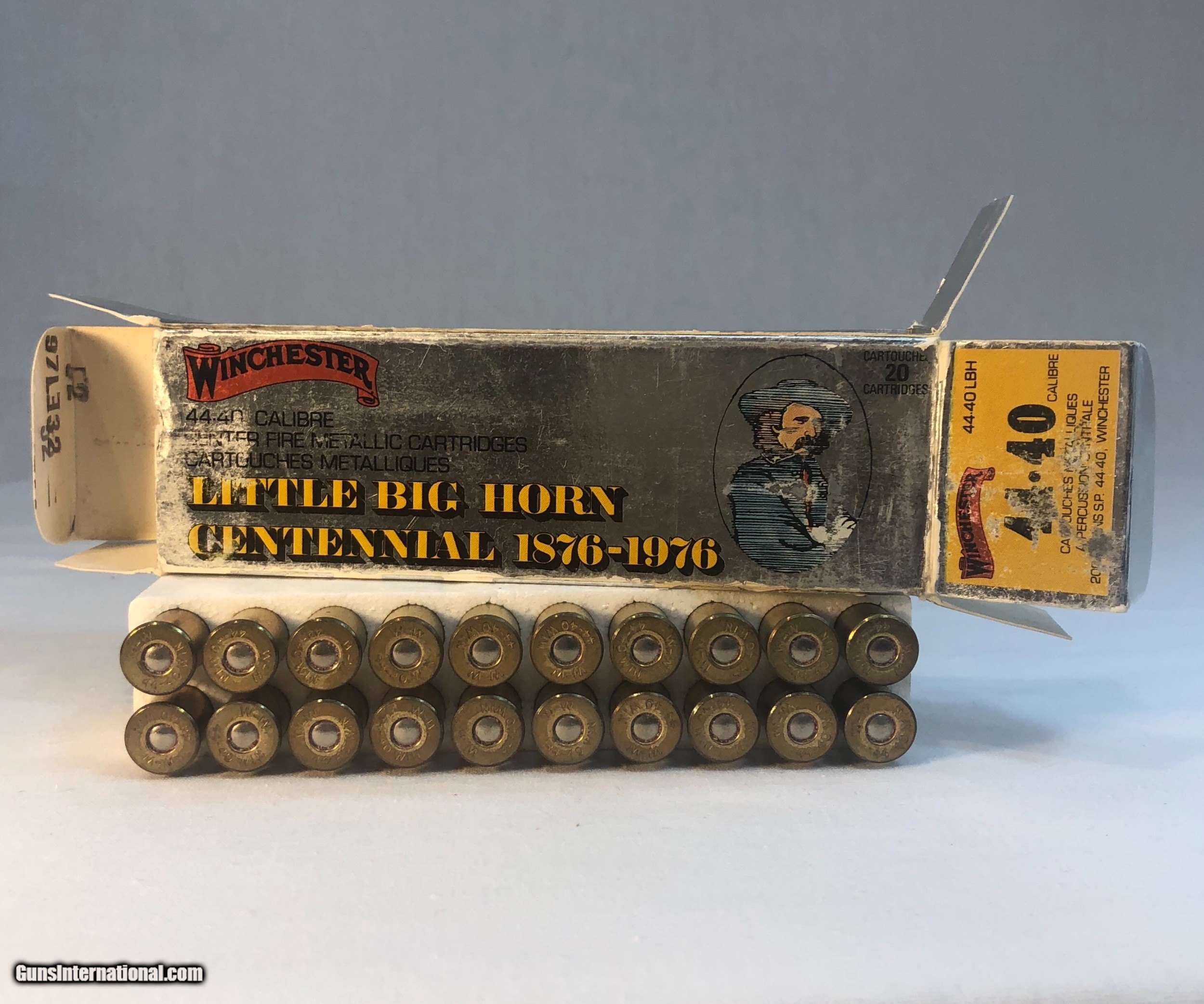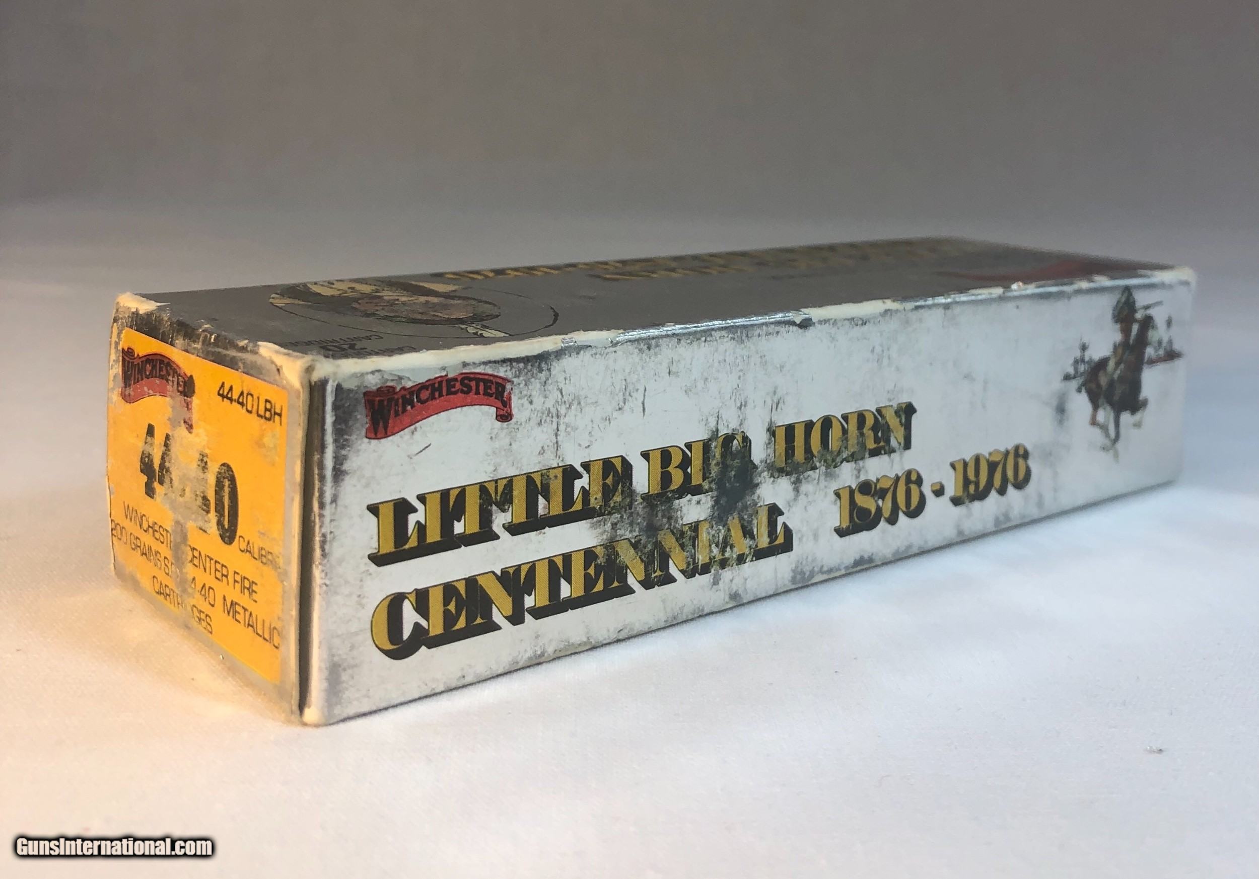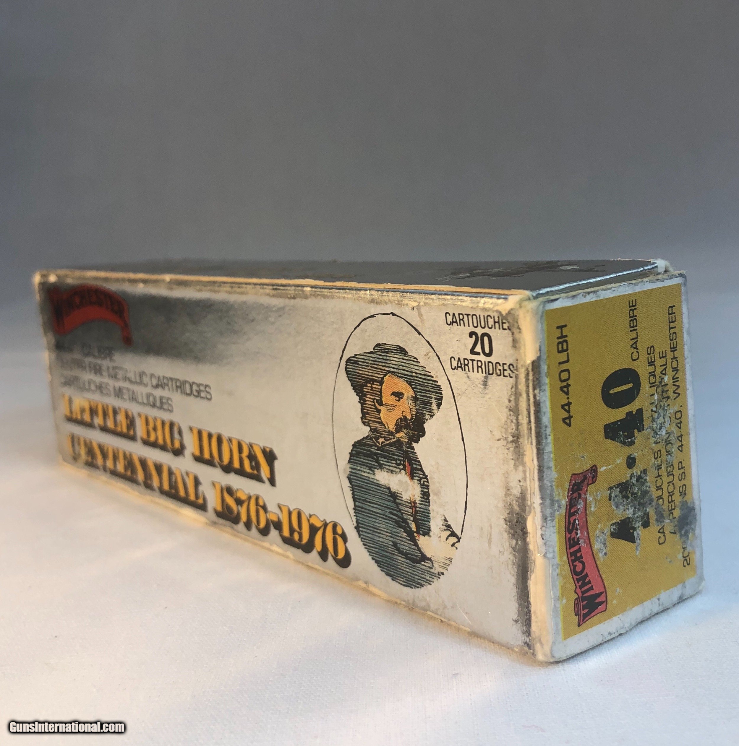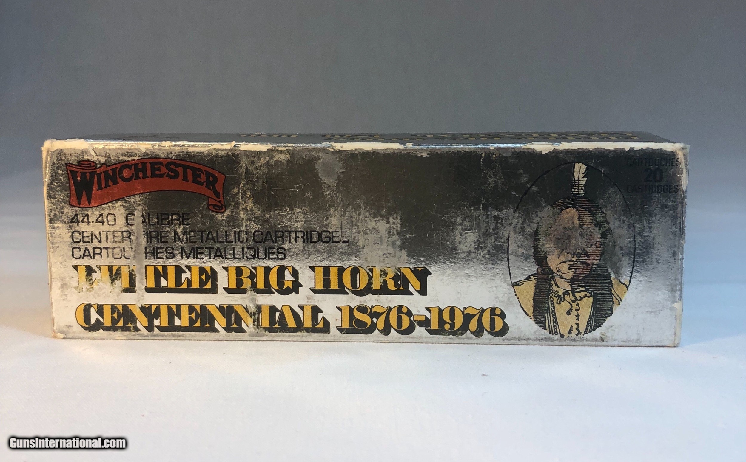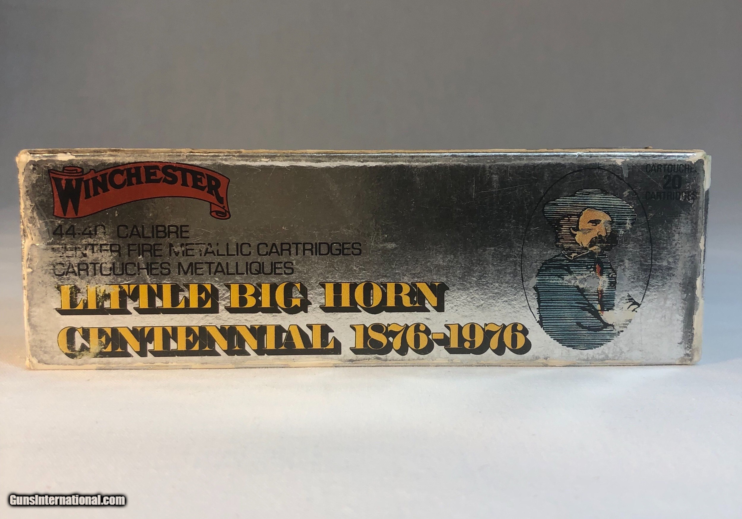 Description: Winchester Little Big Horn Centennial 1876-1976 44-40 caliberammunition. In original box (see pictures) -full box of 20 count - all cartridges stamped 'W-W, 44-40 WIN'. These are center fire metallic cartridges. Ships to lower 48 states only. This ammunition is being sold as a collectors item only and we make no guarantees as to its quality or functionality. Please know your state laws in regards to purchasing ammunition. There are areas with restricted delivery. SOLD |