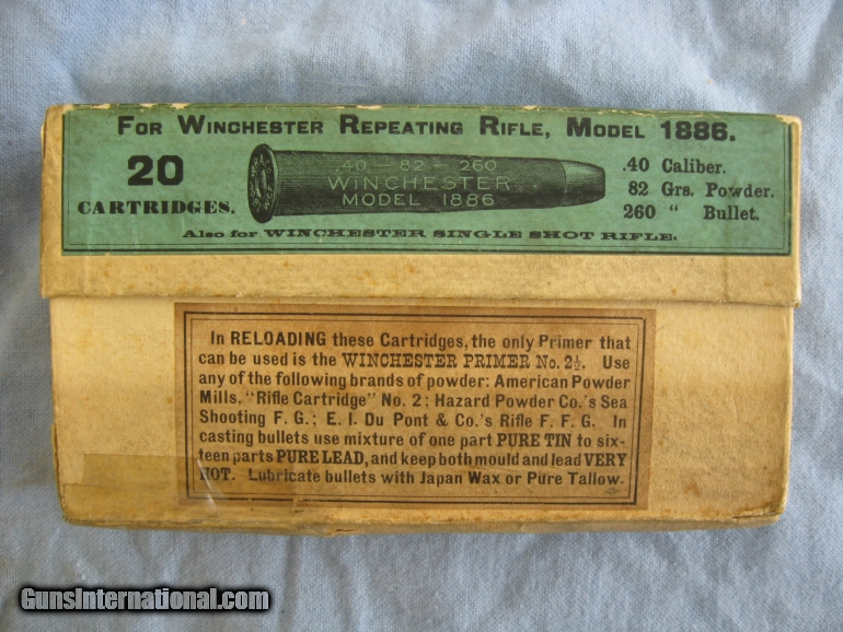 Winchester Model 1886, 20 Round Two Piece Box, 40-82 Rifle Cartridges, All There