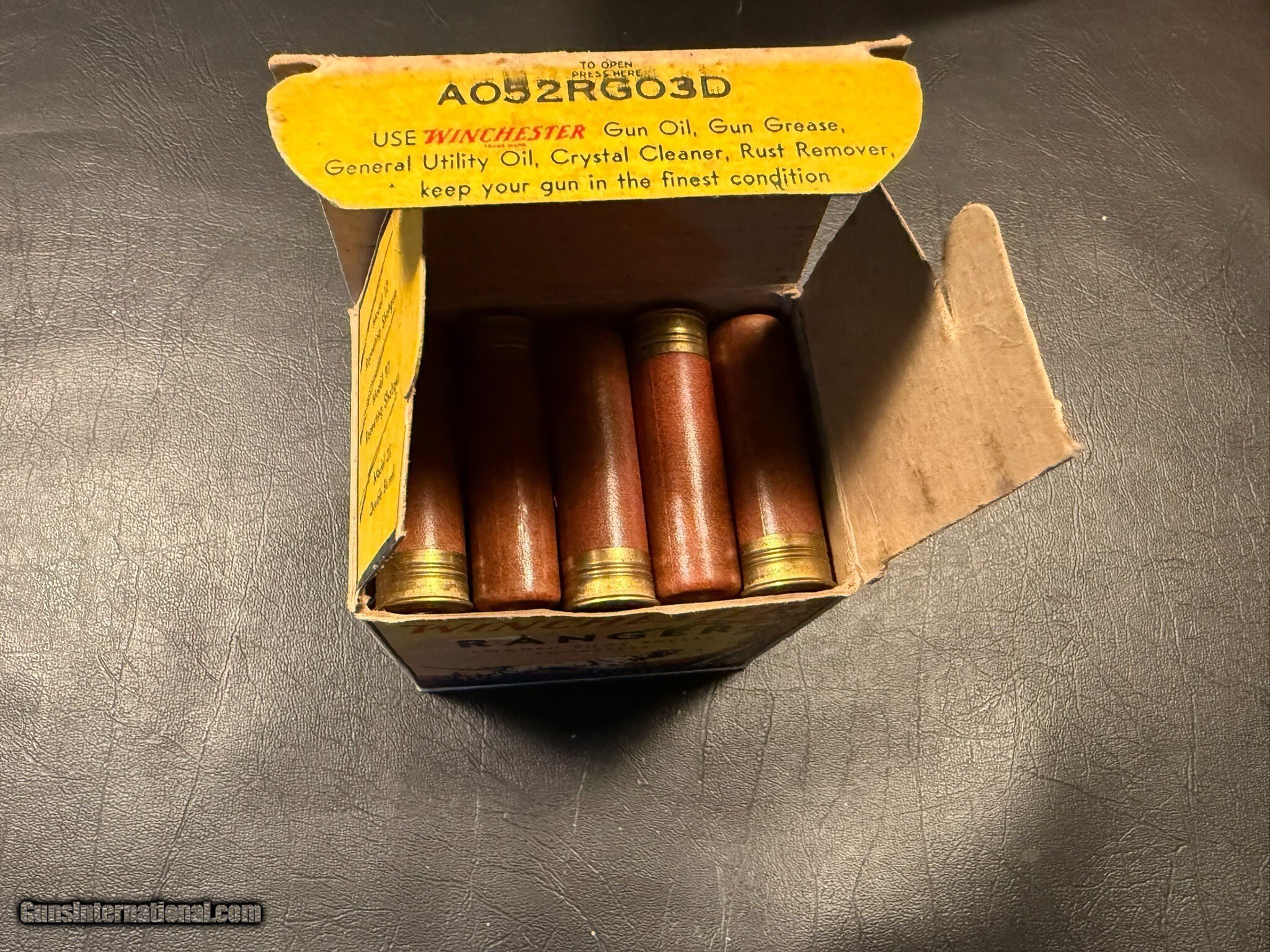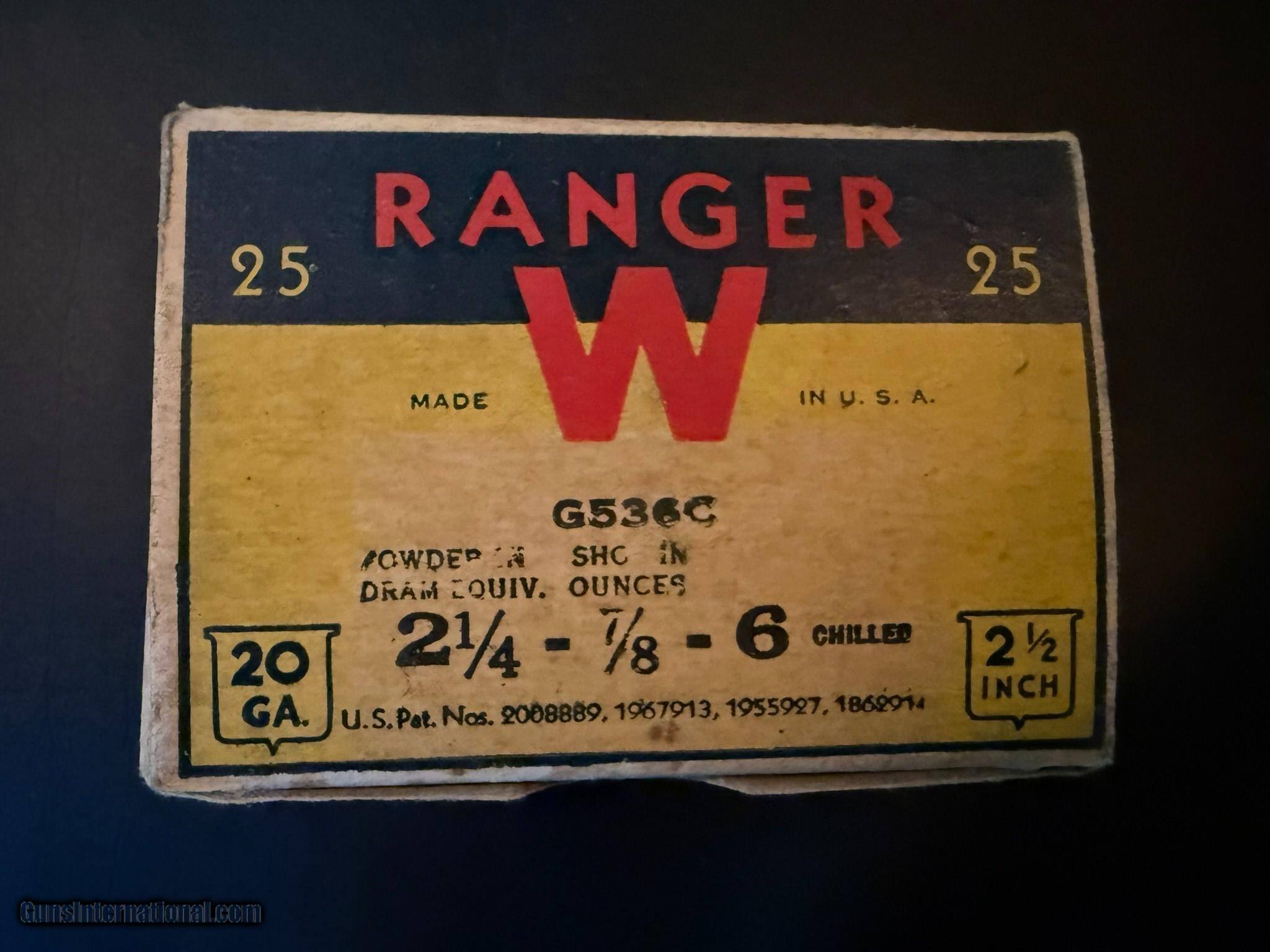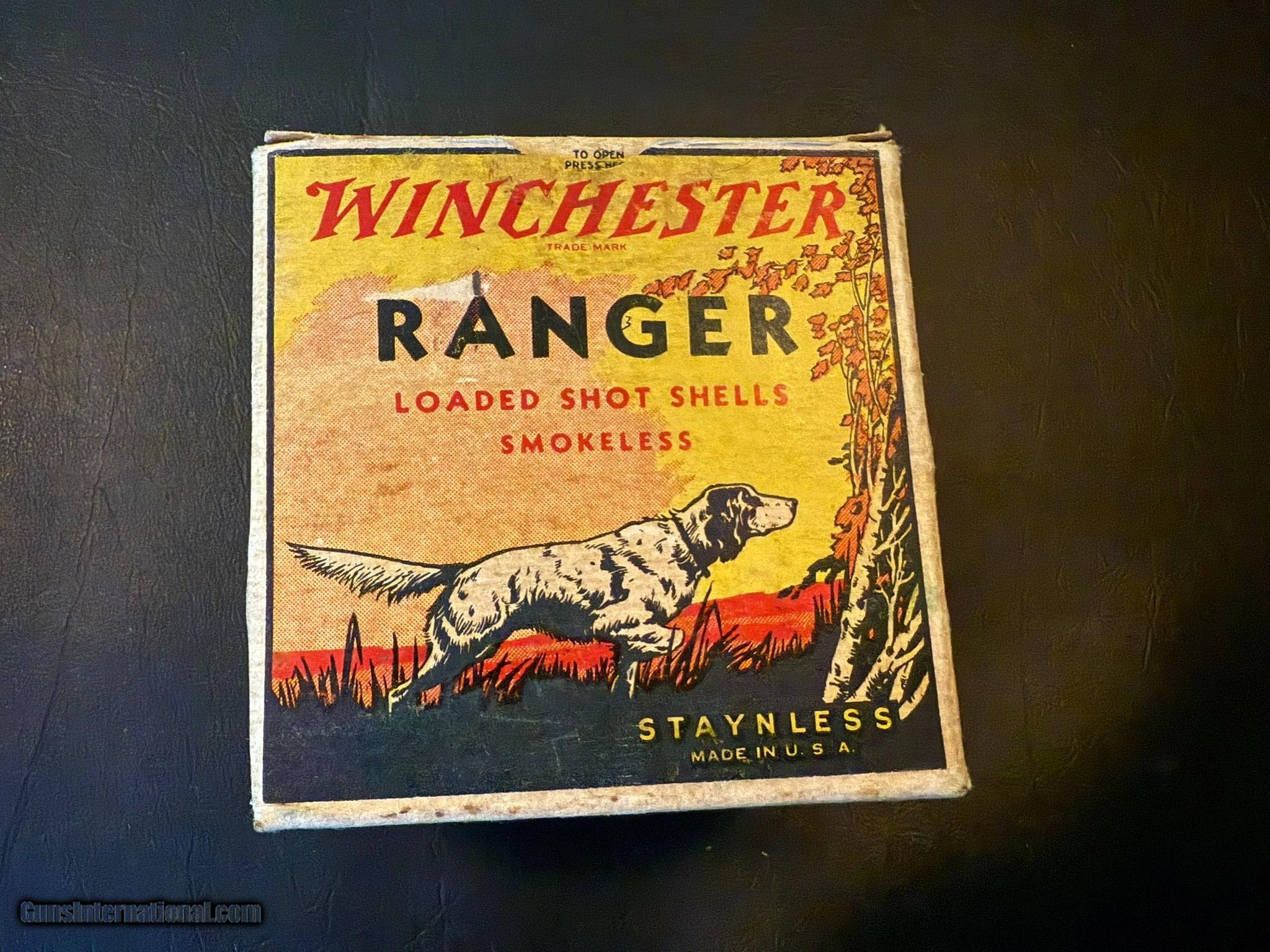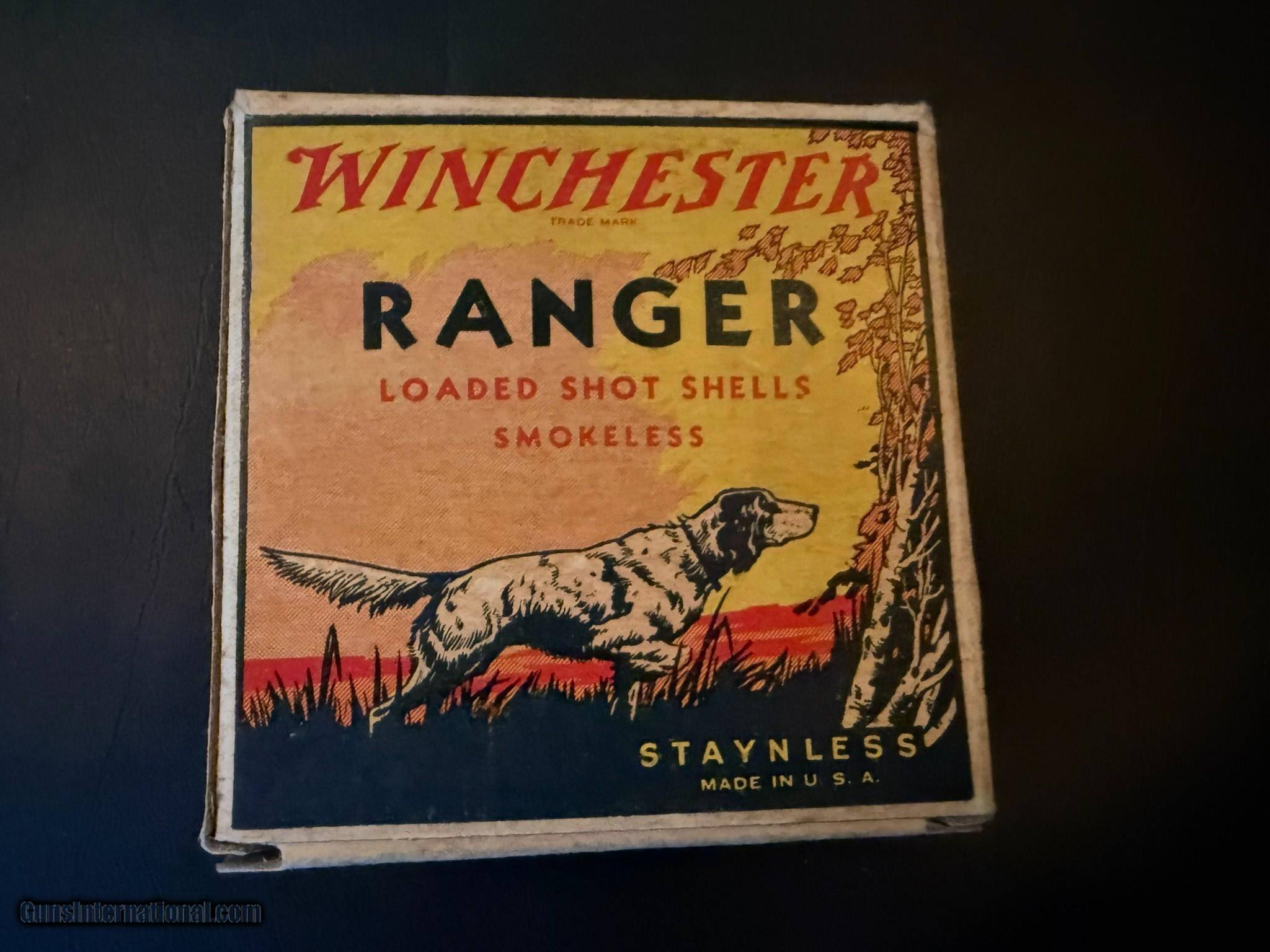 Description: Nice box Winchester Ranger Load Shot Shells - 6. Box had hardly been opened on the flaps. Nice condition full box Dog on Point. SOLD Shotgun Gauge: 20 Gauge |
