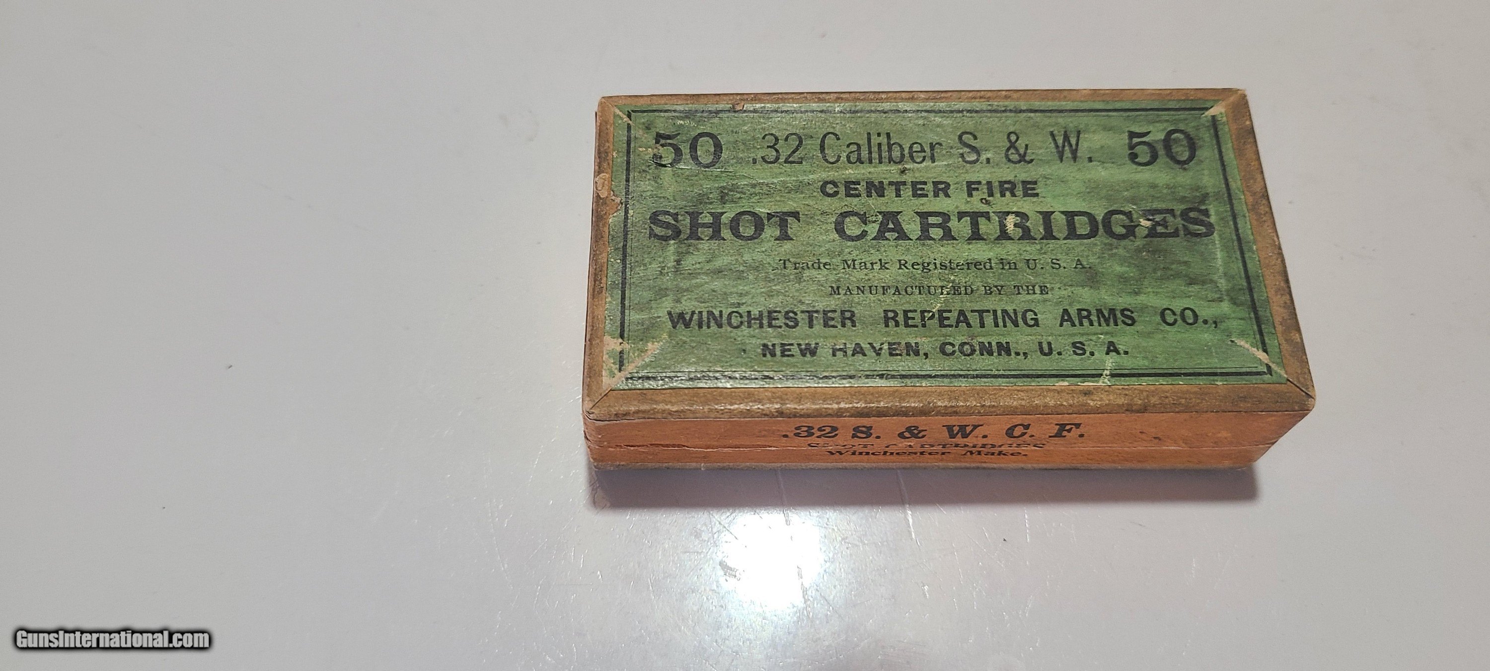 Description: Winchester Shot cartridge full sealed box .32 caliber S&W. add 20.00 for ground shipping SOLD Handgun Caliber: .32 S&W |