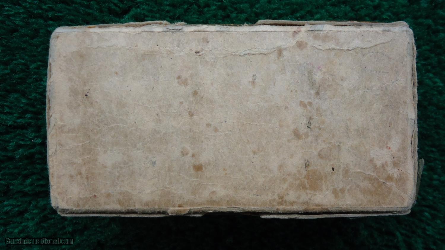 Description: Manufactured by the Winchester Repeating Arms Co., this full, complete box bears the very collectable “Cartridge Picture” green label, which features an image of the cartridge with the legend “COLT .44” superimposed on the cartridge. The interior cartridge box is solid and holds all 50 rounds of the original cartridges, and all have the proper headstamp. Full boxes of the desirable .44 Colt caliber revolver cartridges. Introduced as a US Army cartridge in 1871 with the Colt Richards Conversion revolvers, the .44 Colt proved to be a durable cartridge through the late 1800’s and commercial loadings were still offered in the early 1900’s before it finally was declared obsolete. Leroy Merz Antique Firearms specializes in antique and vintage Winchesters and other fine American firearms. Since 1965 Mr. Merz has taken part in the world of firearms and has been a contributor to many well known reference books. Just recently we mailed the 126th edition of our privately-published catalog. We have hundreds of additional guns in every price range at our home online. Search for Merz Antiques in google. SOLD |