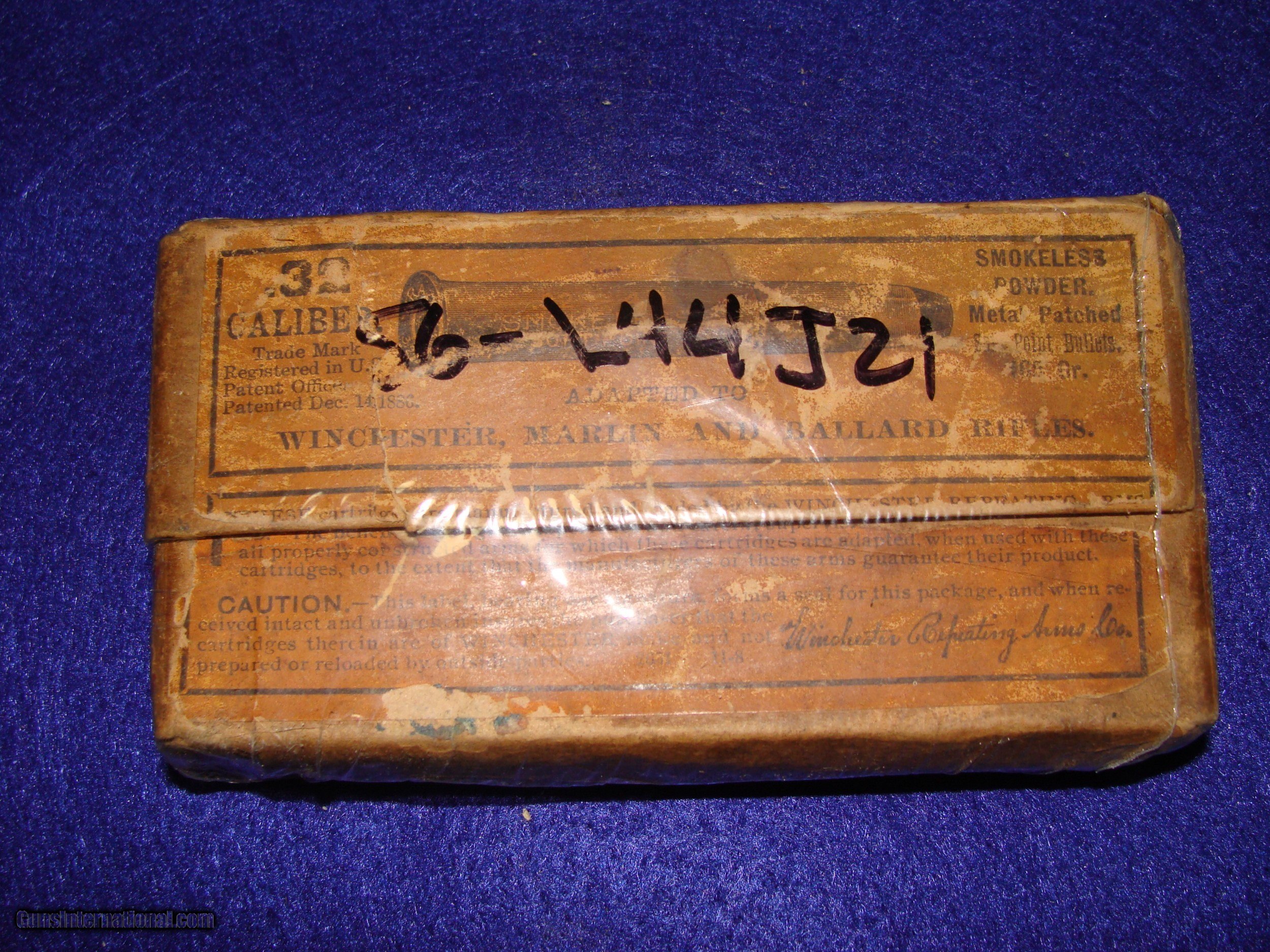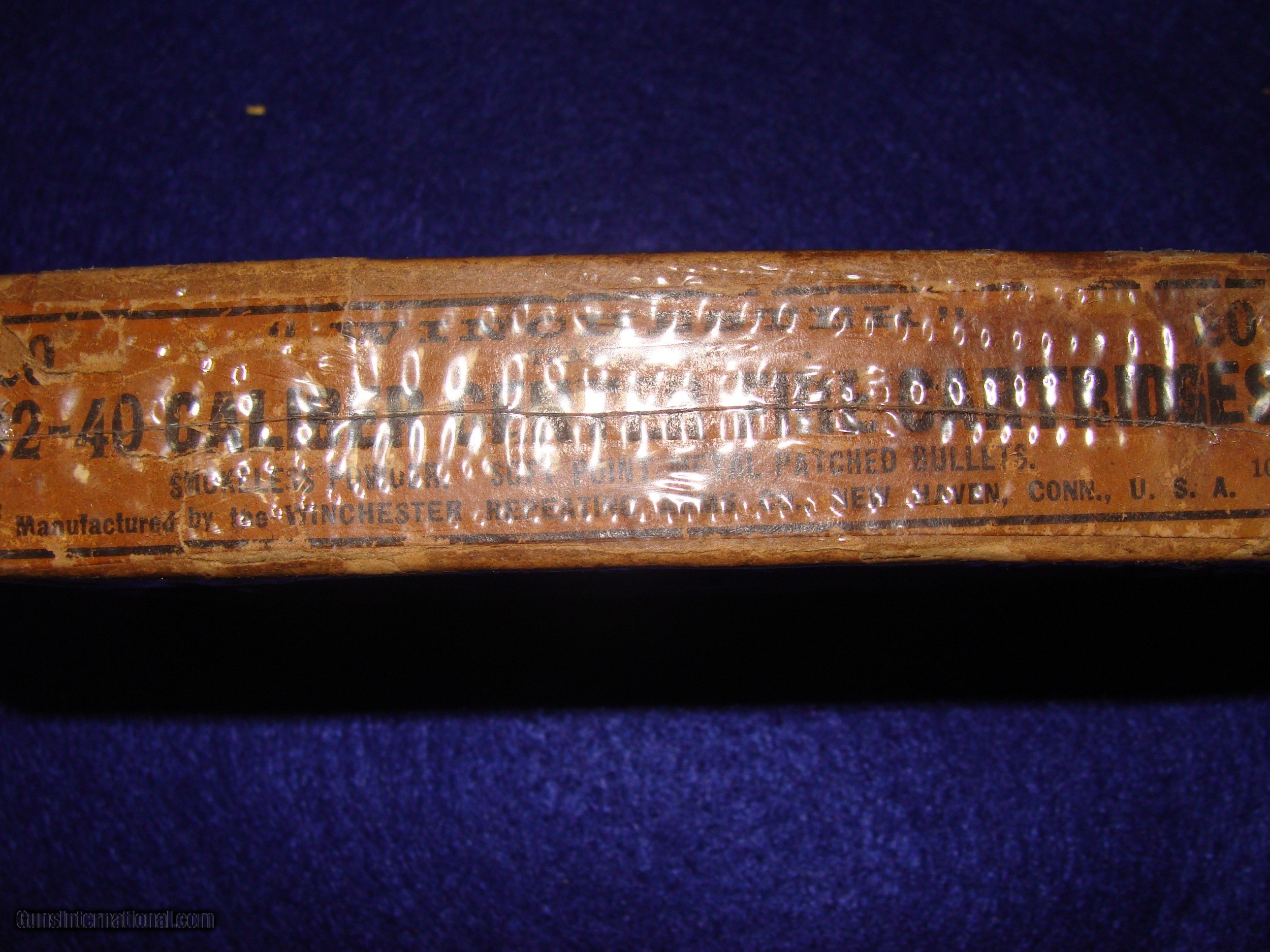 Description: Collector 20 rnd. box of pat. date 1886 Winchester Repeating Arms 32-40 ammo in good condition SOLD |
