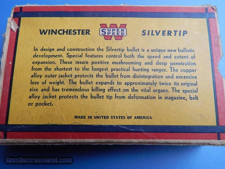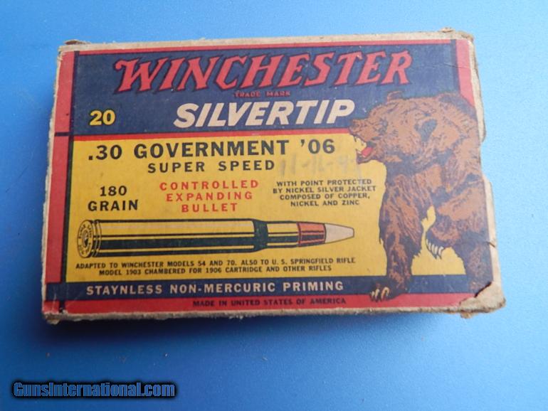 Description: Old box of Winchester Silvertip 30-06 mising 4 rounds and both end flaps SOLD |