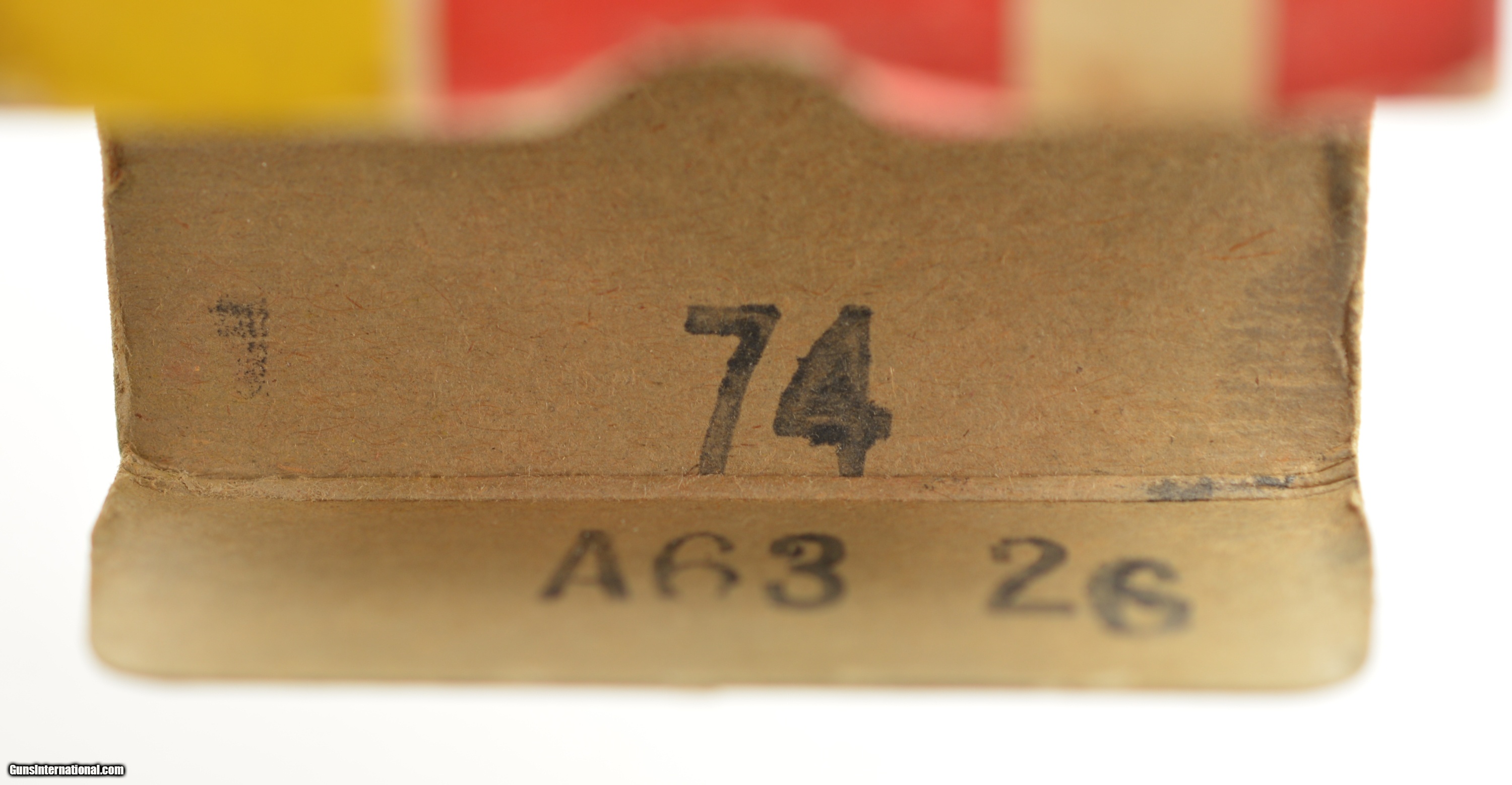 Description: This is a very nice, near excellent box of .22 Savage manufactured by Winchester in the “1946" style. The box is full with twenty original rounds that are native to the box and in excellent condition. The box has excellent, crisp graphics with some light edge and corner wear, with small seam separation starting on the flap edges. A great box with excellent cartridges. SOLD Manufacturer: Winchester Caliber Info: .22 Savage Gauge Info: .22 Savage |