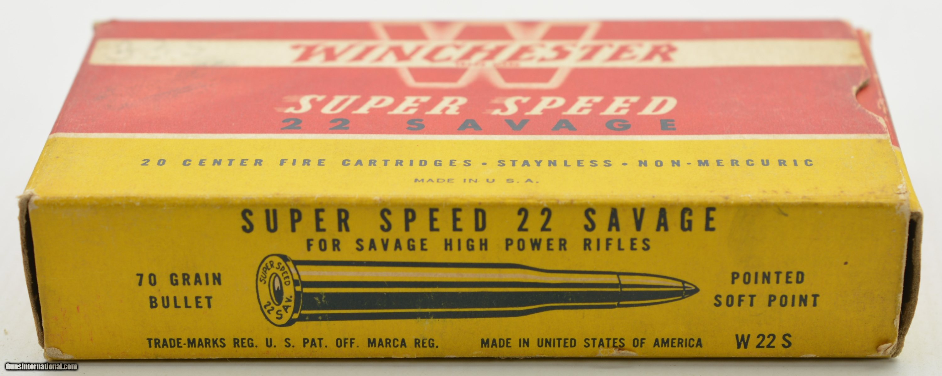 Winchester Super Speed 22 Savage “1946" Box Excellent Ammo