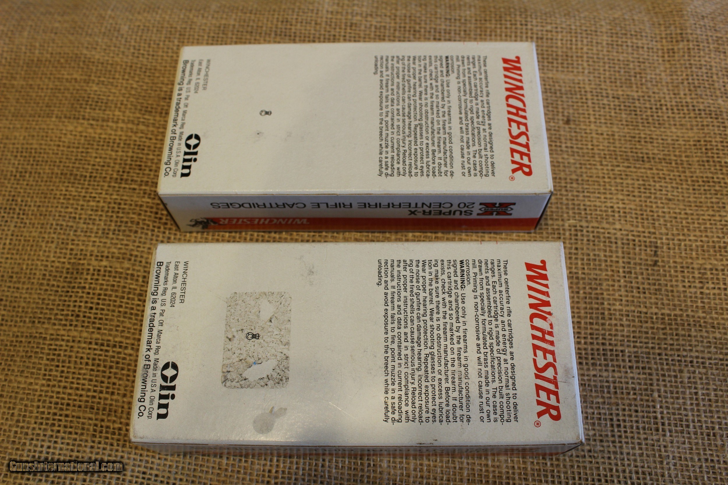 Description: Two boxes (four rounds short) of Winchester Super-X .348 Winchester 200 GR Silvertip. Commemorative ammunition for Browning Model '71. See photos for condition and call RW Outdoors with any questions at 406-842-5271. Shipping included in price, California sales must be shipped to licensed FFL. SOLD Rifle Caliber: .348 Winchester |