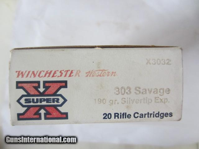 Description: Winchester Super X Silver Tips Caliber 303 Savage, 190 Grain Silver Tip . Price includes Fed Ex Shipping Three Boxes Availble. Need more information please call 716-941-3946 SOLD |