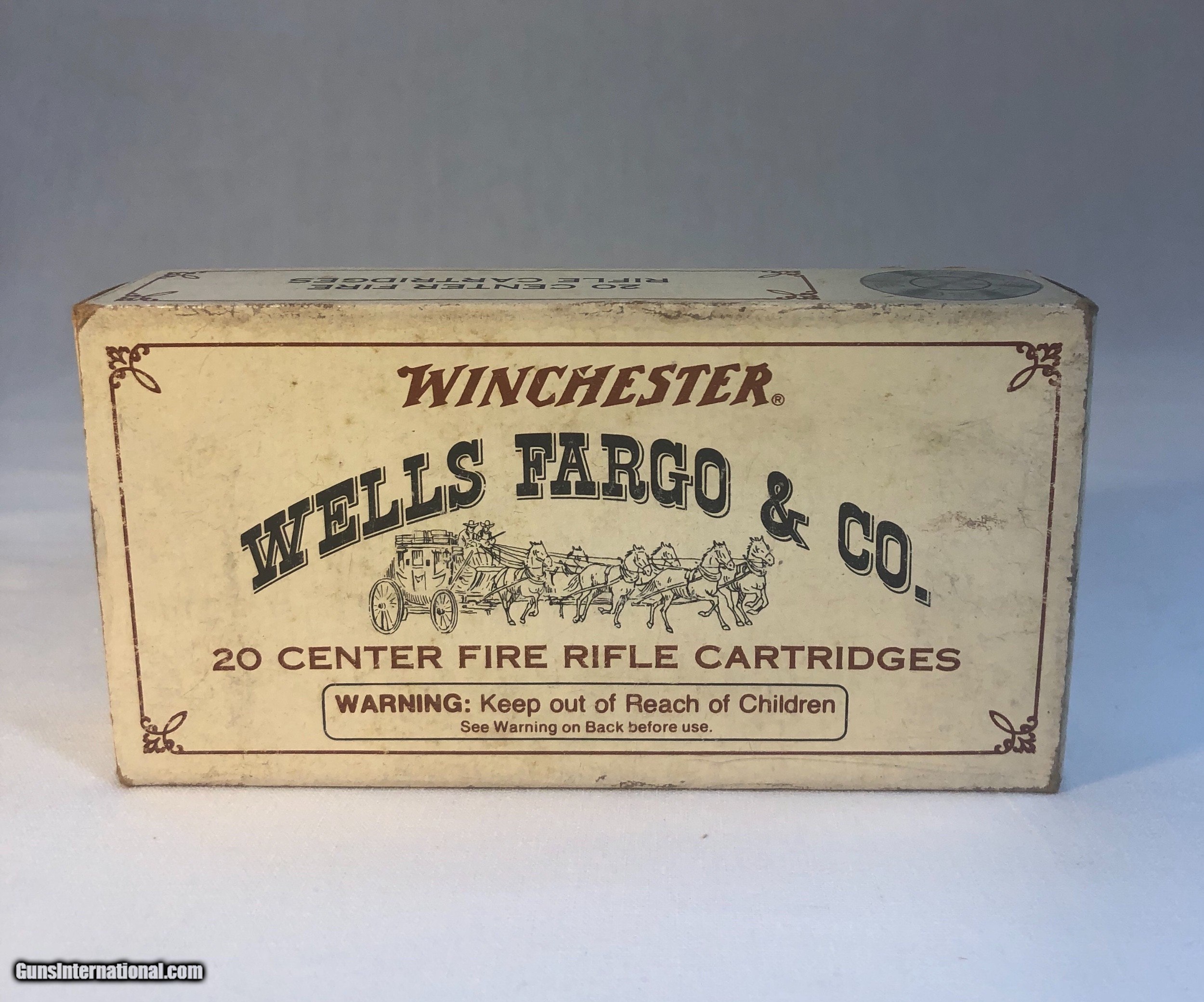 Description: Full Box of Winchester Wells Fargo & Co. Center Fire 30-30 Rifle Cartridges. Box and ammunition in excellent condition for age. All 20 cartridges are stamped, 'WF & Co, 30-30 WIN, W-W'. Only ship to the lower 48 states. This ammunition is sold as a collectors item only and we make no quarantees to its quality or functionality. Please know and abide by your local laws in regards to purchasing ammunition. SOLD |