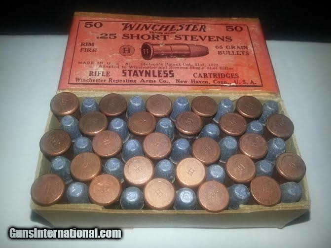 Description: Winchester 25 Short. Excellent Box. Mint Shells. Top Label Faded. $100.00 SOLD |