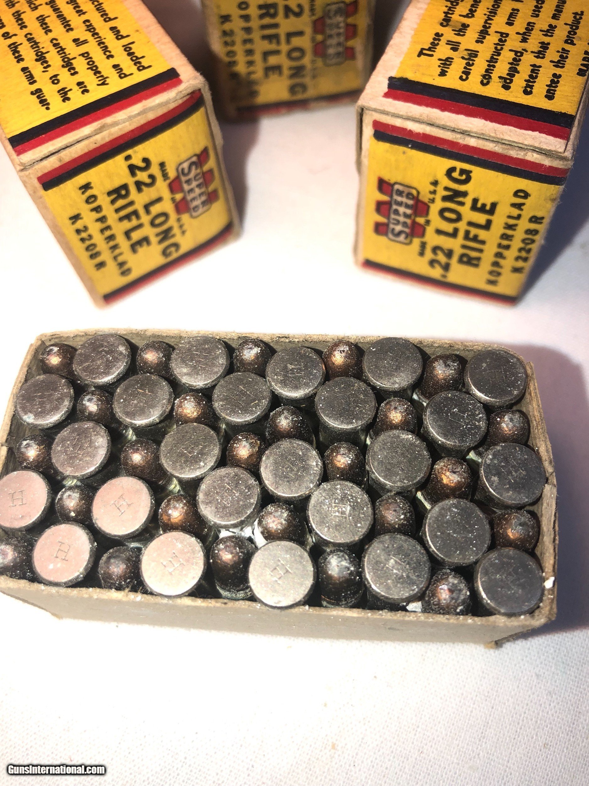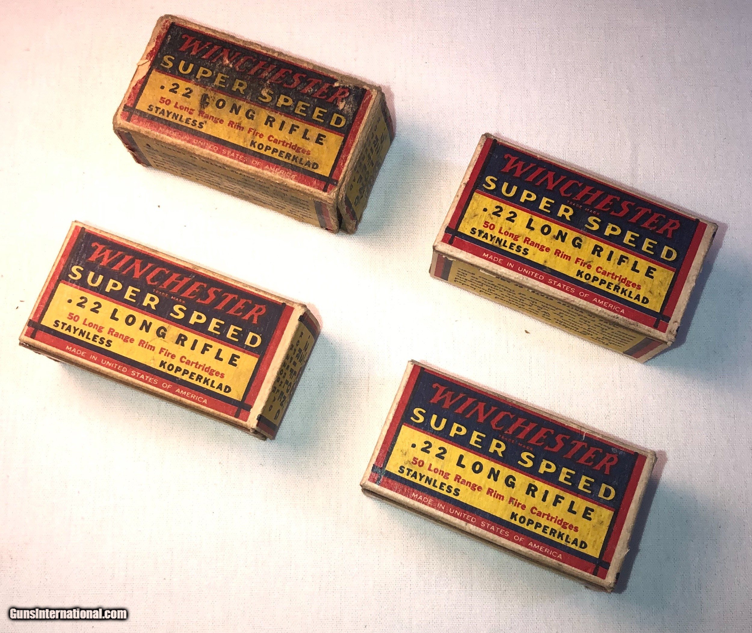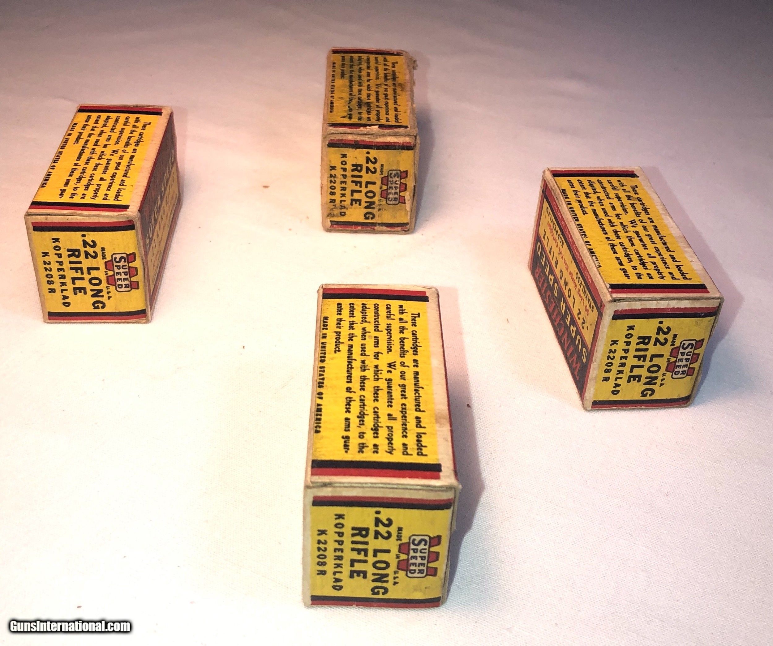 Description: These Winchester ammunition boxes are full and are fine examples of Winchester’s second variety of this type established in 1938. This bundle includes 4 boxes for one money! Ground shipping is included to the lower 48 states. This ammunition is sold as a collectors item only and we make no quarantees to its quality or functionality. Please know and abide by your local laws in regards to purchasing ammunition. Adult signature age 21 or over required at point of receipt. SOLD |